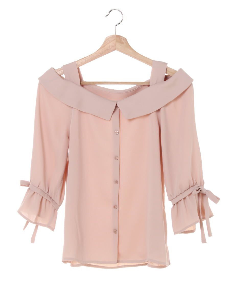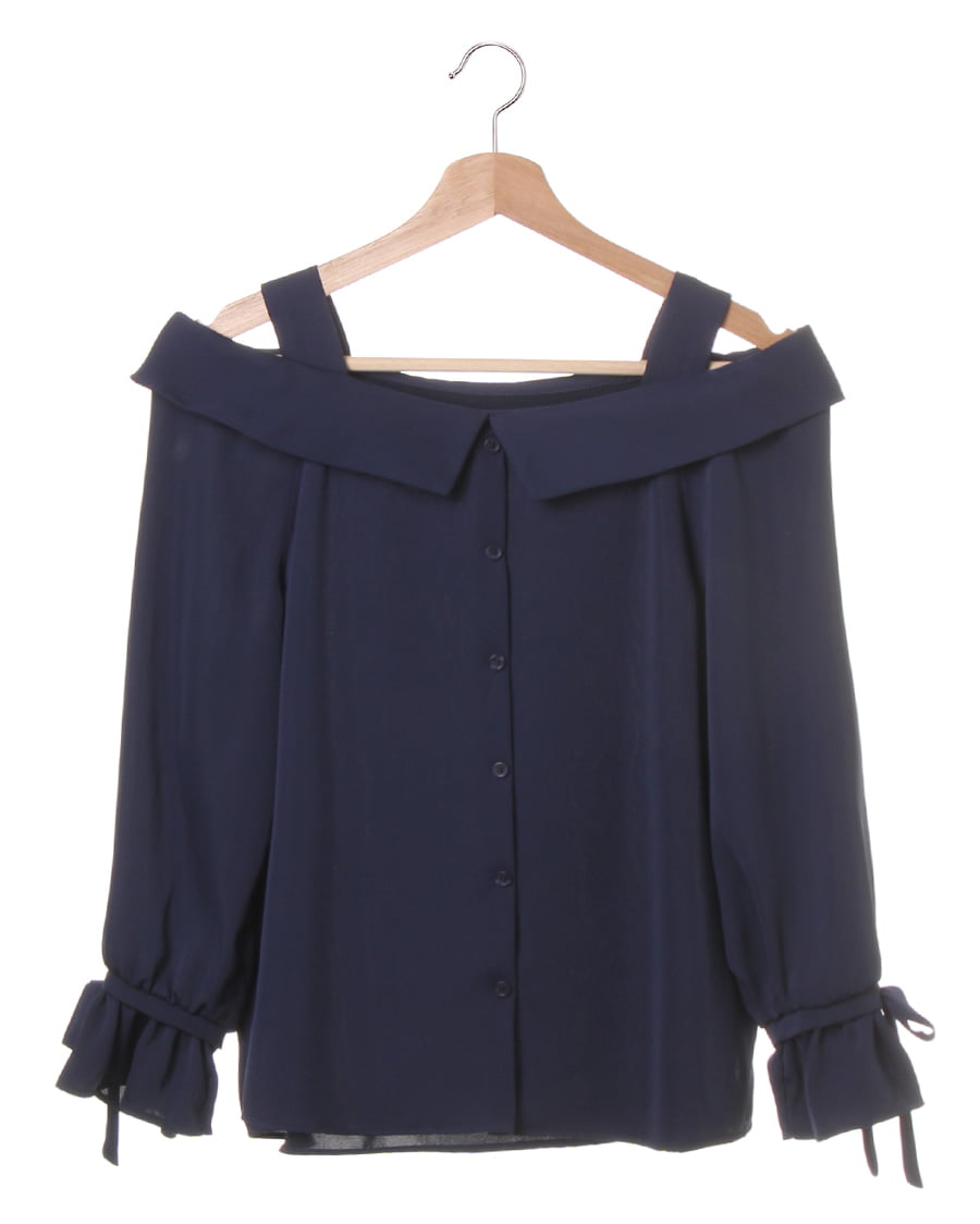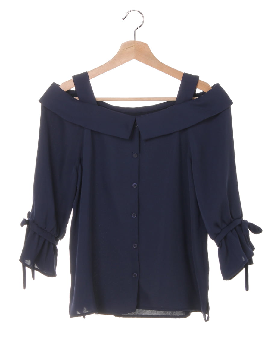 1181-252033 トロミオフショル袖リボン/ブラウス