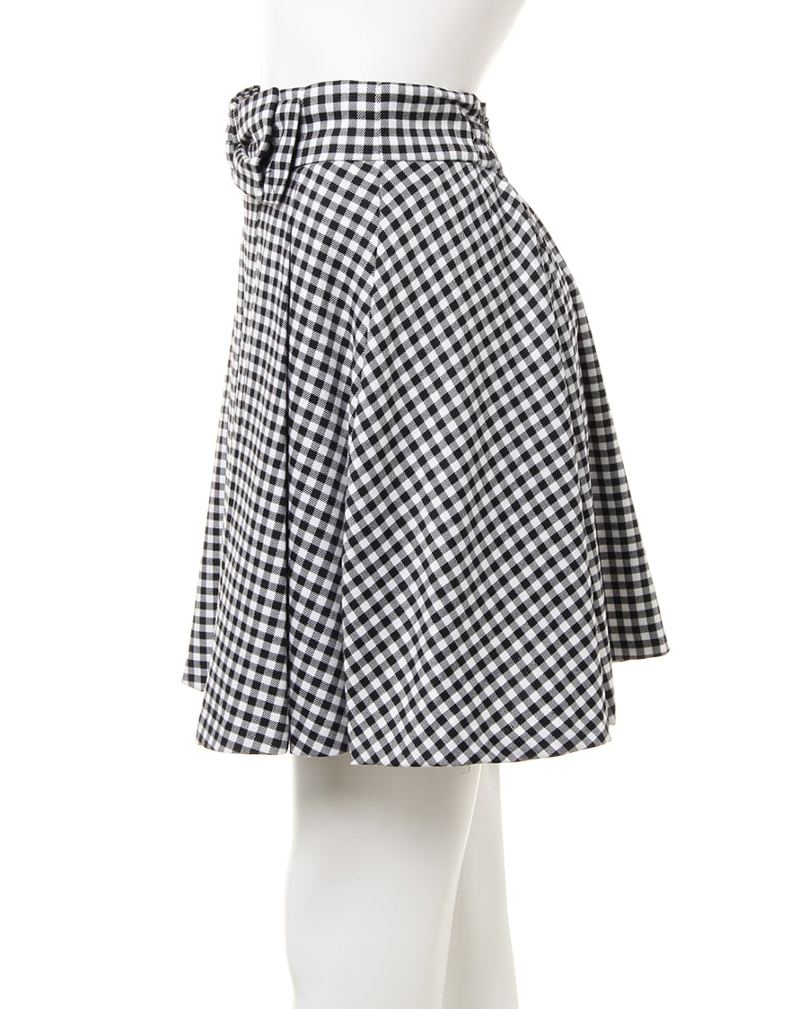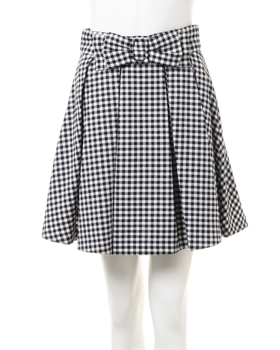 光沢感のある素材が上品な雰囲気のスカパン。幅の広いタックがスポーティ感たっぷりの今年らしい1枚。スカートの中に共布のパンツデザインを採用したことで、アクティブな動きも補える優秀アイテムです。裾に向かって広がるシルエットは足をきれいに見せ、穿くだけでスタイルアップ効果も期待。大きなリボンがガーリーな印象でコーデのアクセントになります。