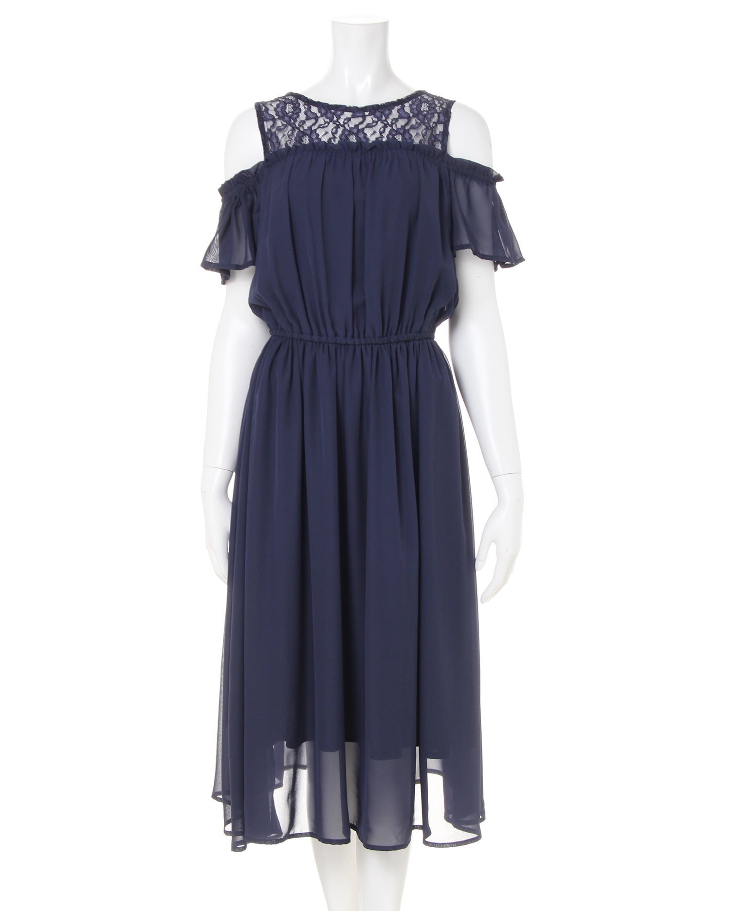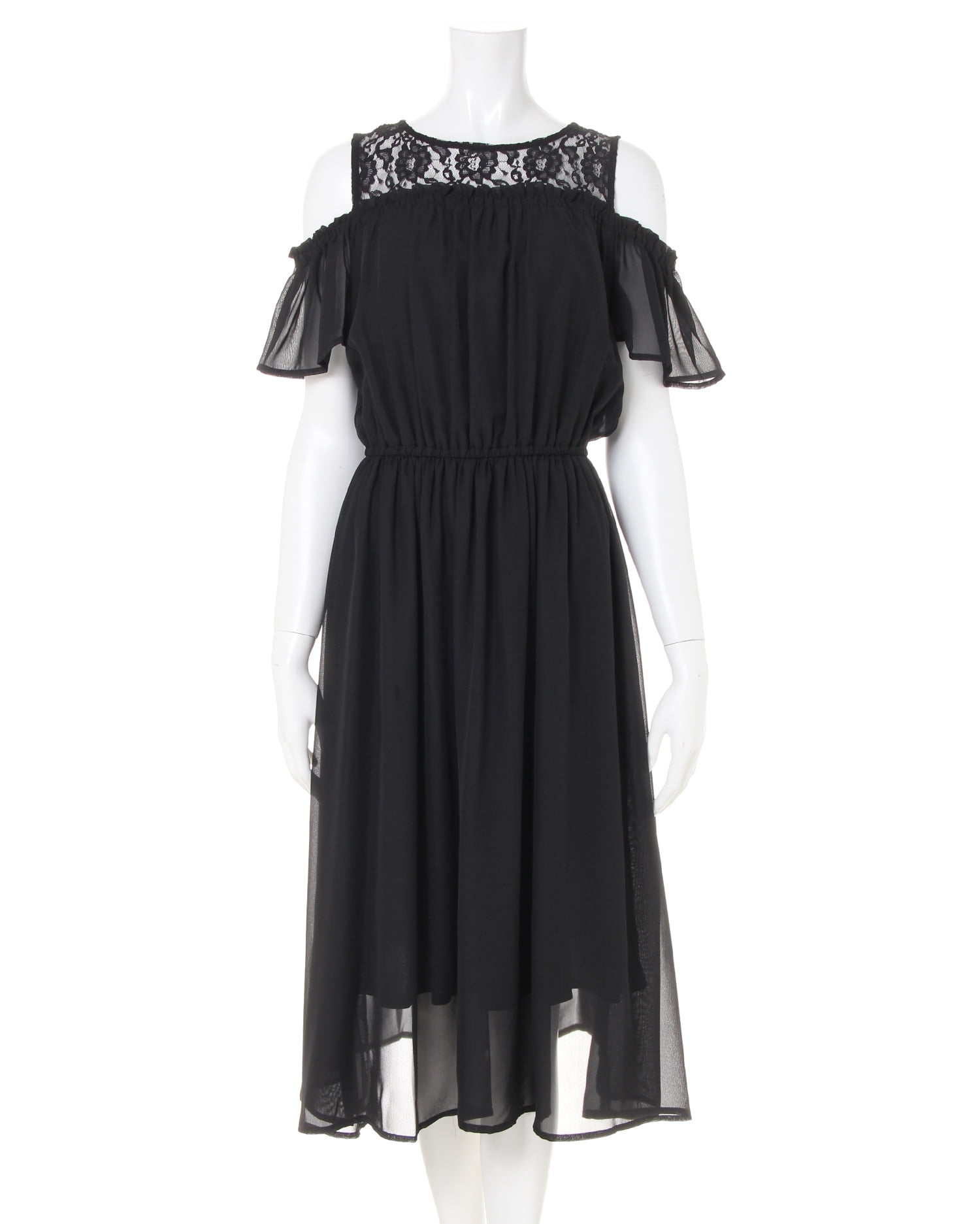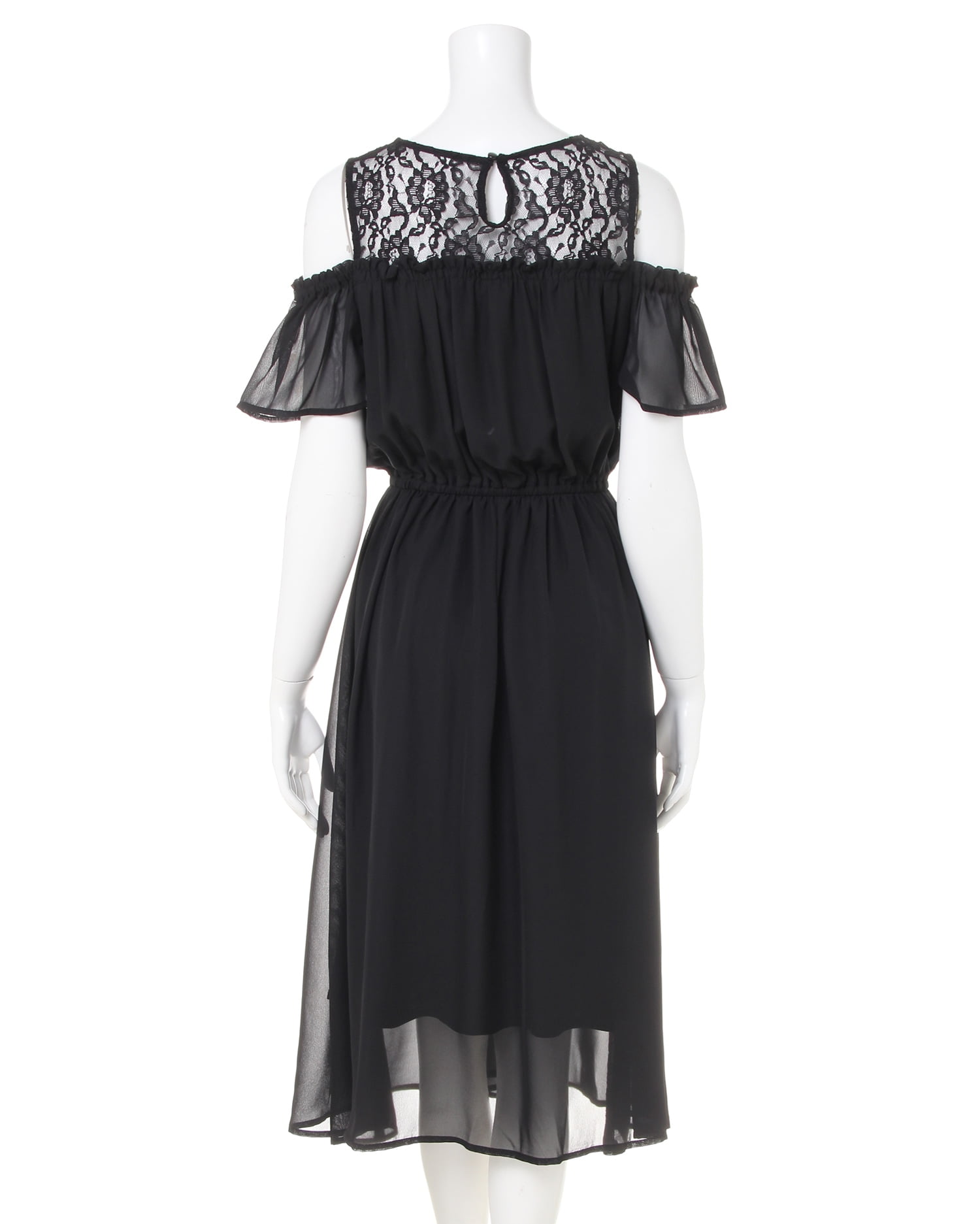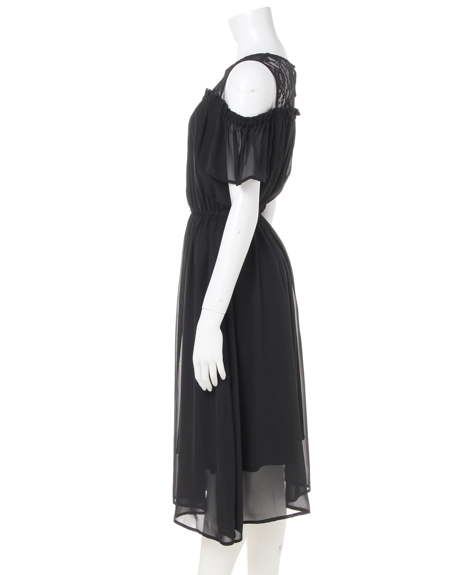 1枚着るだけでクラシカルレディなスタイルが完成するワンピースです。ヨーク部分の繊細なレース使い、オープンショルダーのフリル袖がエレガント。エアリー感のある生地との組み合わせで大人っぽく着こなせます。ウエスト部分はゴムになっているのでブラウジングも可能。透け感のある生地も裏地付きで安心して着られます。