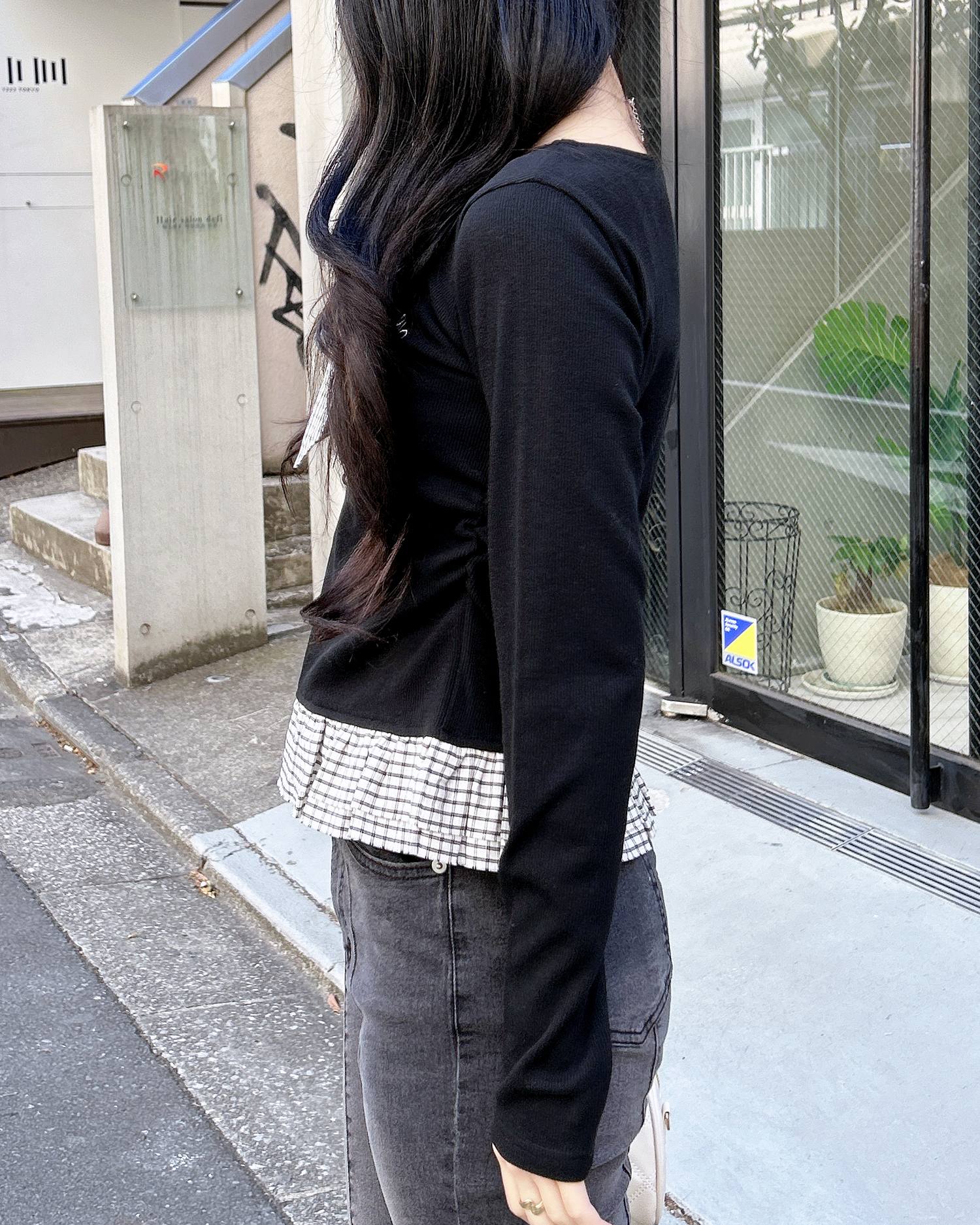 • INGNI(イング) チェックリボンレイヤードトップス クロ
