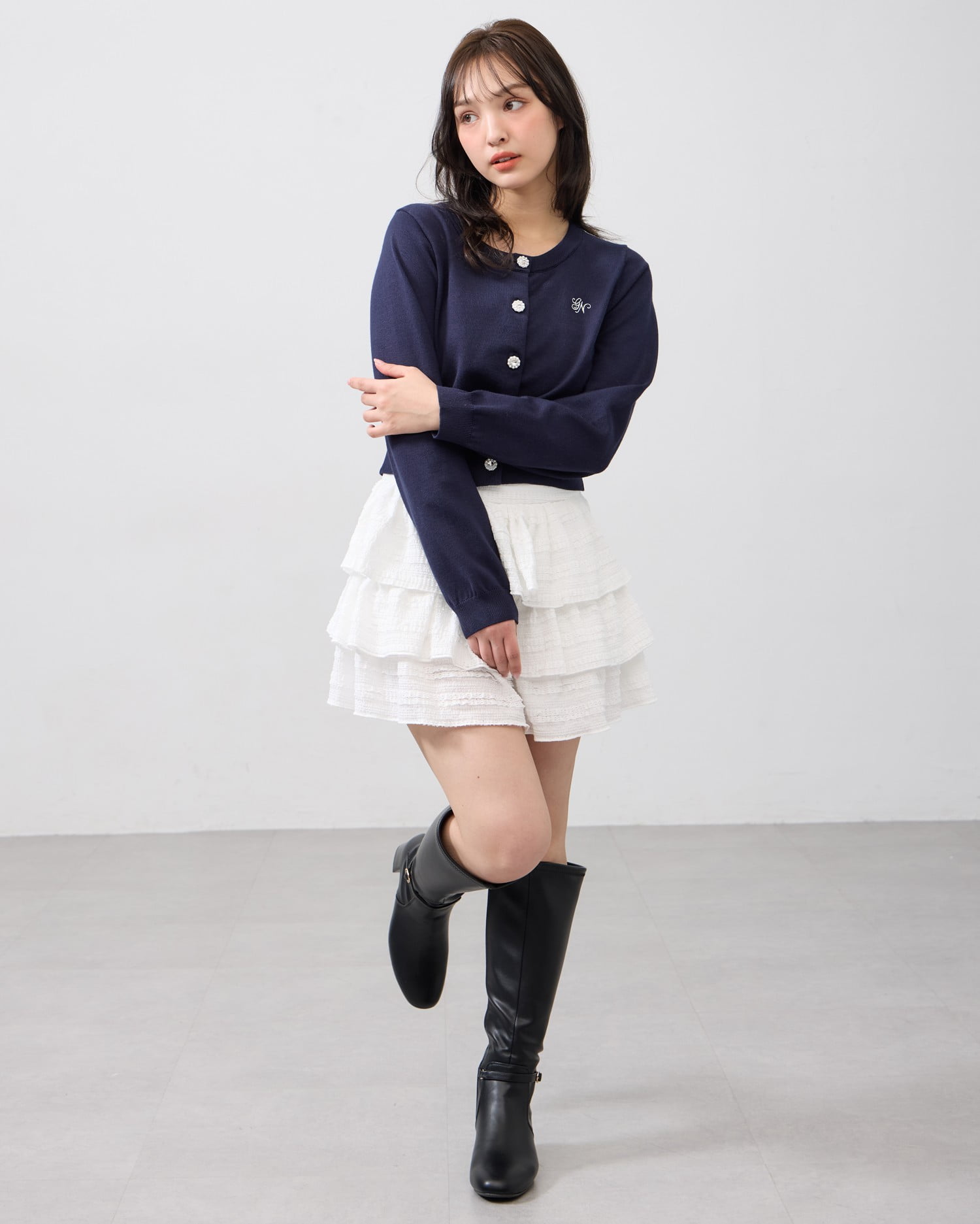 【ビジューボタンが華やかなニットカーディガン】