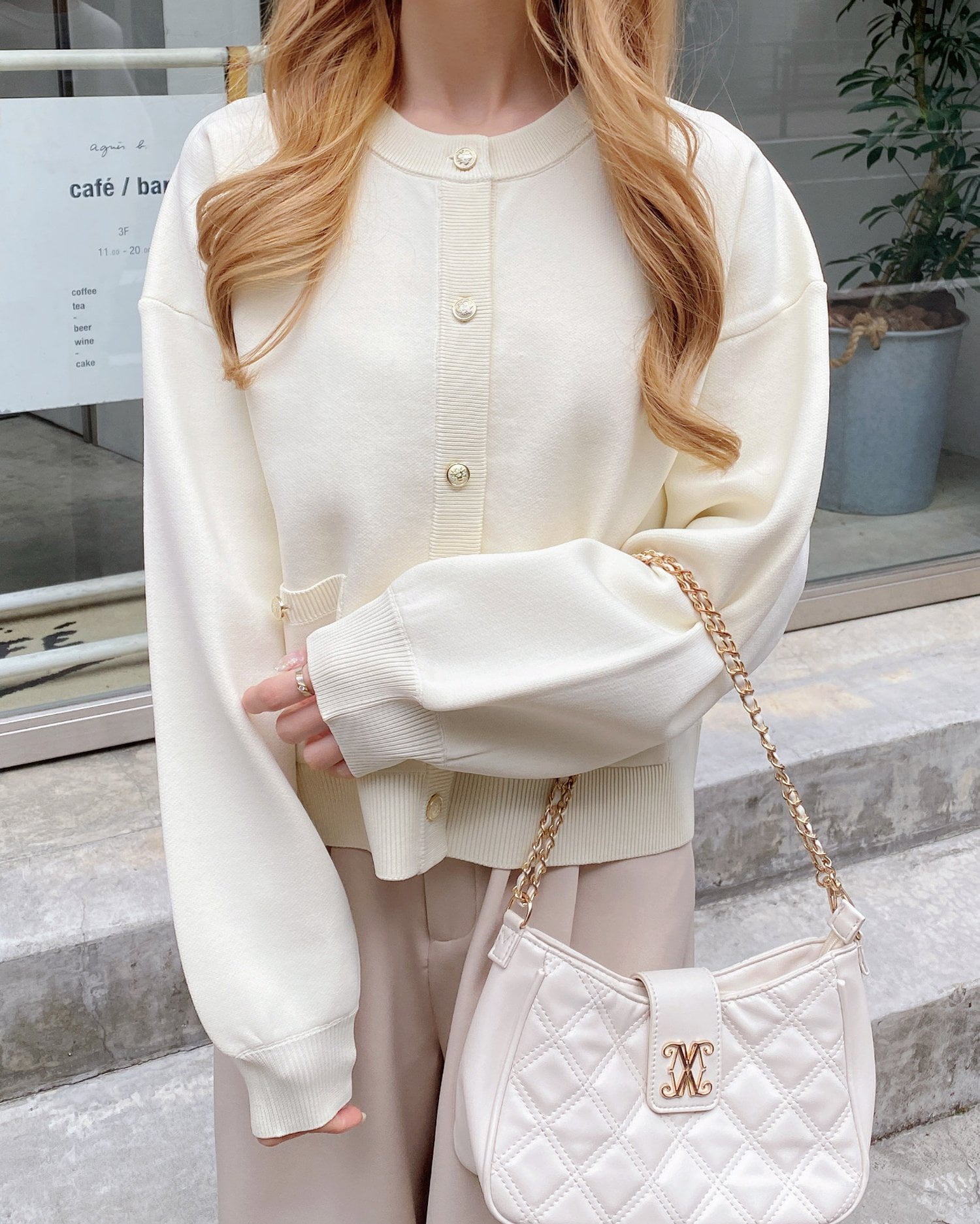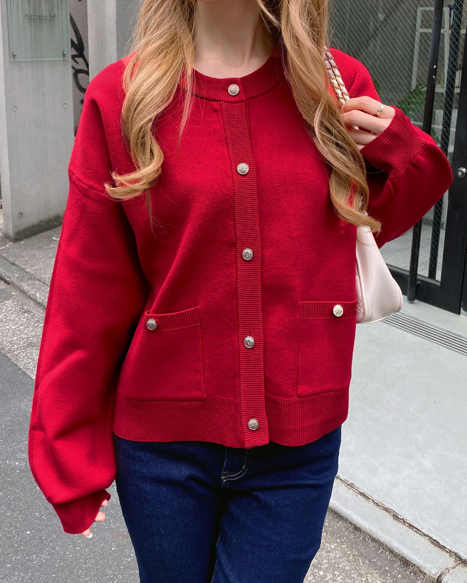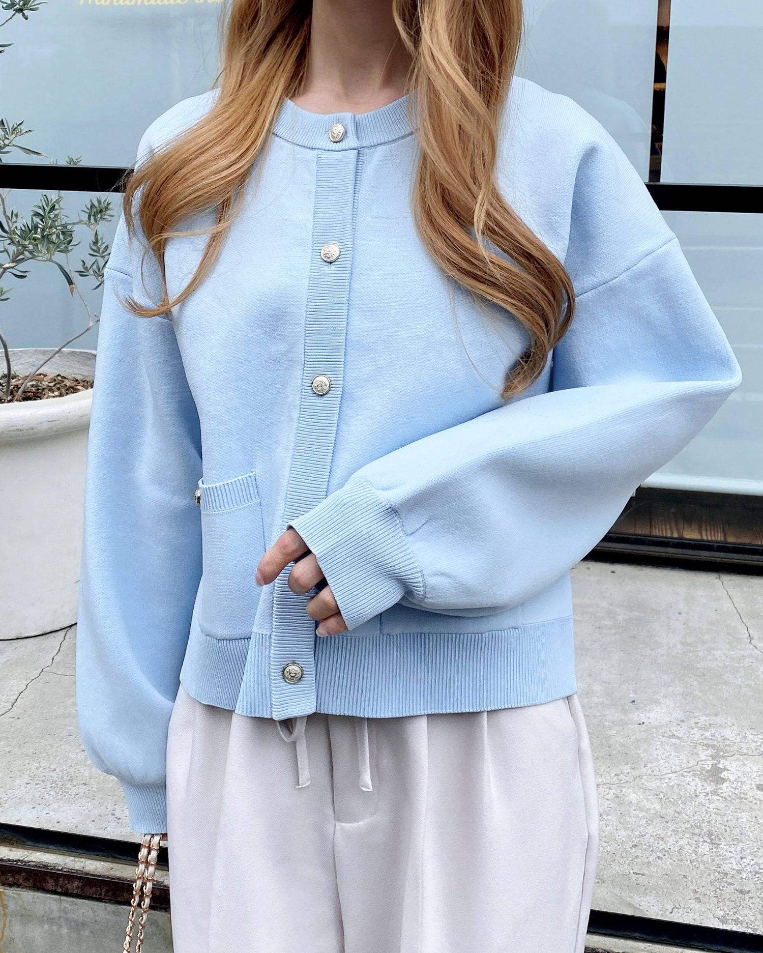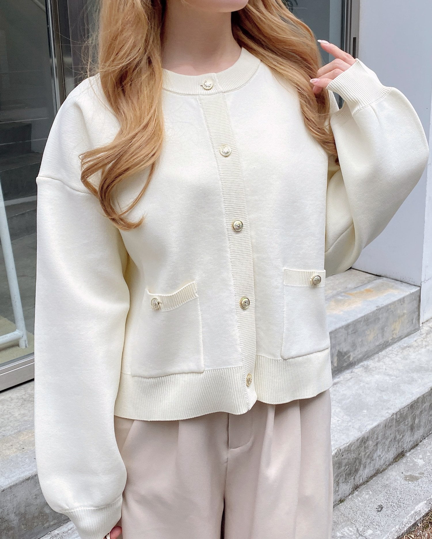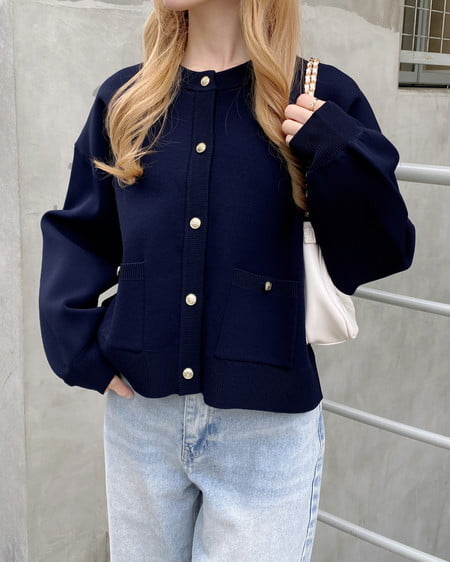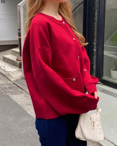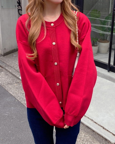 ハリ感のあるスポンディッシュニットで仕立てたカーディガン。