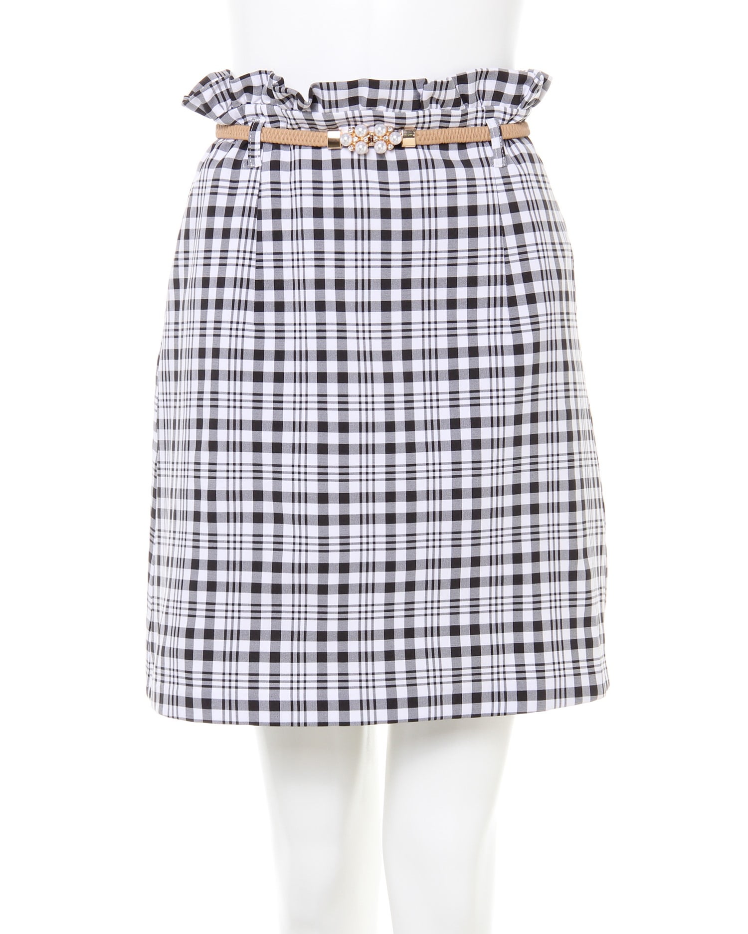 • allamanda(アラマンダ) 装飾ベルト付き台形スカート クロ/チェック