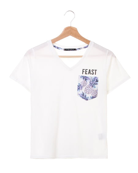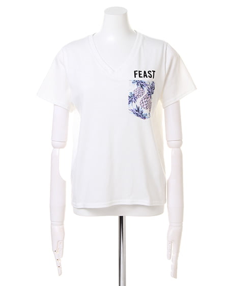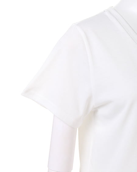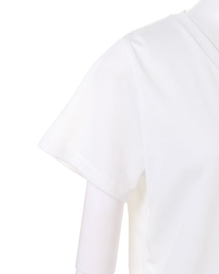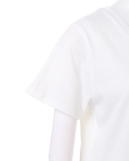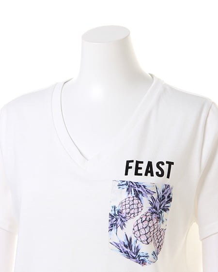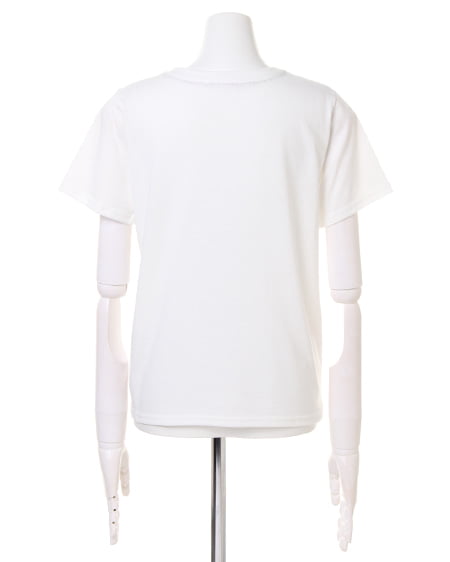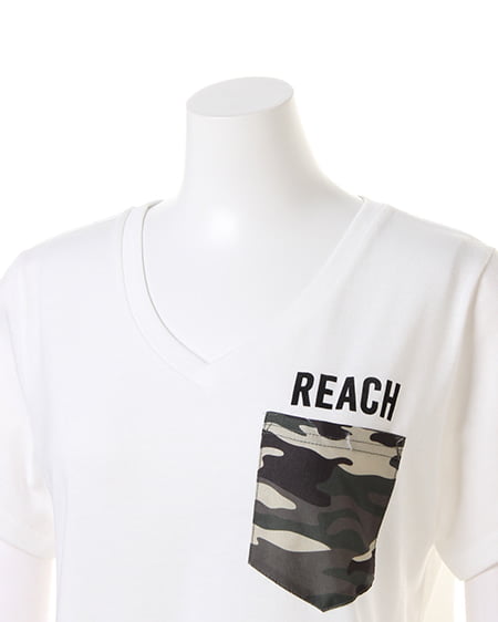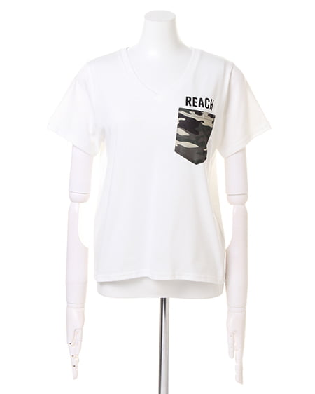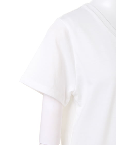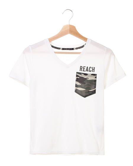 コンパクトなシルエットのVネックのホワイトTシャツは、ポケットのデザインが◎。ロゴと連動したポケットの柄が技ありの1枚です。すっきりとしたVネックで顔周りを明るく。スカートにもパンツにも合わせやすい丈感で、デイリースタイルにぴったり。肌馴染みのいい柔らかな素材で仕立てているので、リラックスした着心地を楽しめます。ジャケットやパーカーのインナーとしてもロングシーズン重宝。