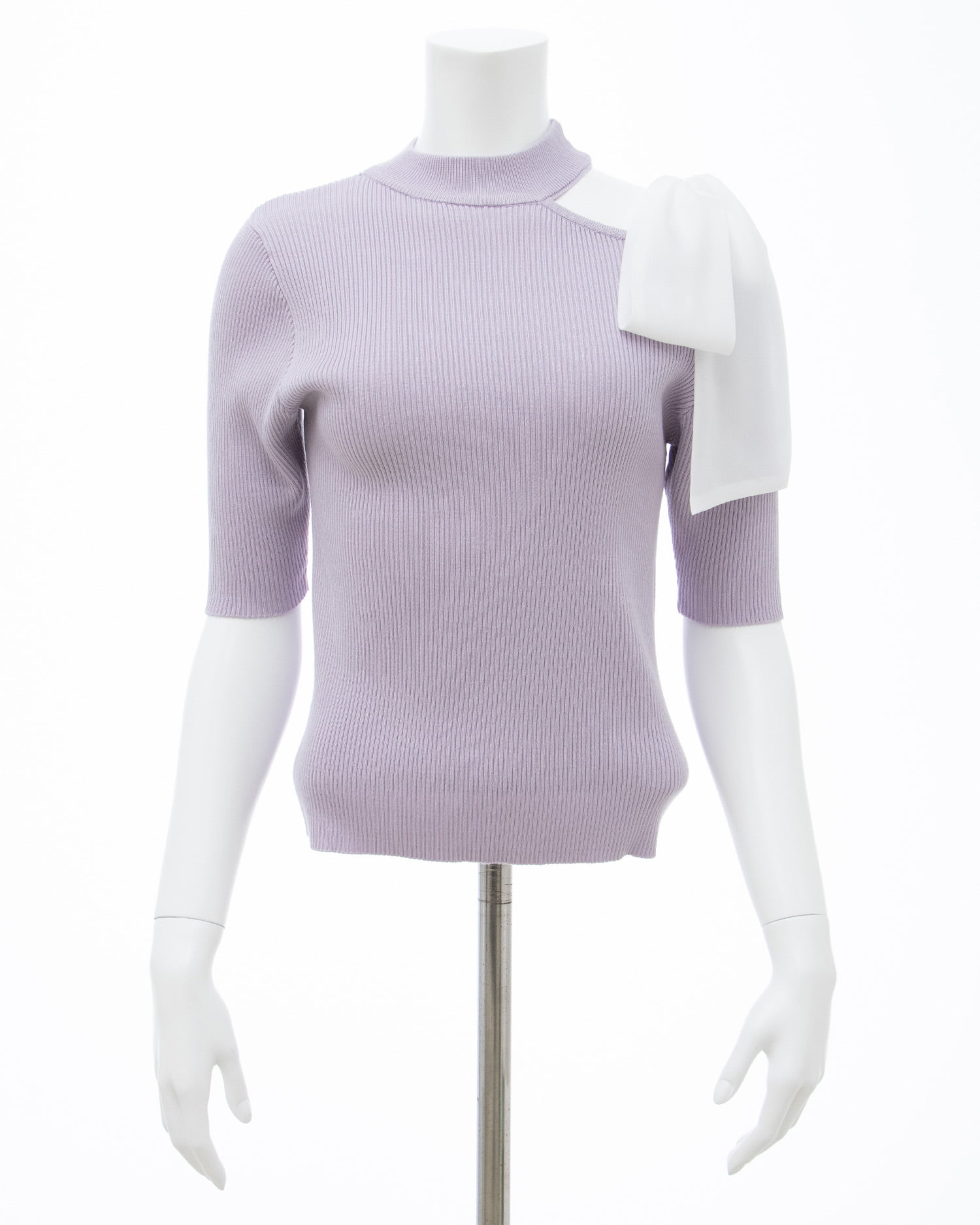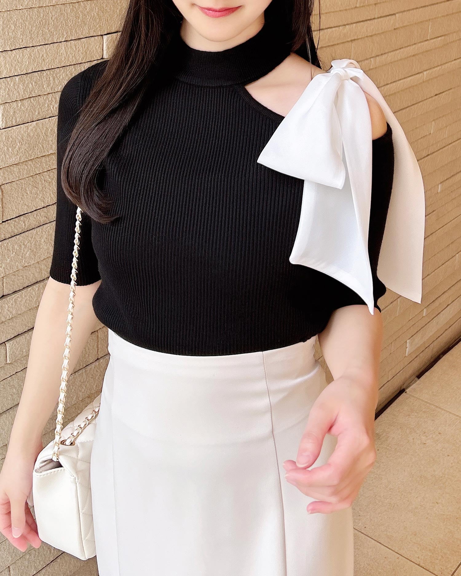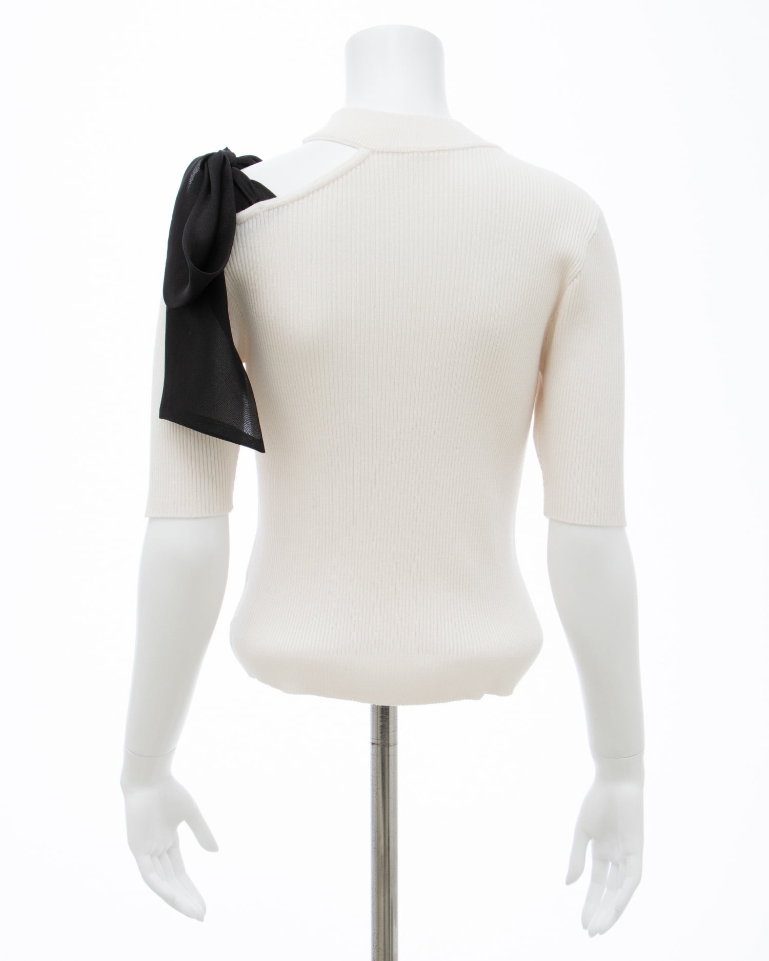 トレンドのワンショルダーデザインが個性的なニットトップス。