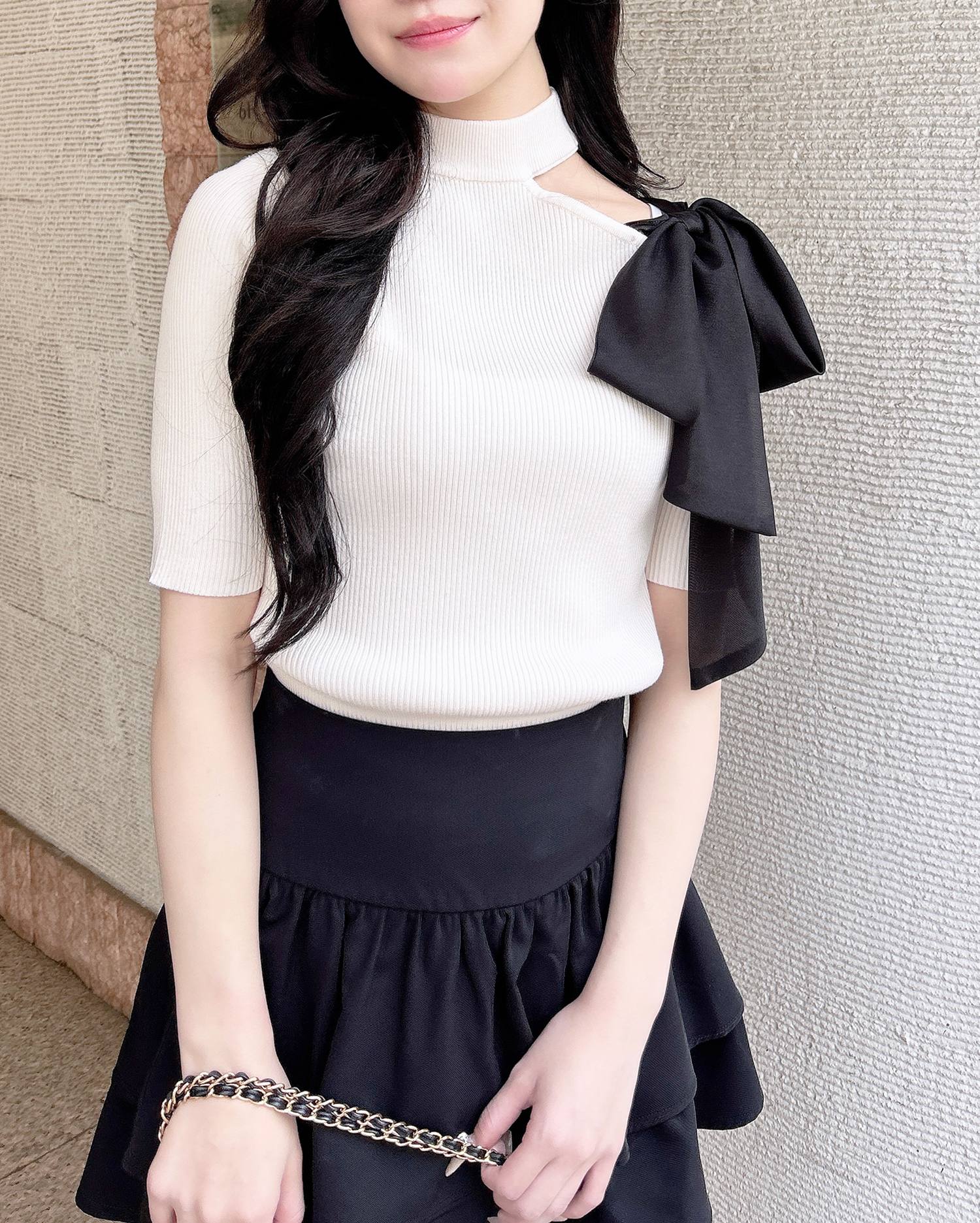 リボンは取り外しが可能で2Wayでの着用も可能な万能アイテム。