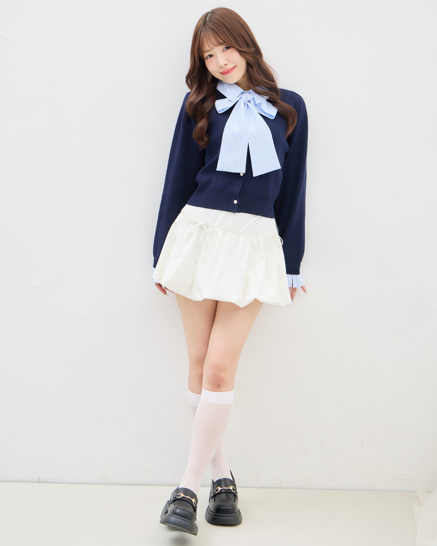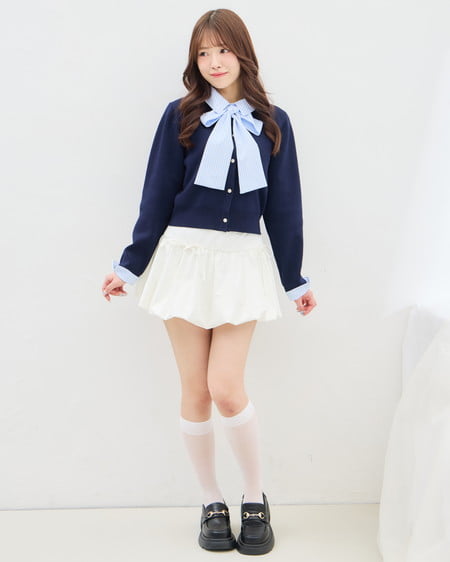 バルーンスカート×ハイソックスでトレンドを押さえたフレンチガーリーなコーデがおすすめ♡