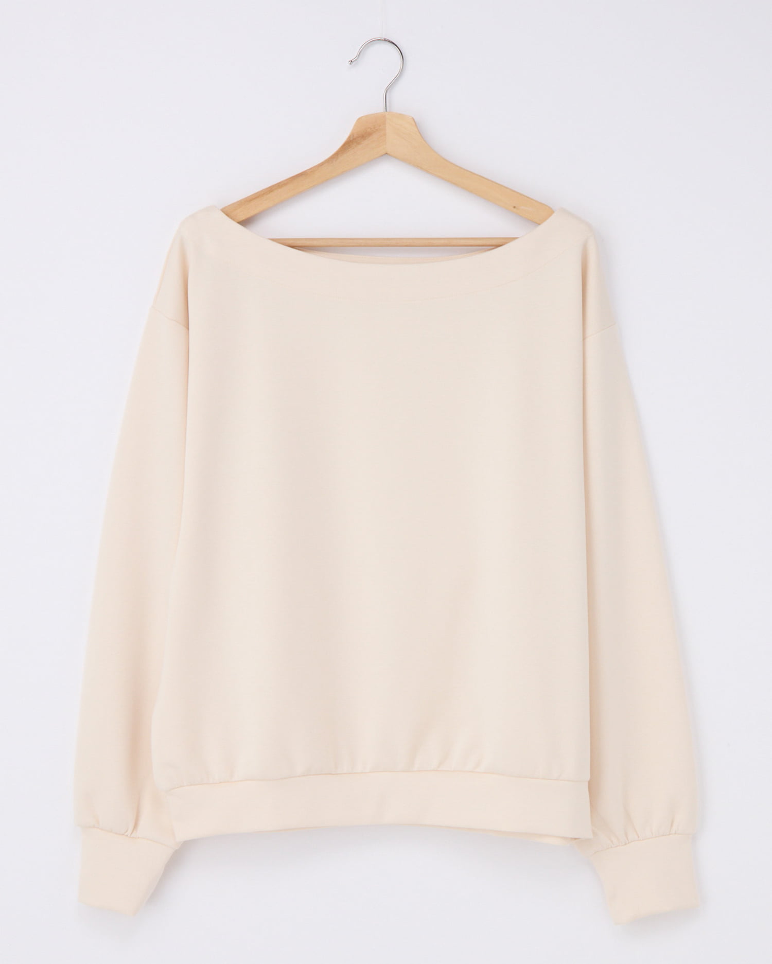 前後を逆にしたり、ワンショルダーやオフショルダーとしても様々な着こなしが可能。