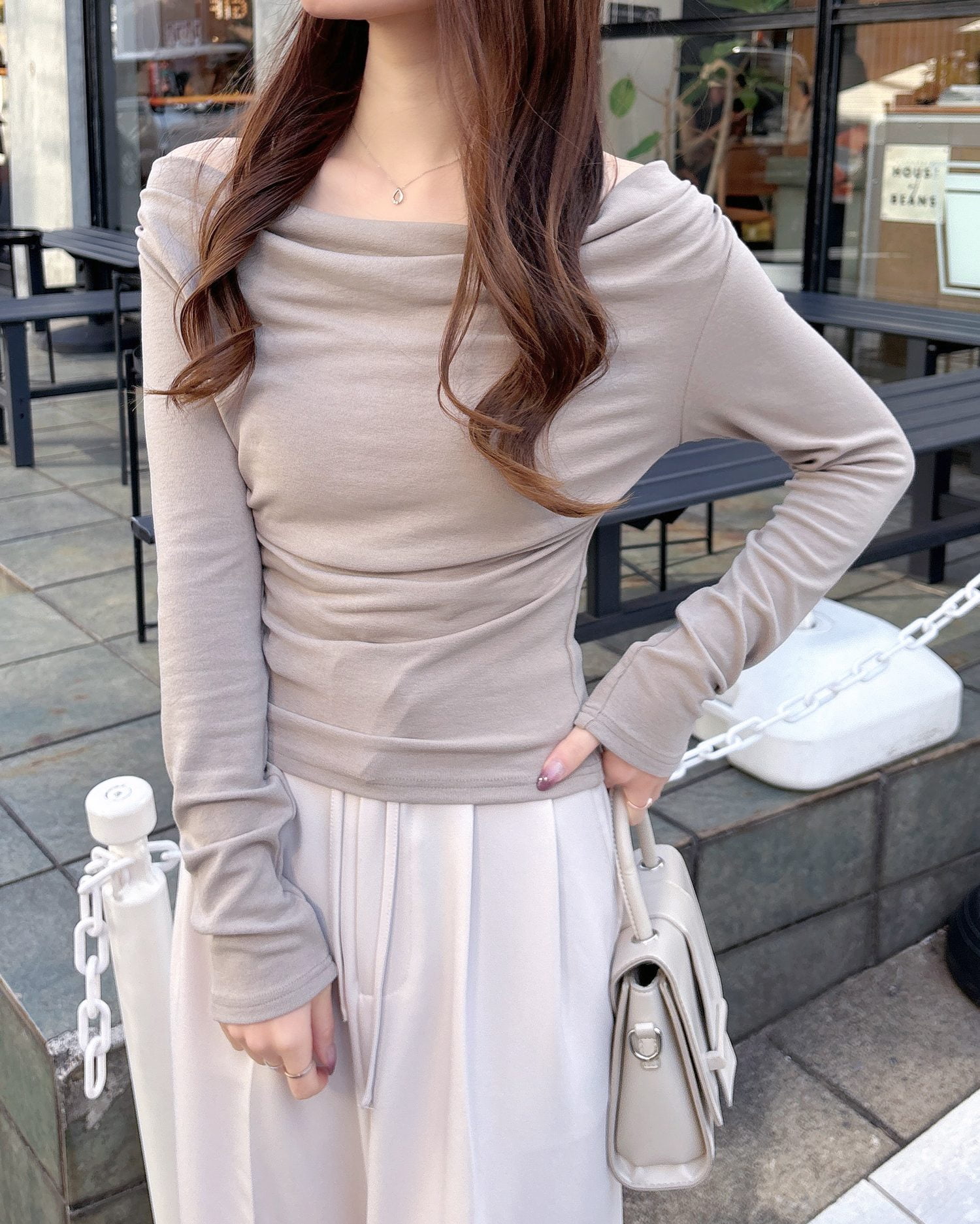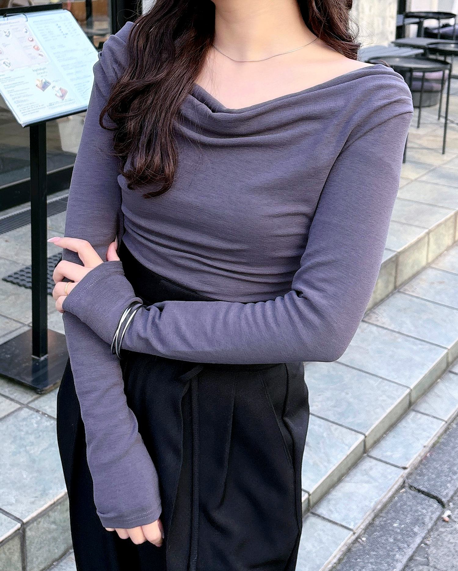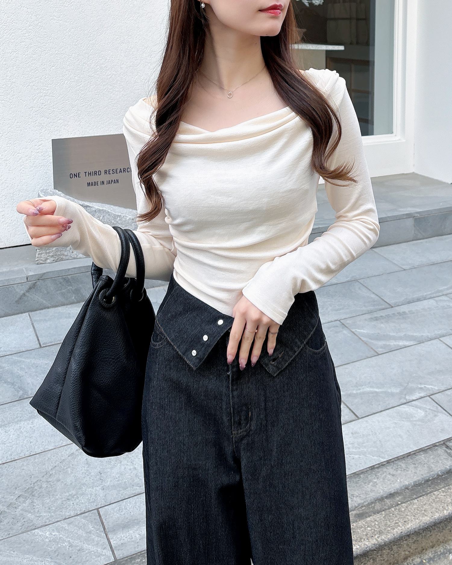 【大人の余裕を纏う、軽やかなギャザードレープトップス】