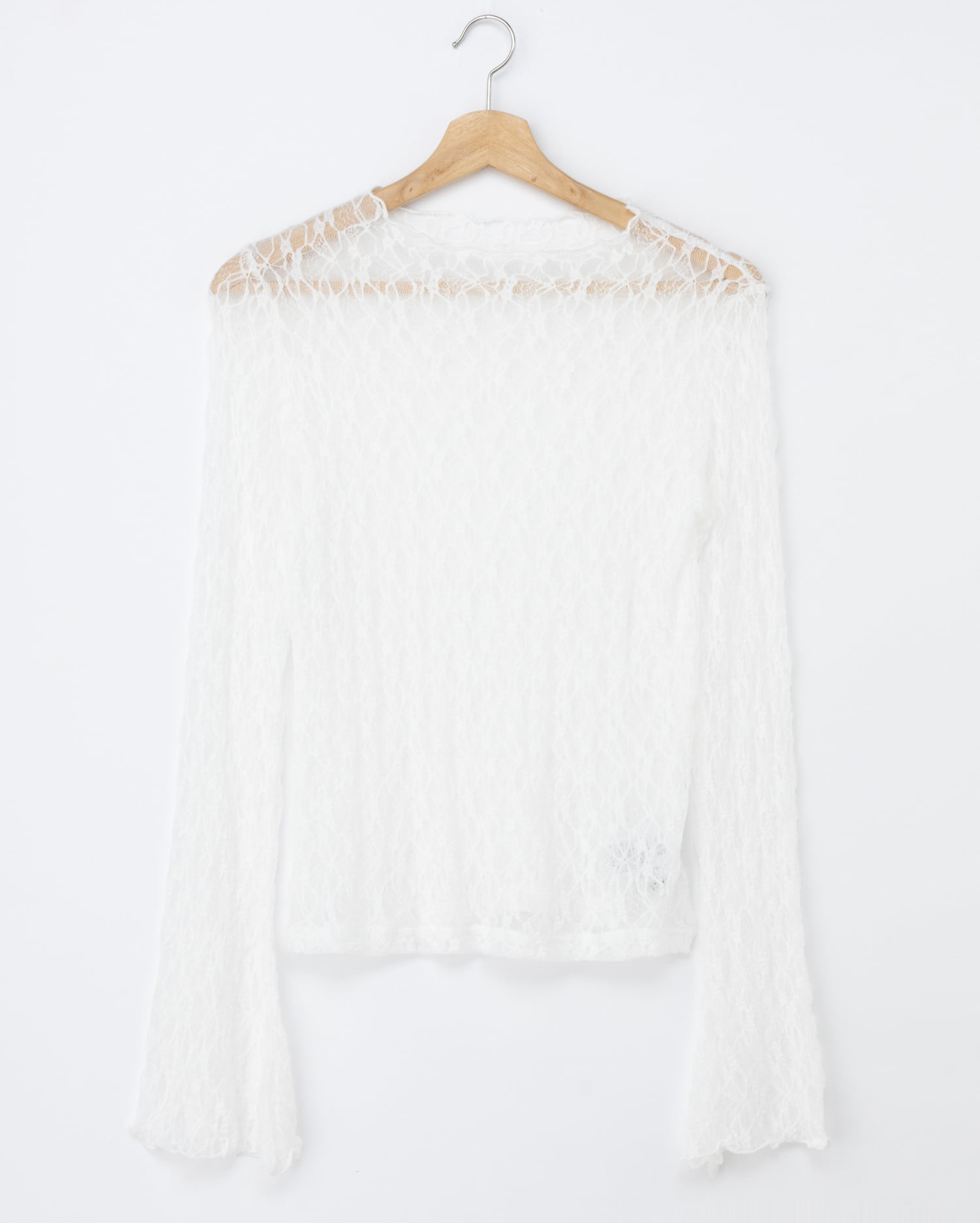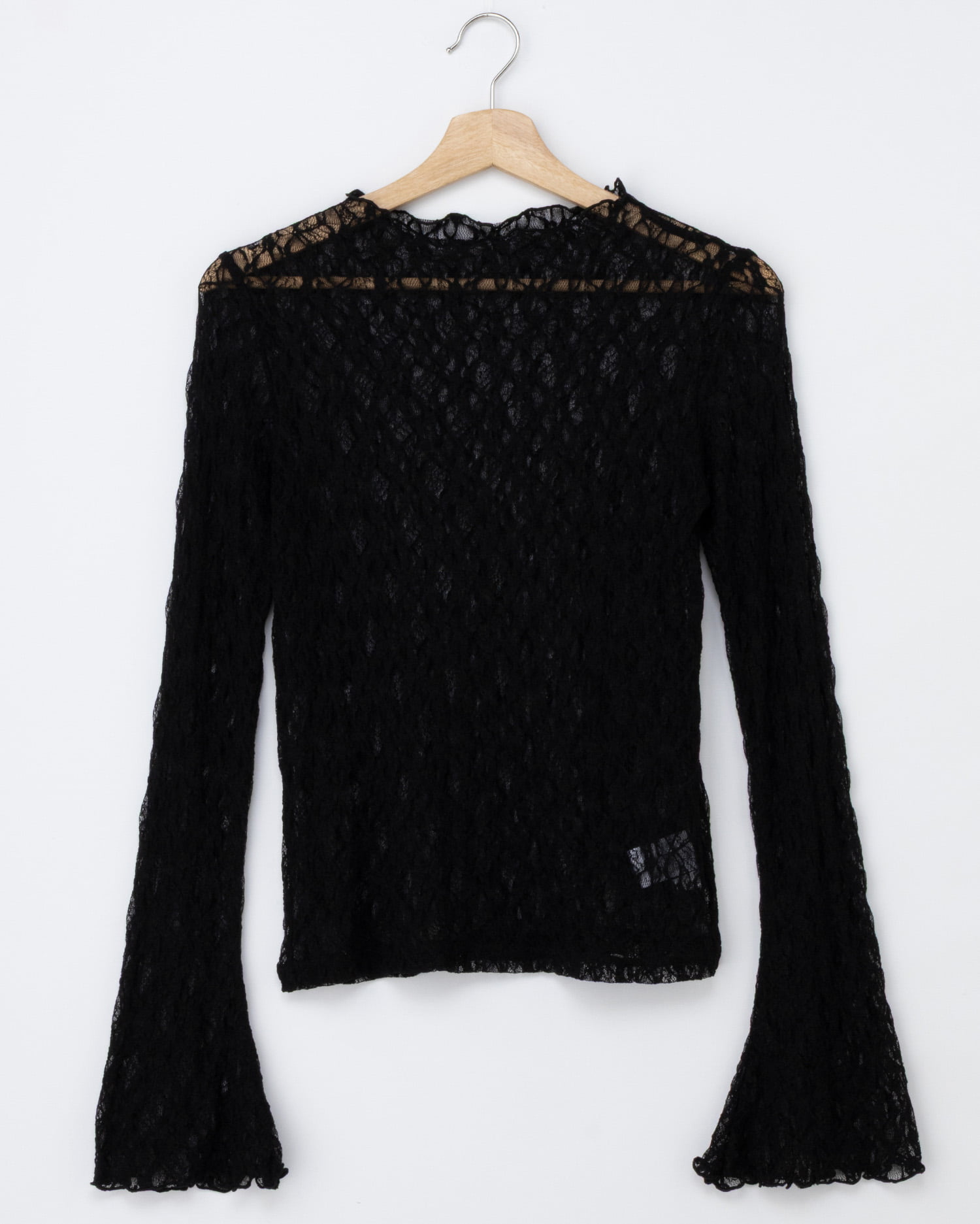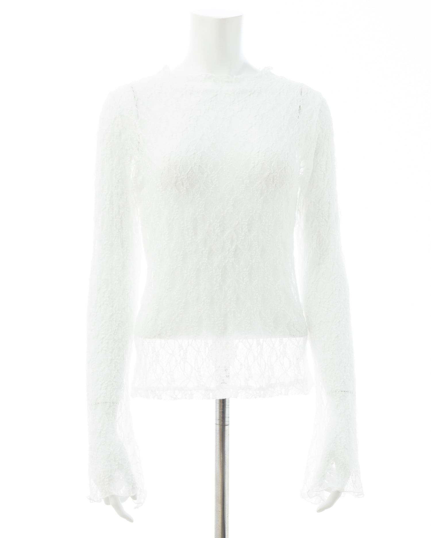 ほんのり透ける素肌とのコントラストを楽しめる総レーストップス。