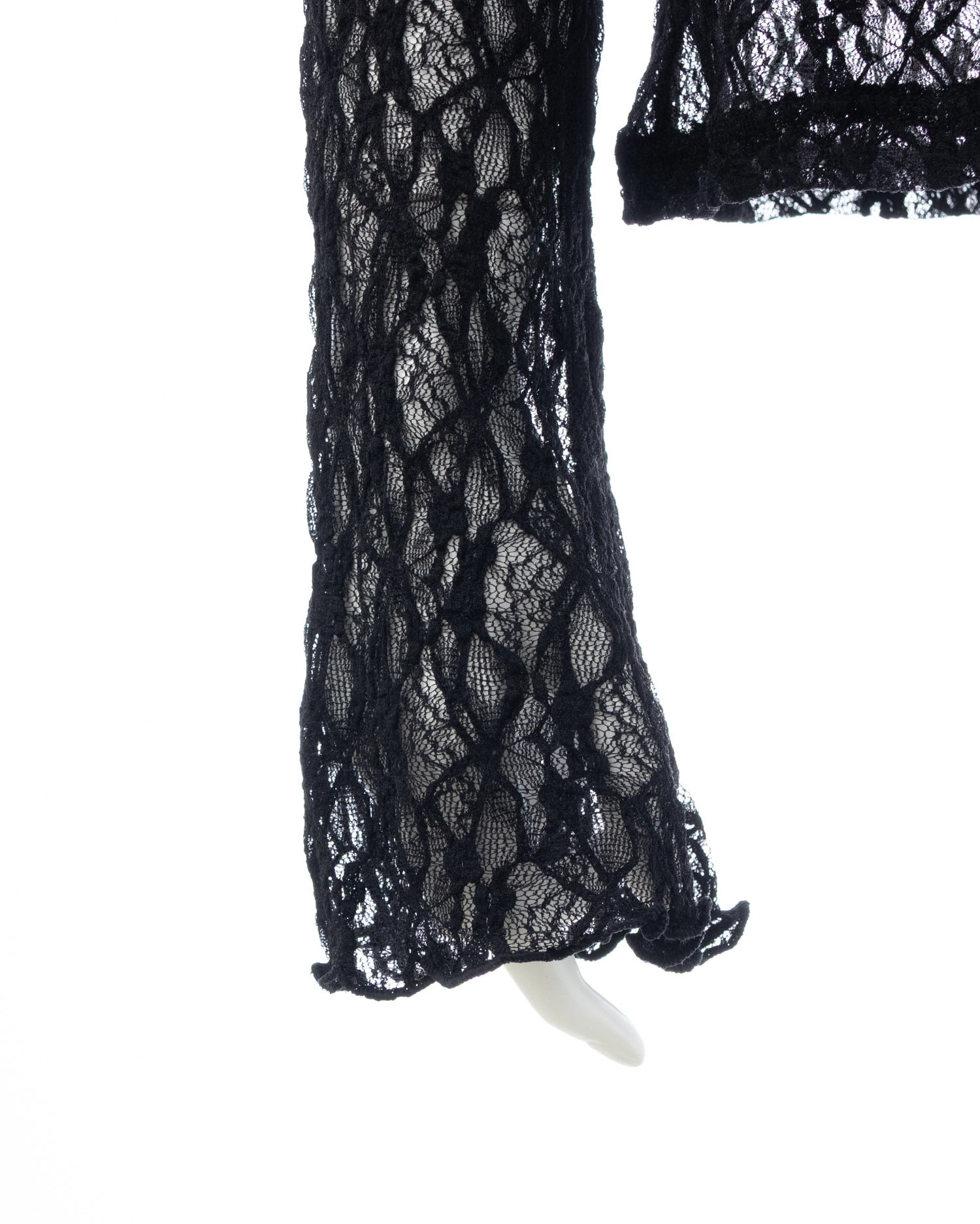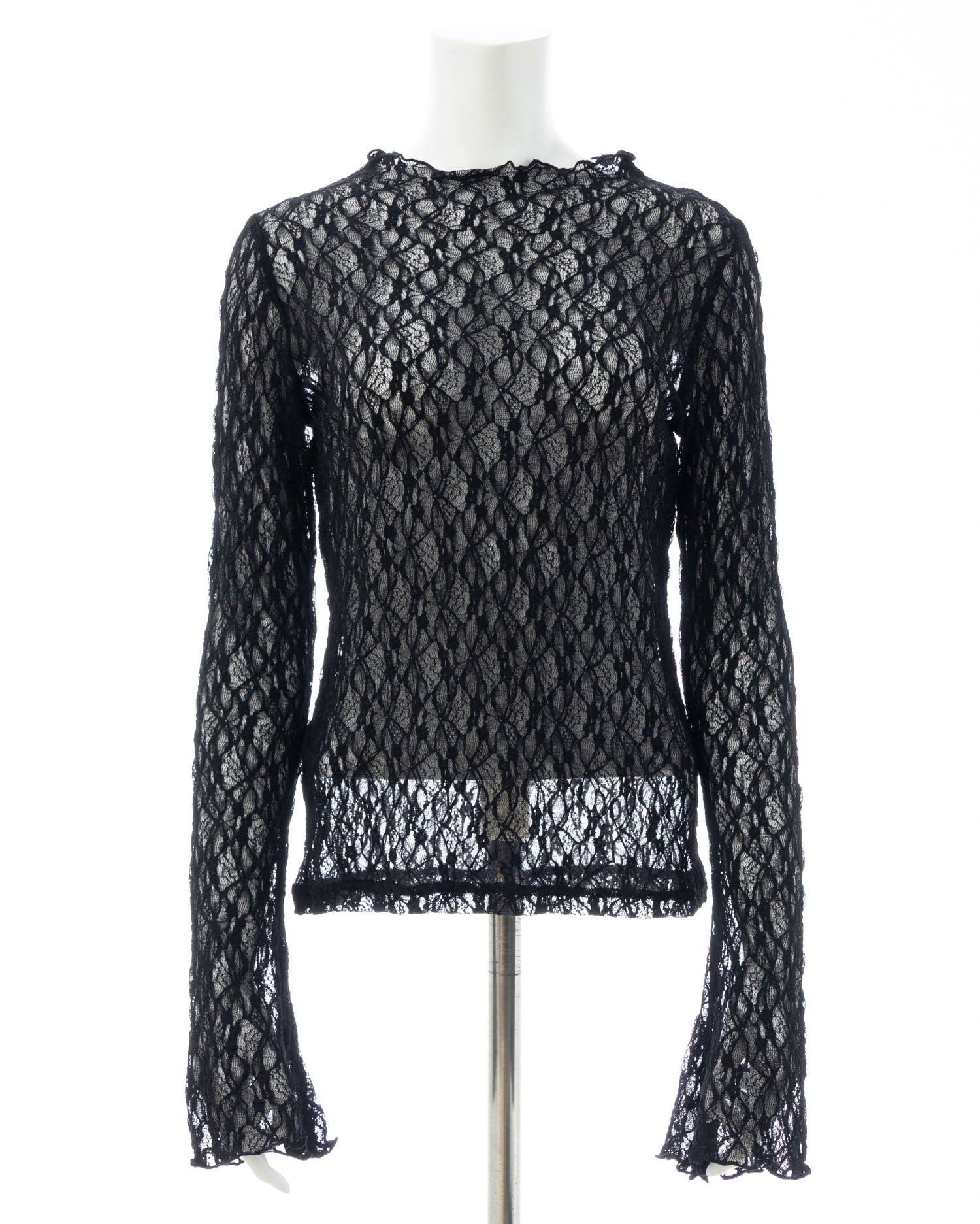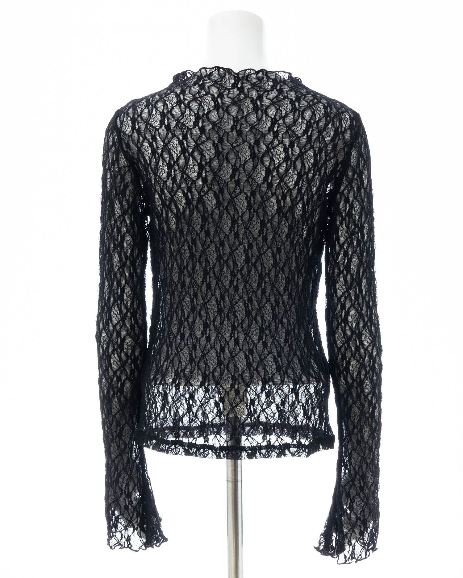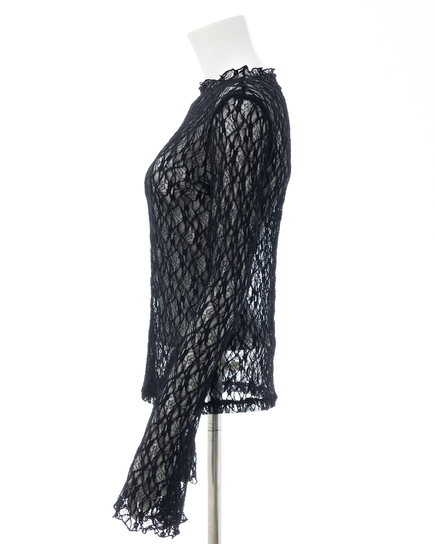 ほんのり透ける素肌とのコントラストを楽しめる総レーストップス。