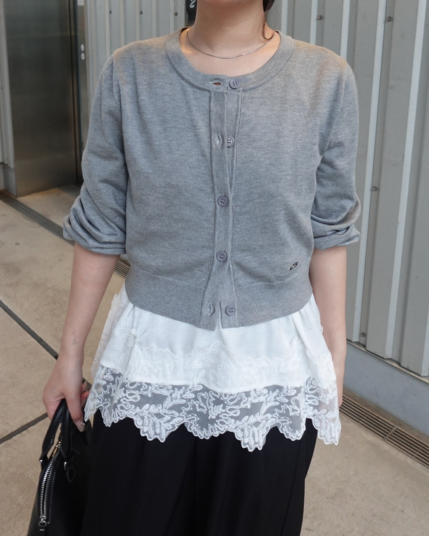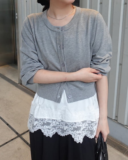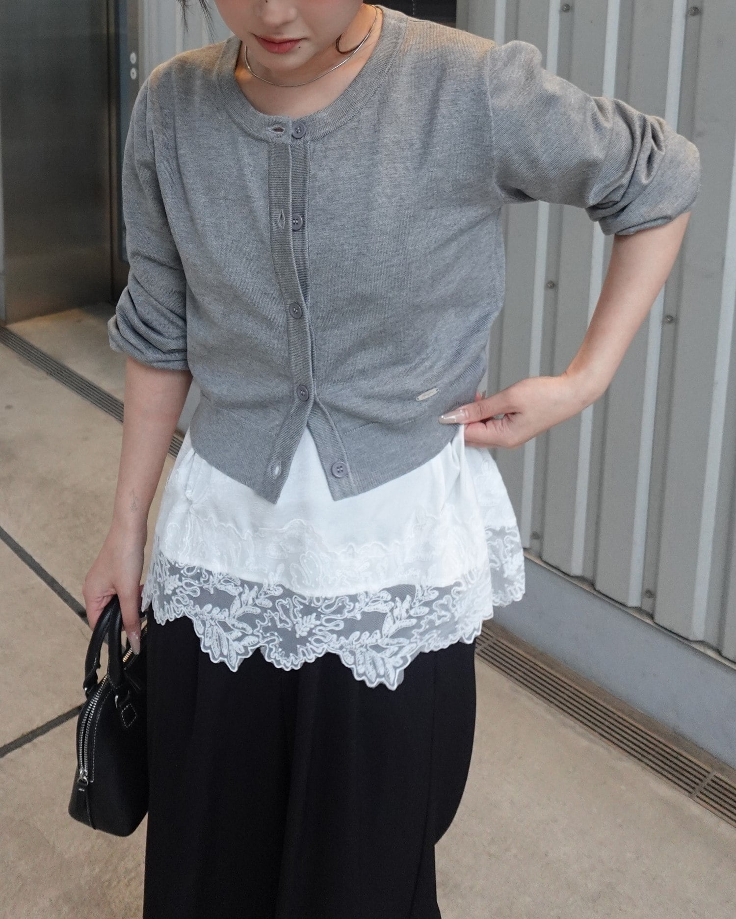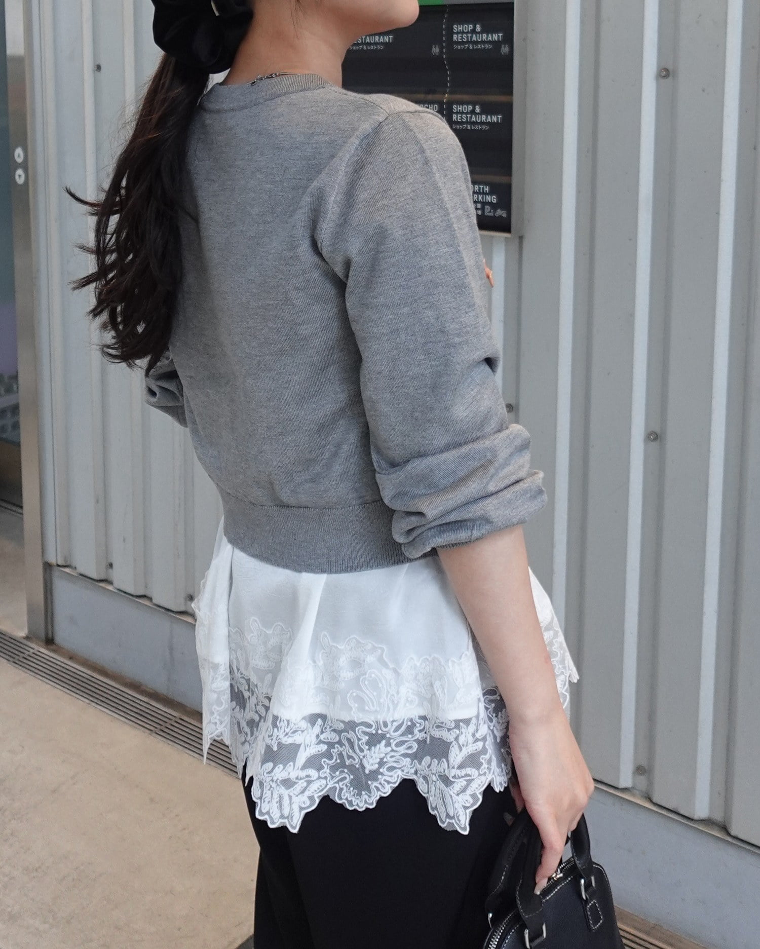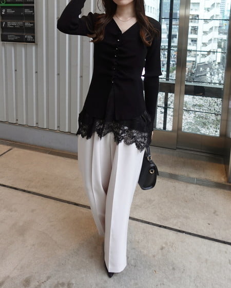 シャツやスウェットのインナーとして裾からレースをのぞかせるのも◎