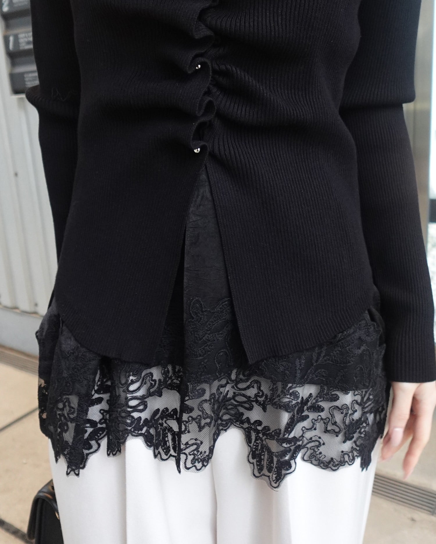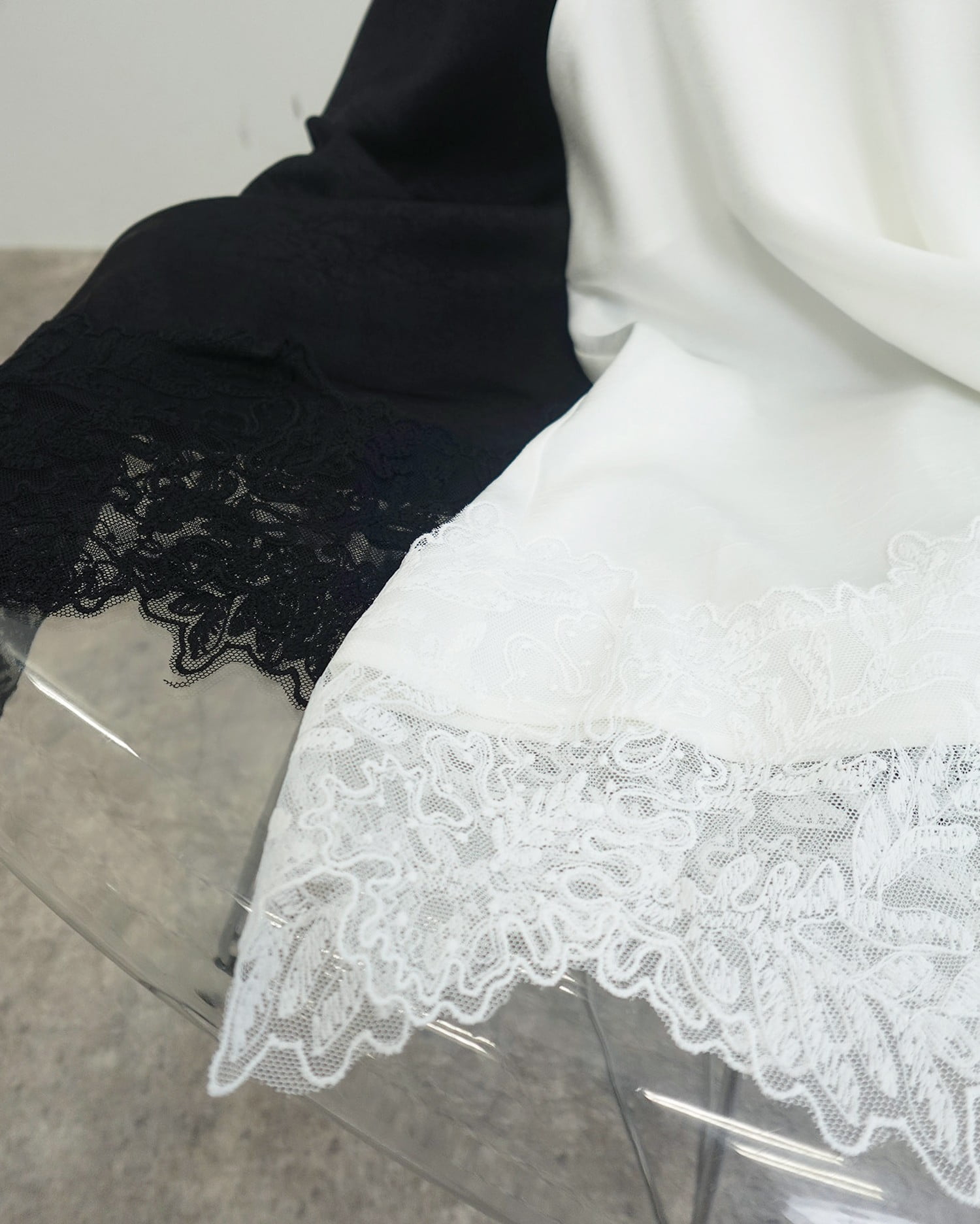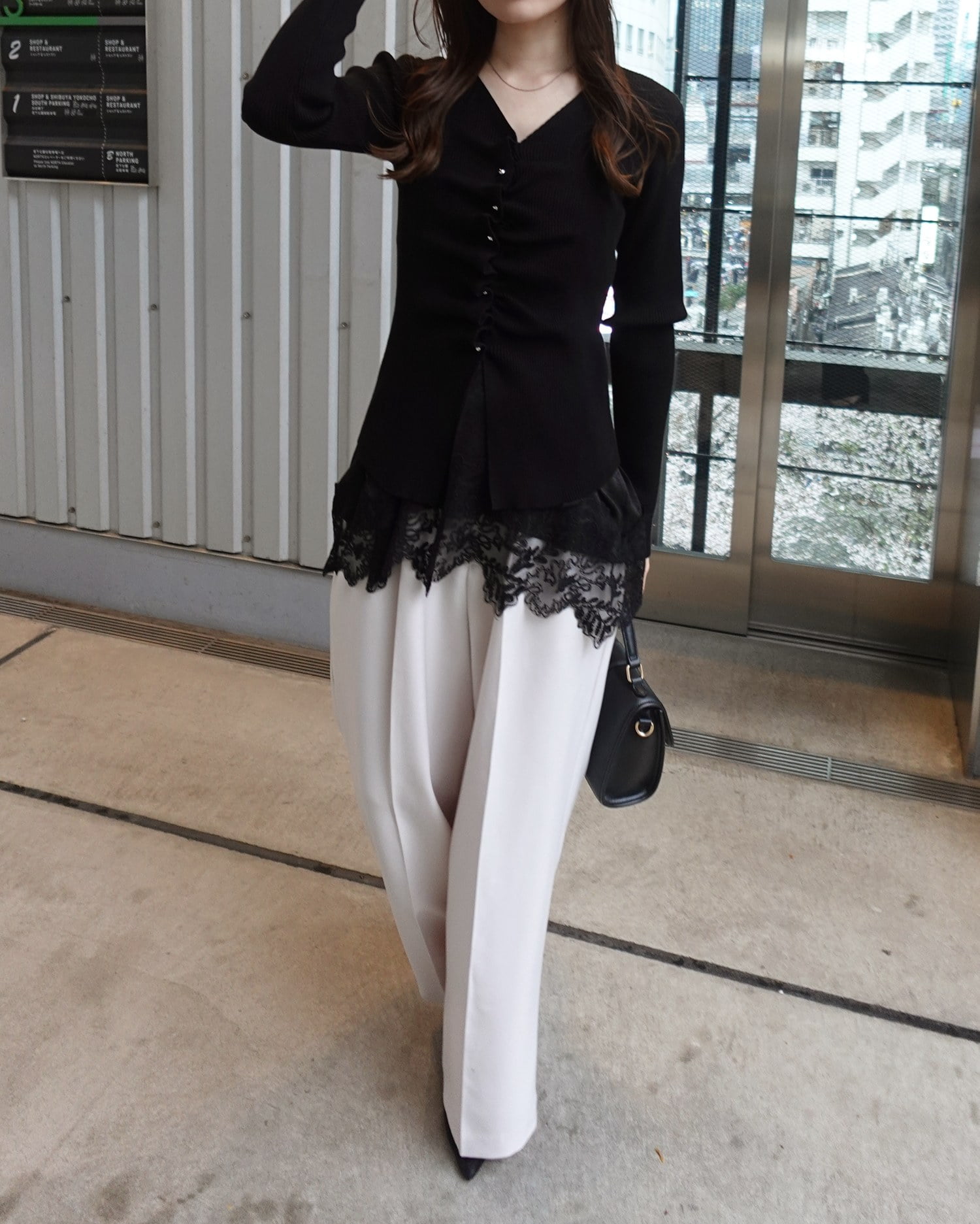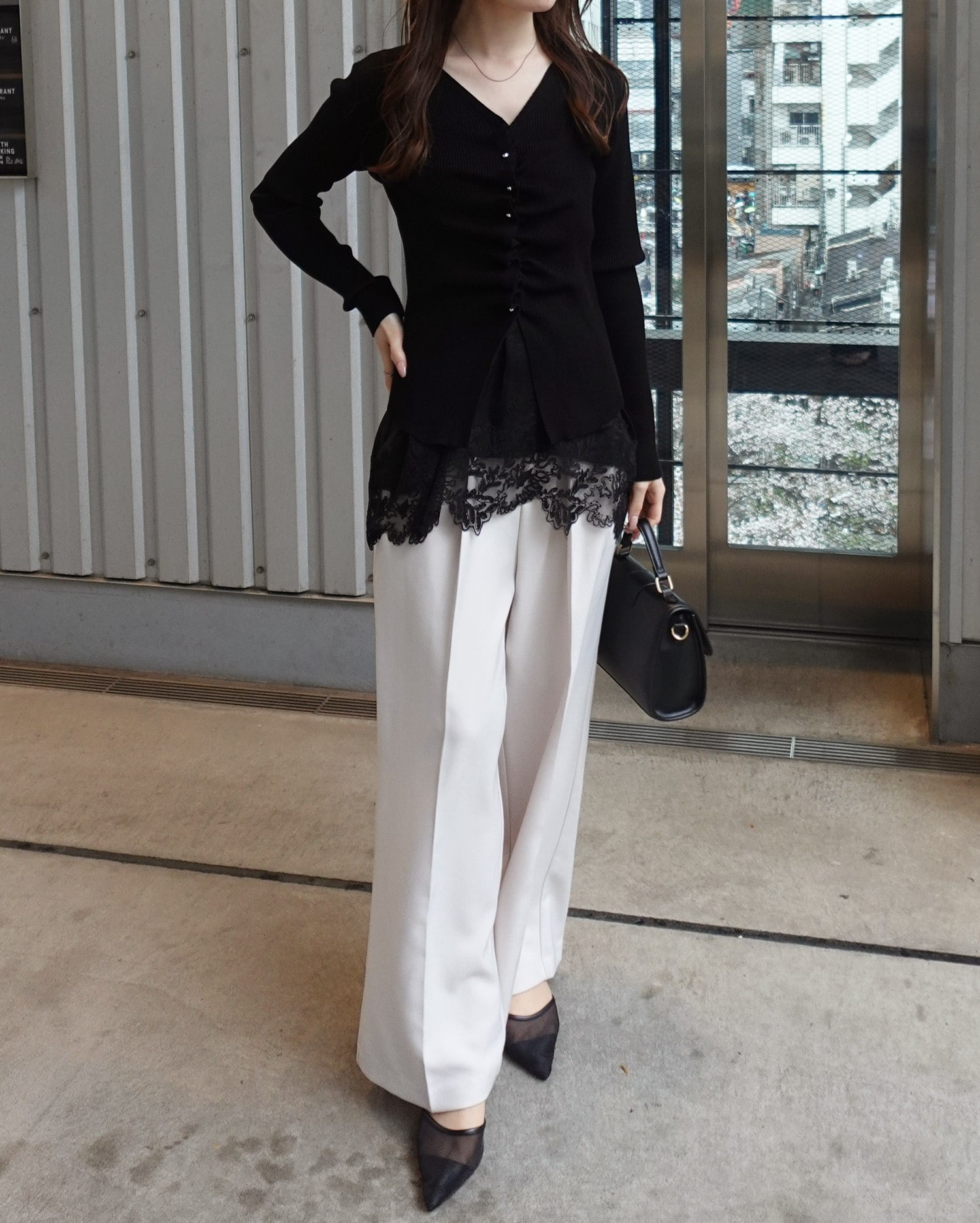 存在感のあるレースをあしらい、動くたびに表情豊かなアクセントをプラス。
