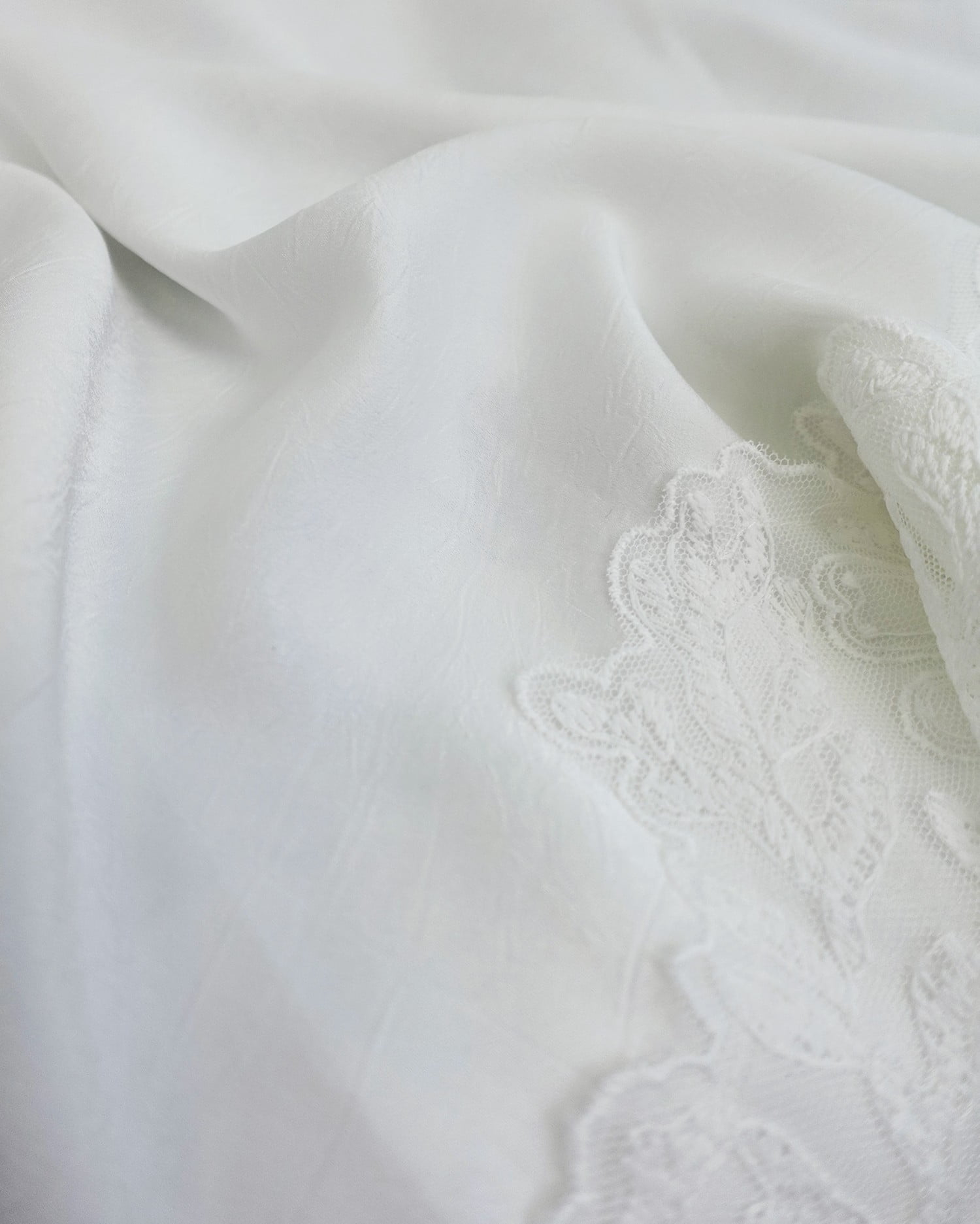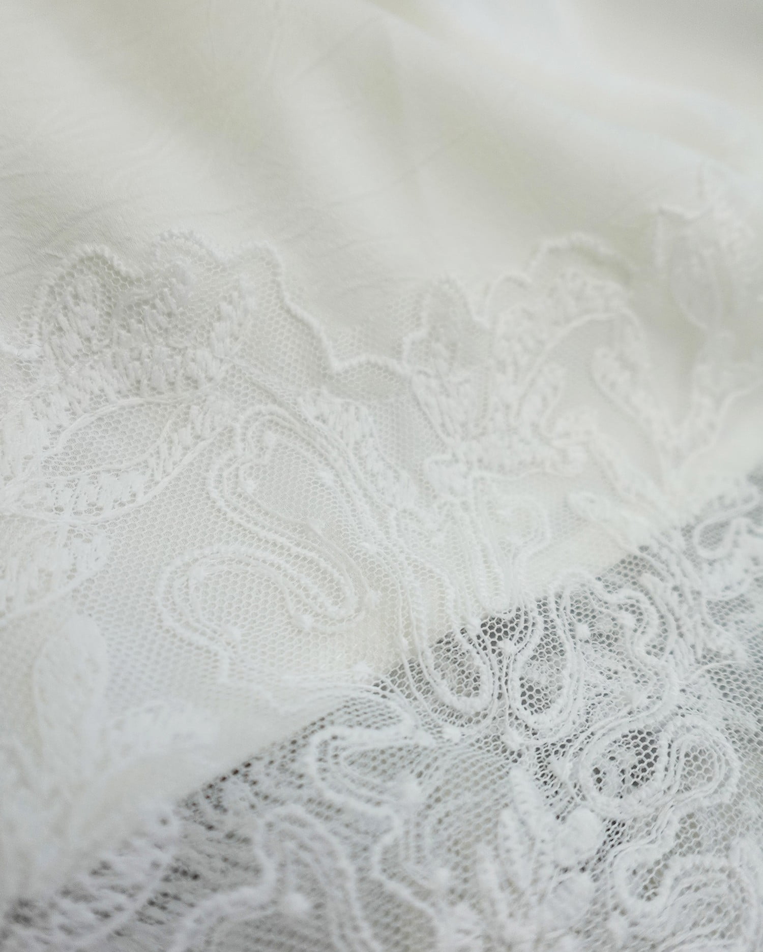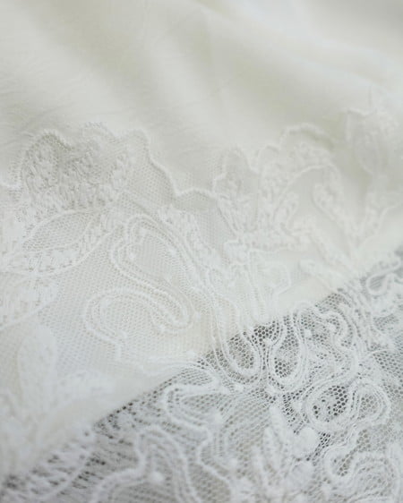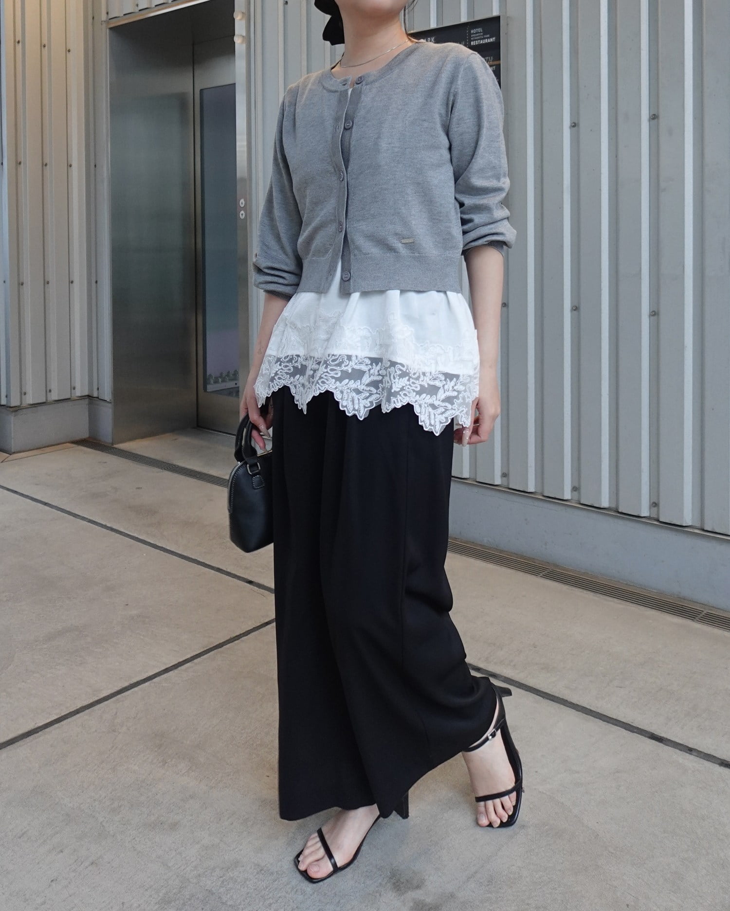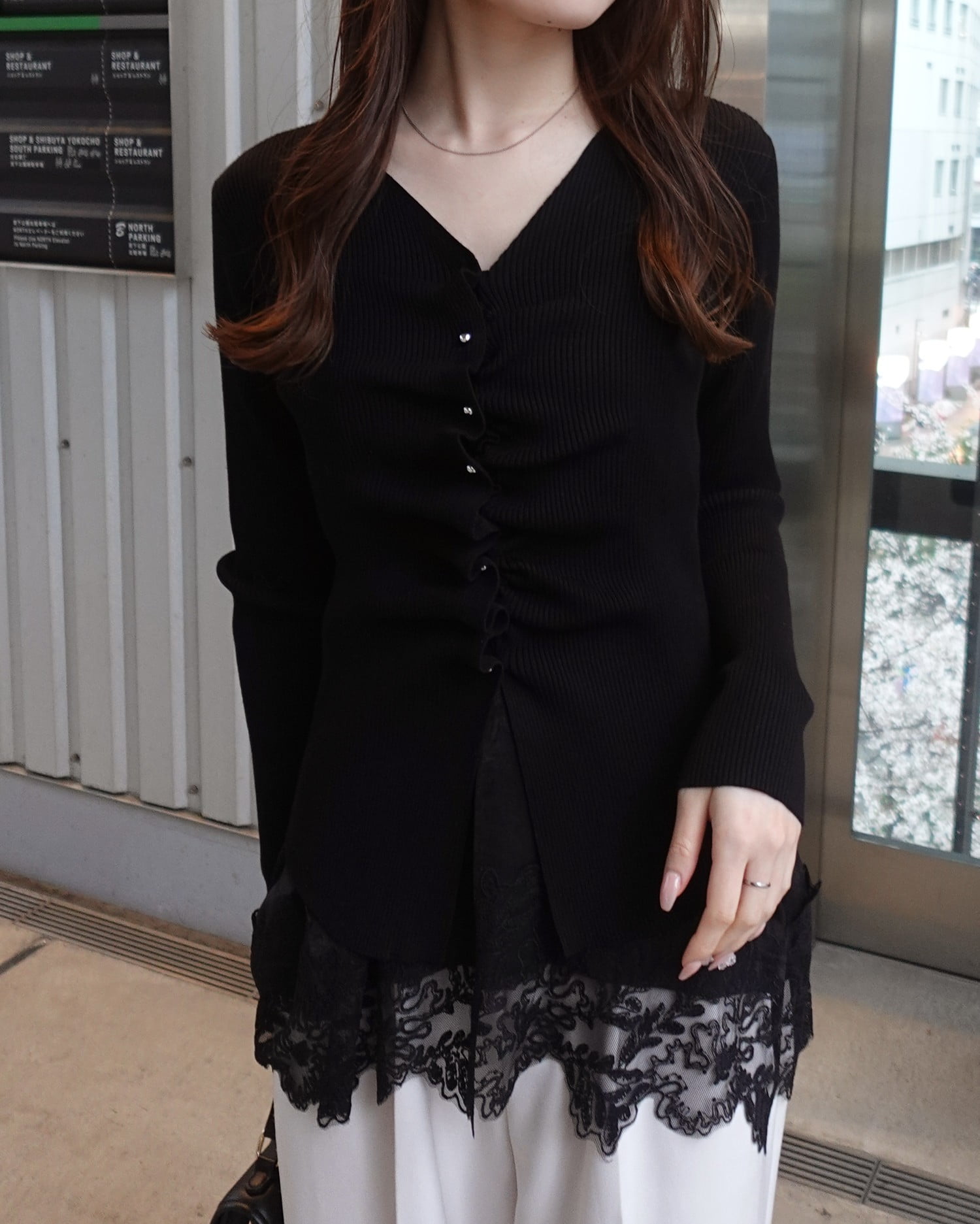 存在感のあるレースをあしらい、動くたびに表情豊かなアクセントをプラス。