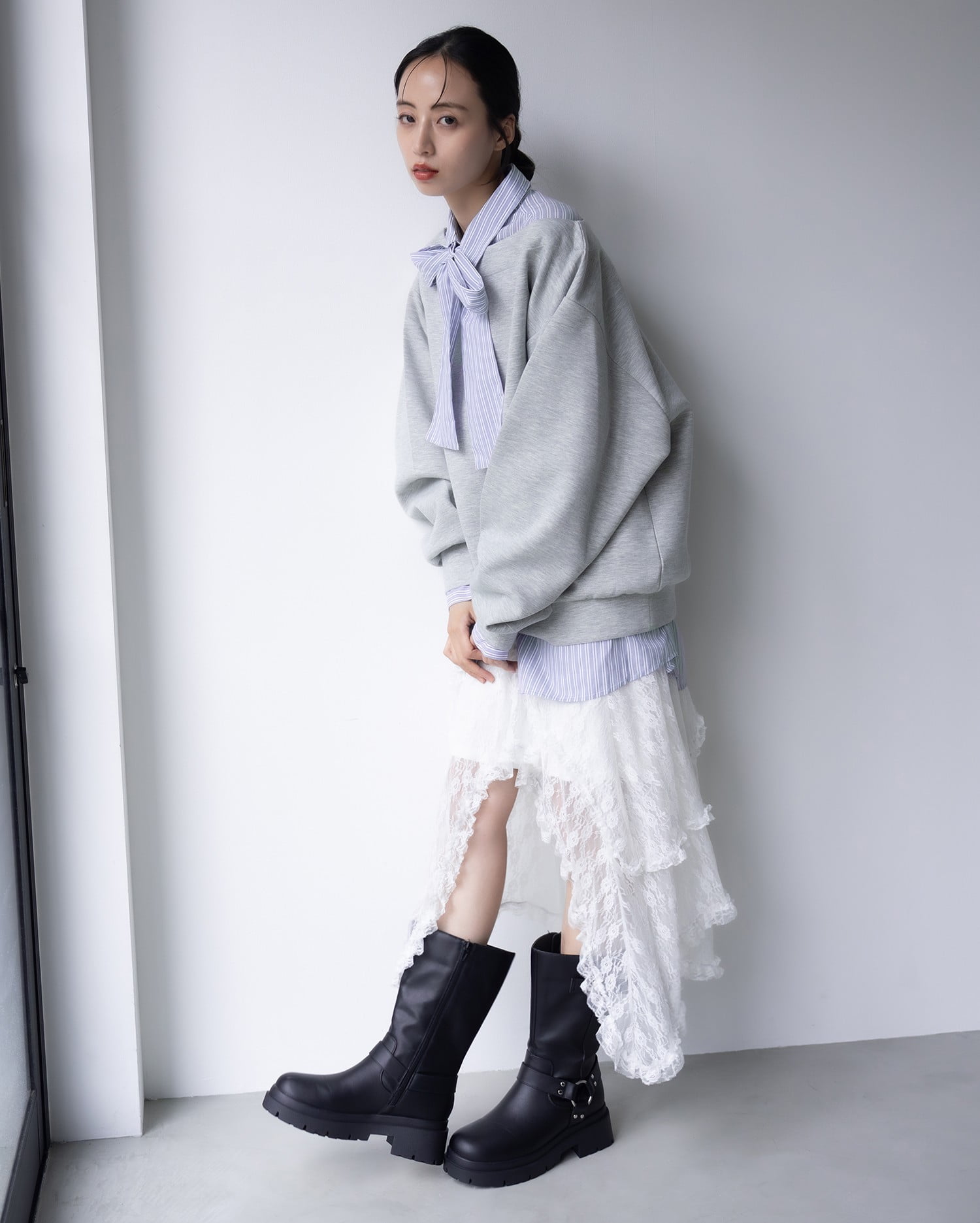 ゆったりめの身頃と長めの裾丈でカジュアルにも合わせやすく仕上げています。
