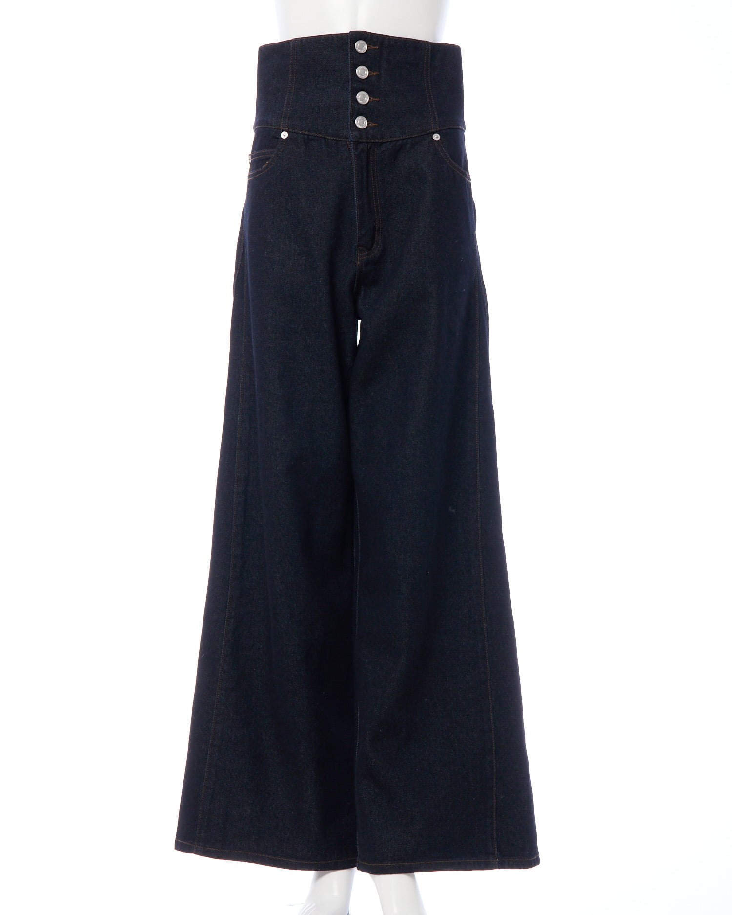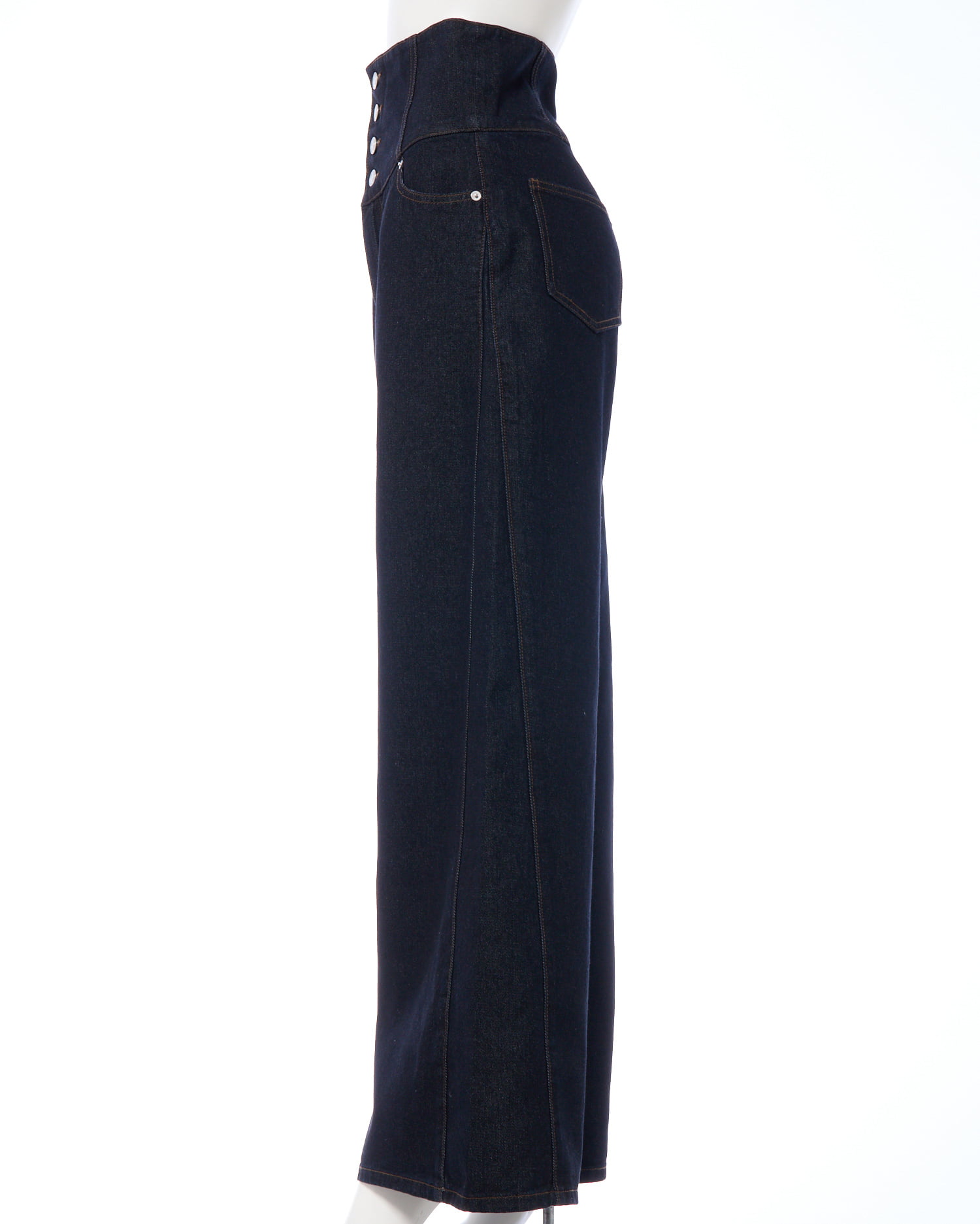 4つボタンのハイウエストデザインで脚長効果も抜群です。