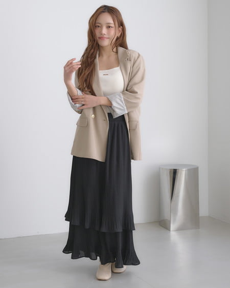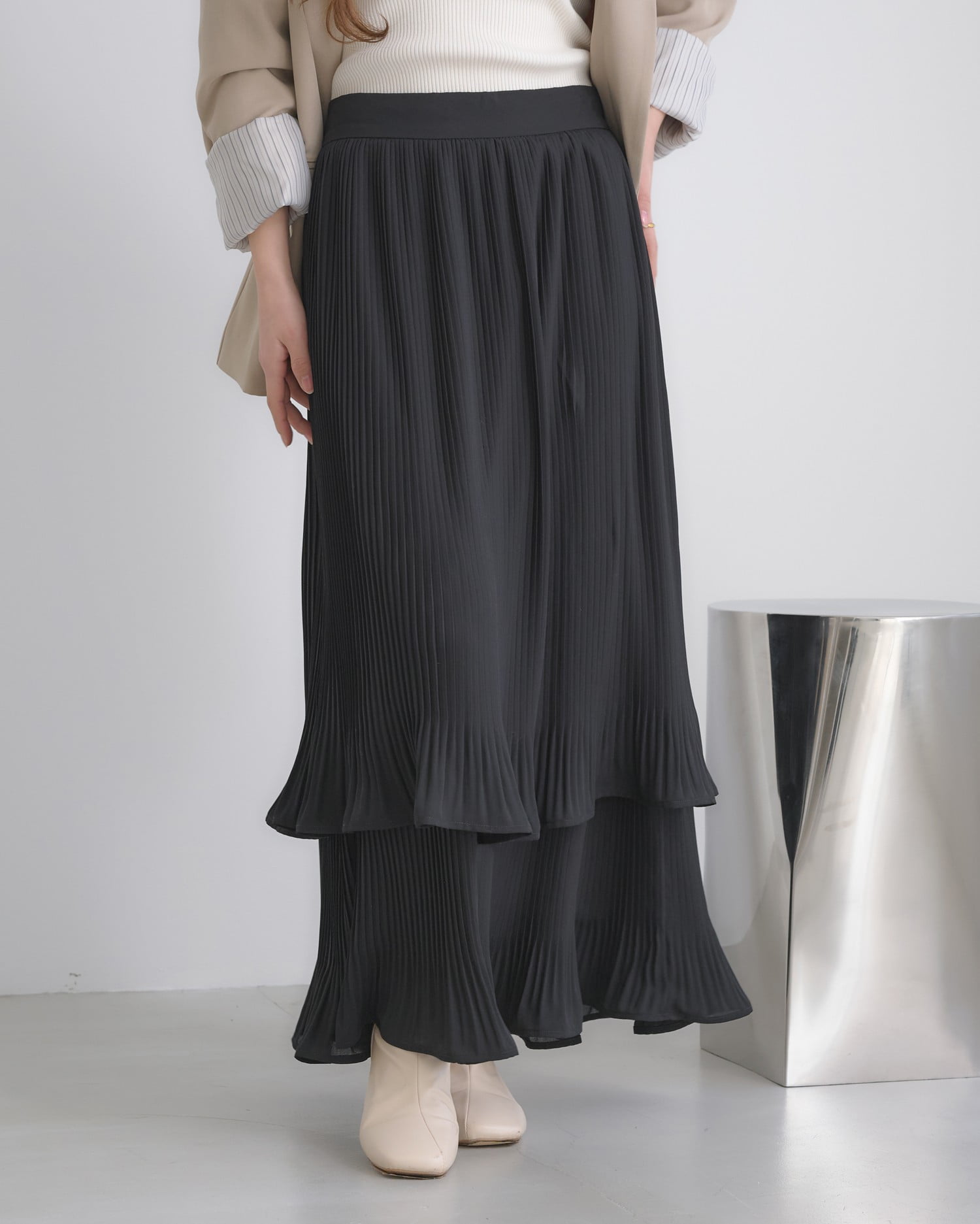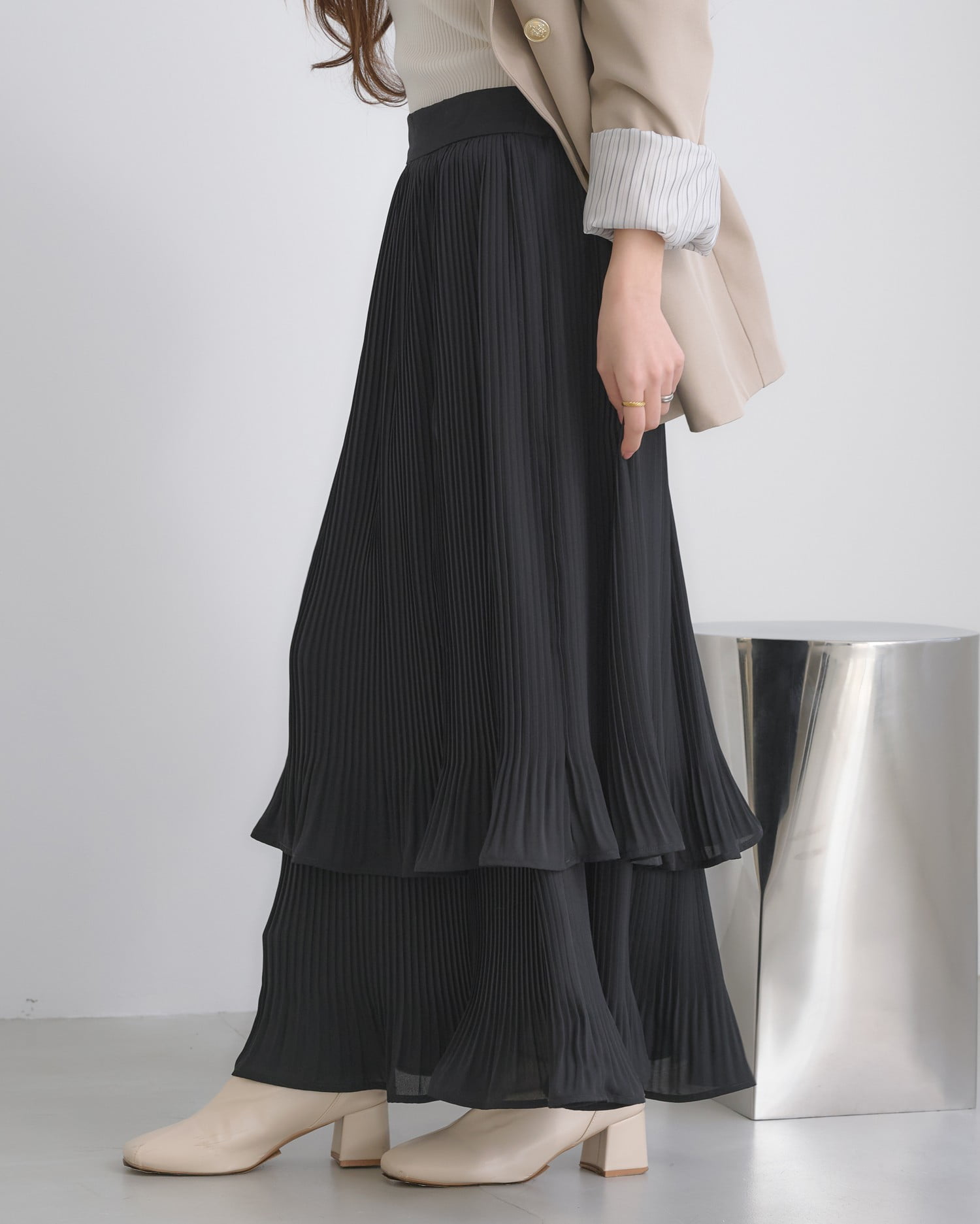 ティアード×プリーツデザインで、ひらひらと揺れるシルエットが