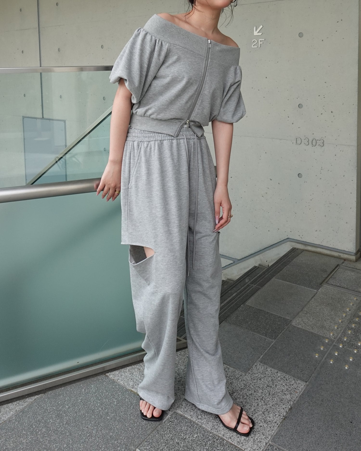 ・6999-100270【ダブルジップオフショルスウェット】