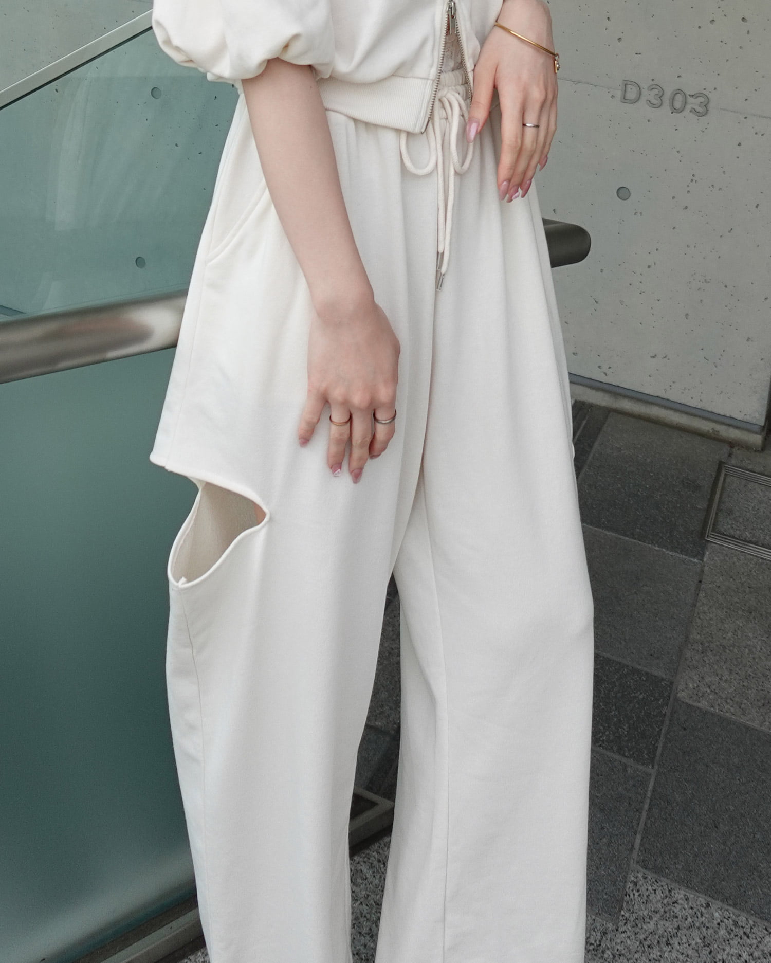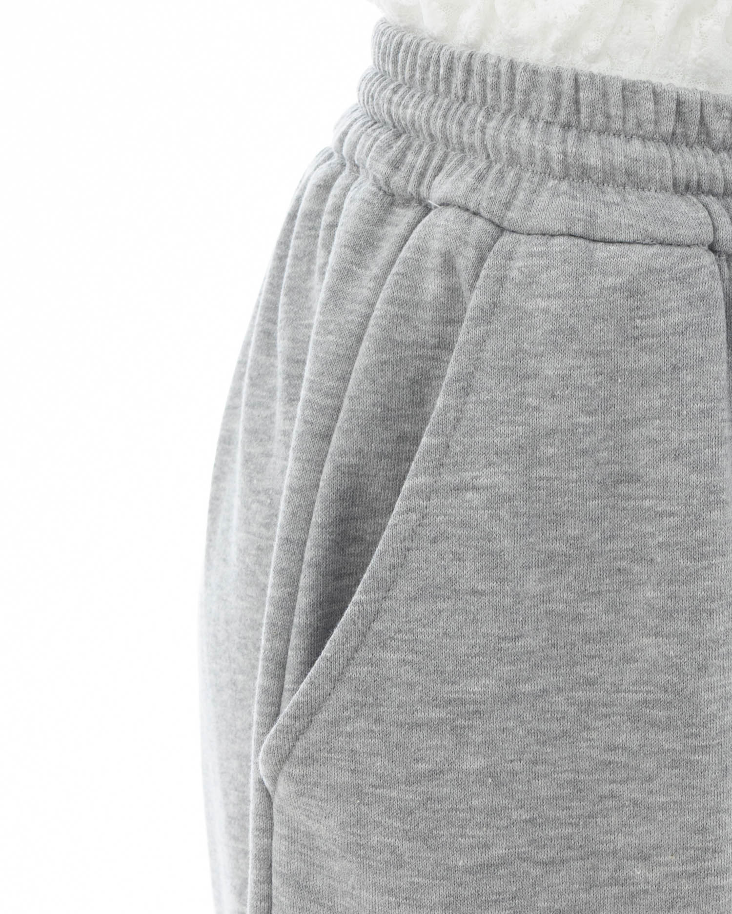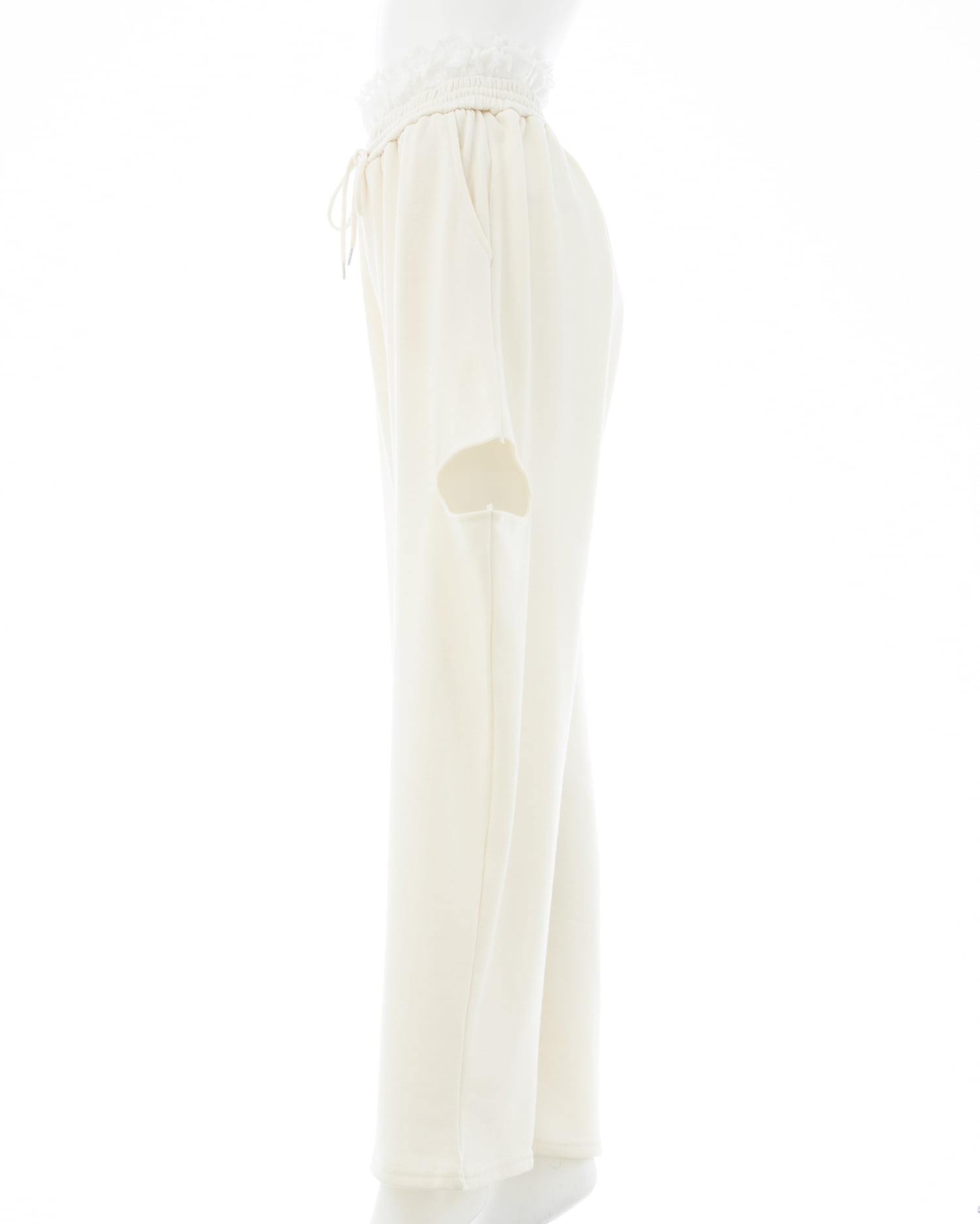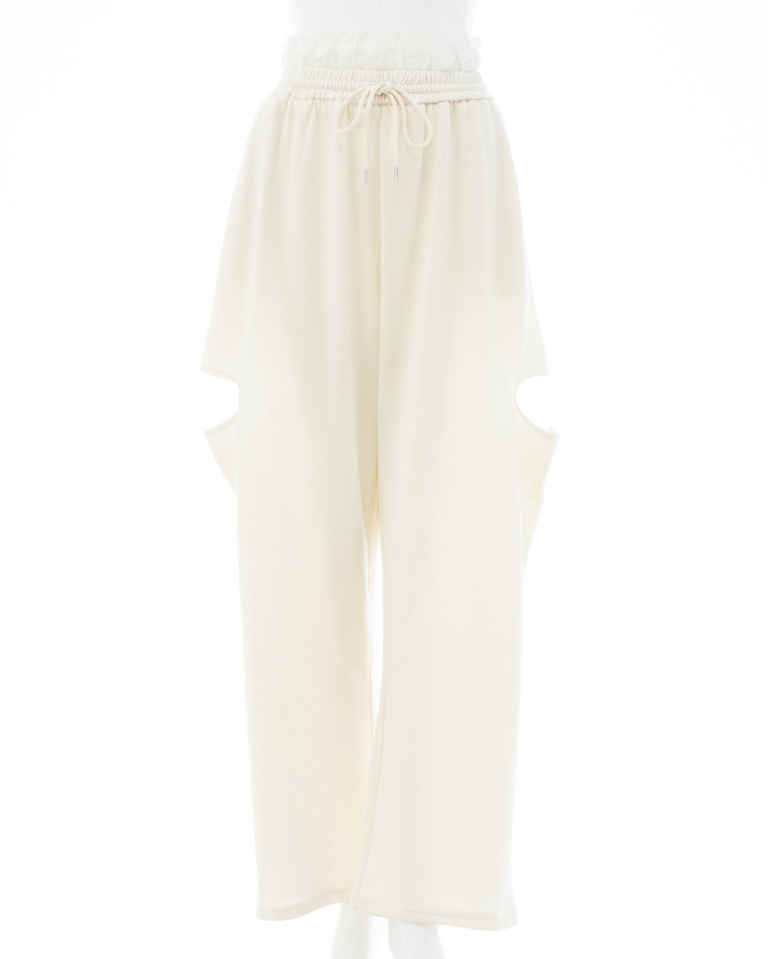 ウエストにレースが付いたトレンドライクなスウェットパンツ。