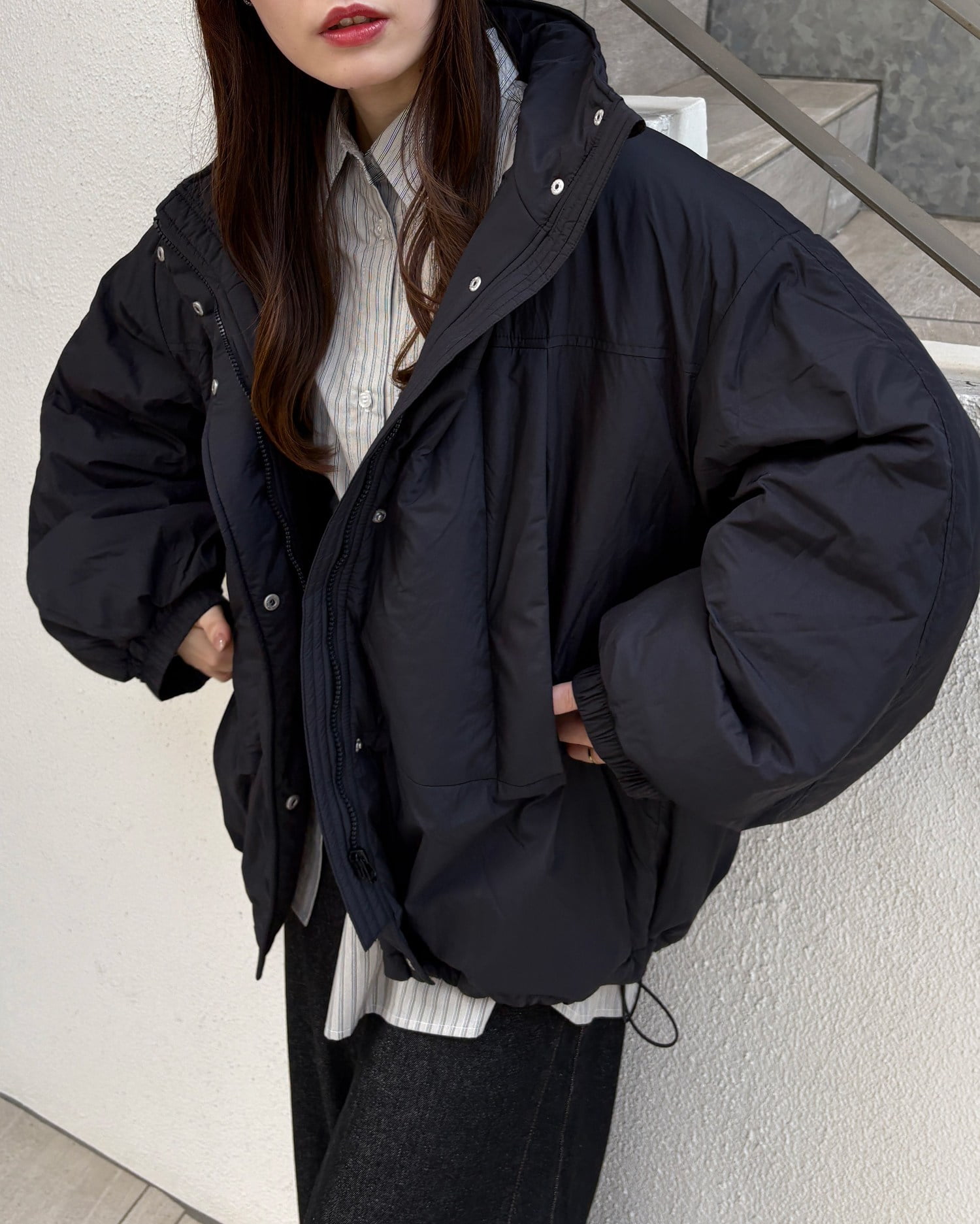 裾のドロストで、立体的な丸みのあるバルーンシルエットが完成。