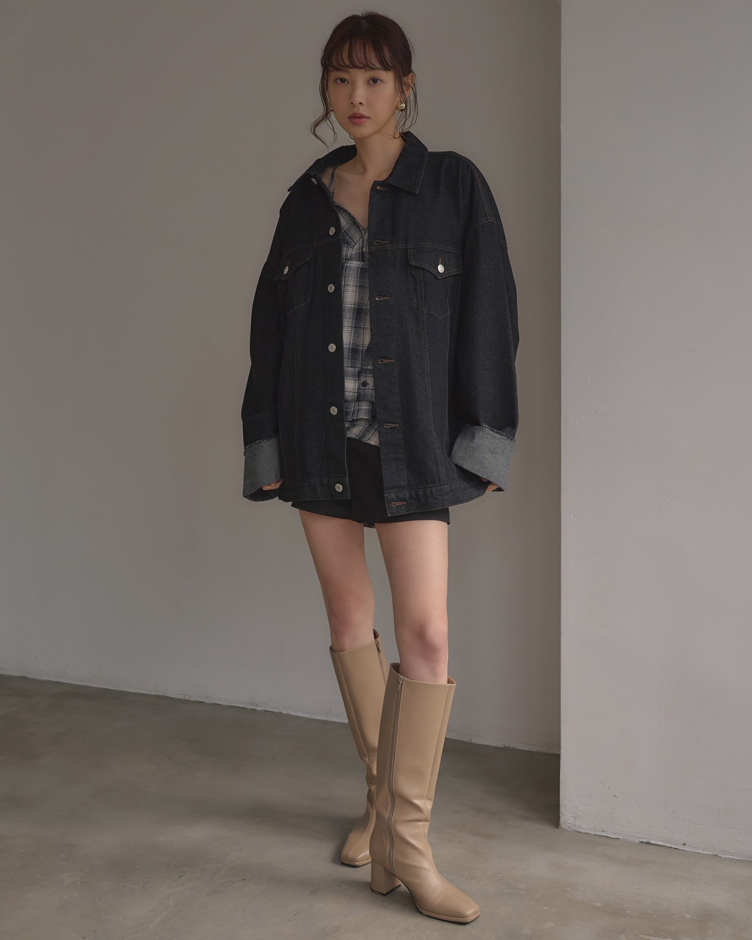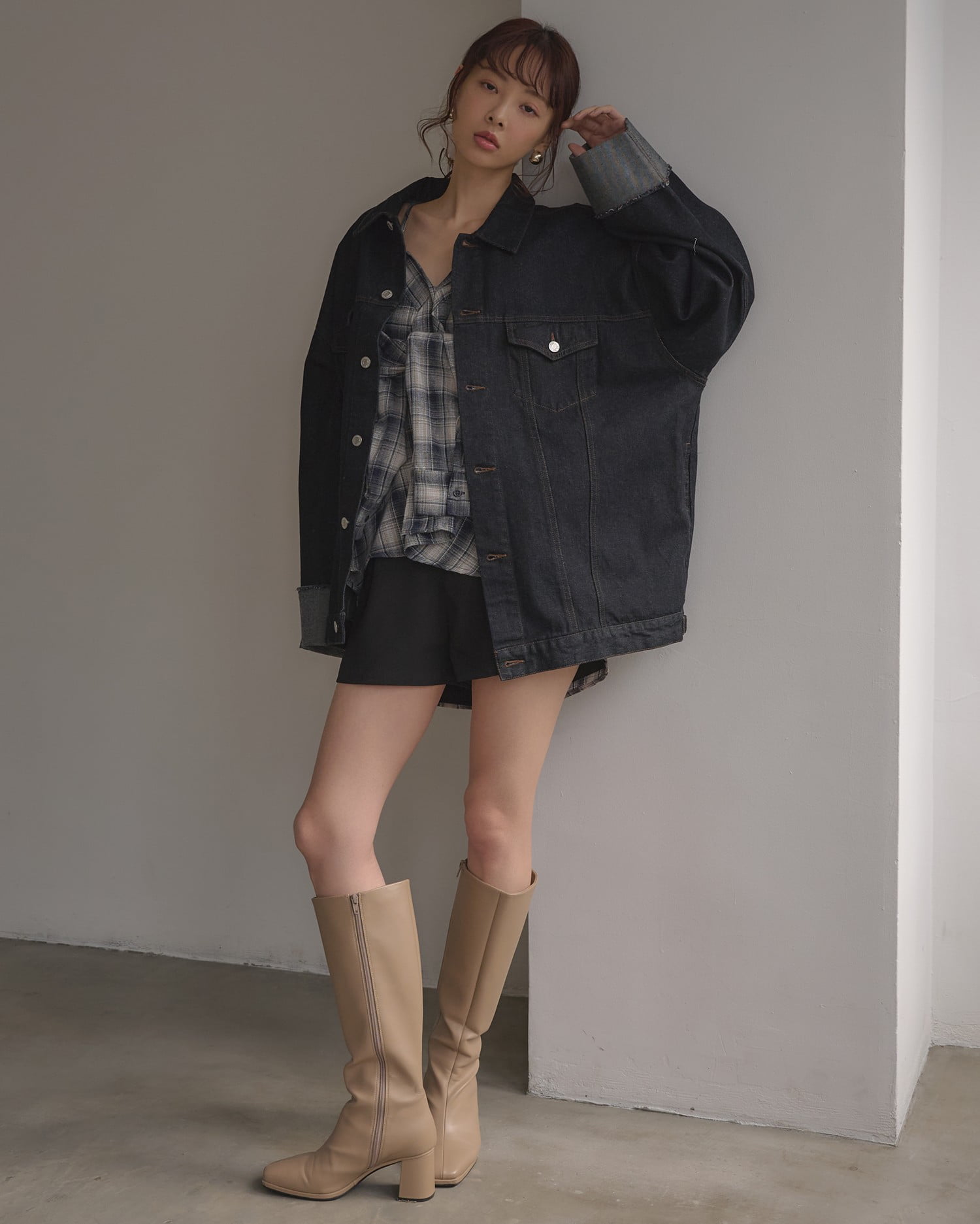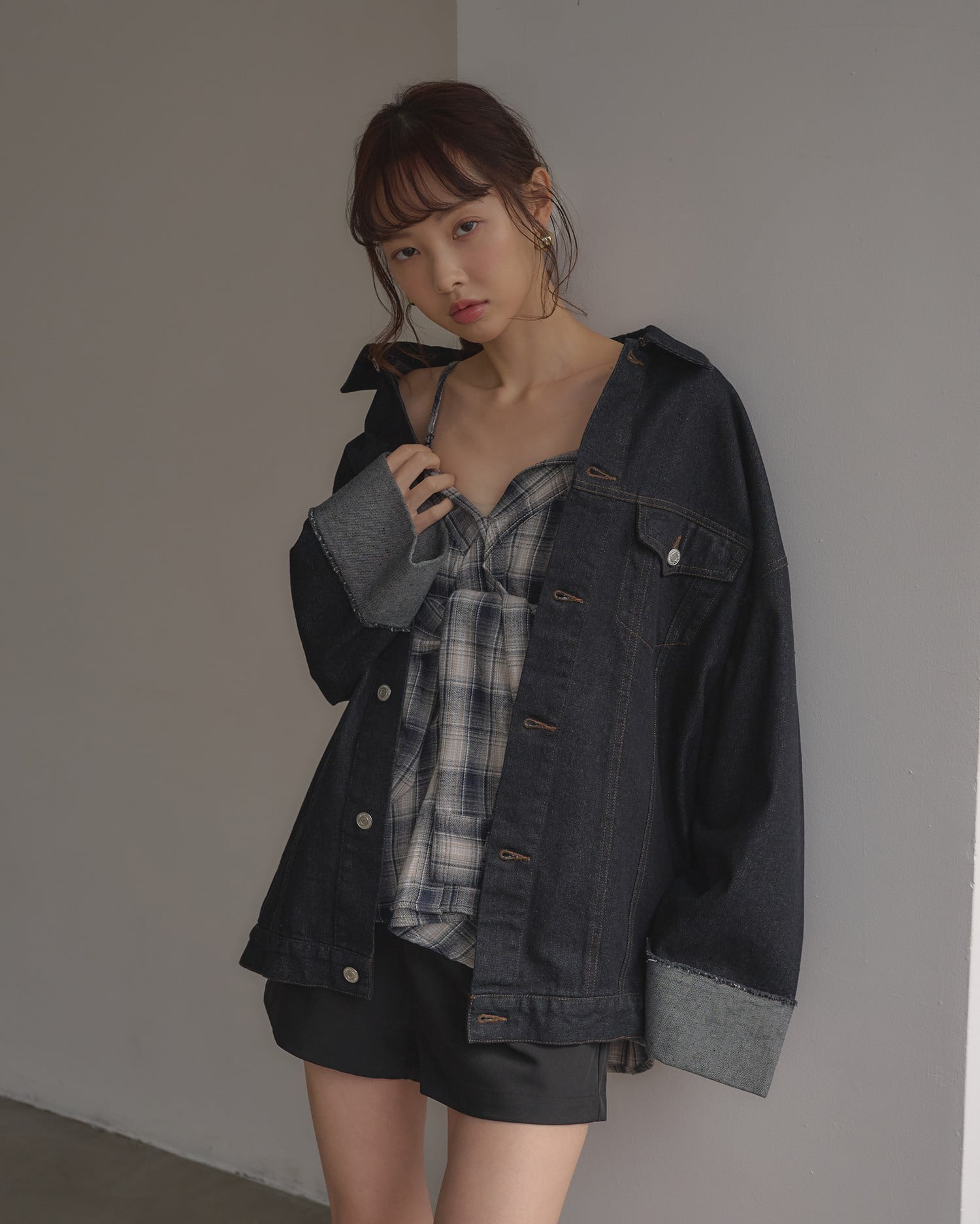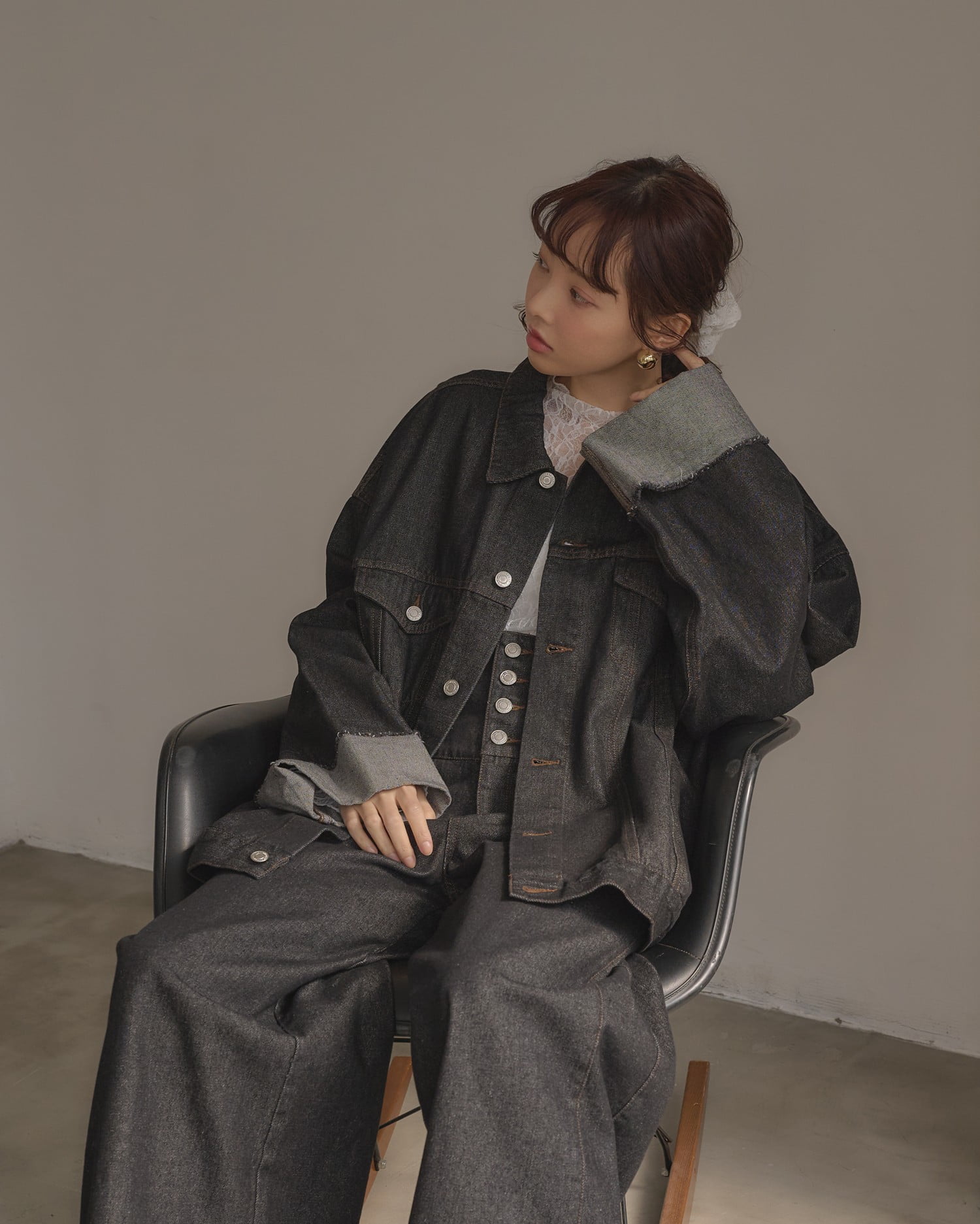 袖部分を大きく折り返したデザインが印象的なデニムジャケットです。