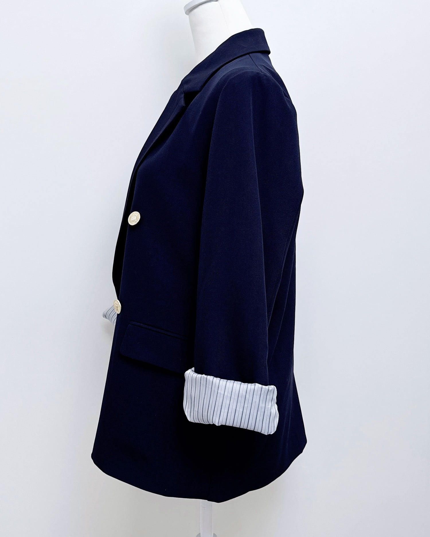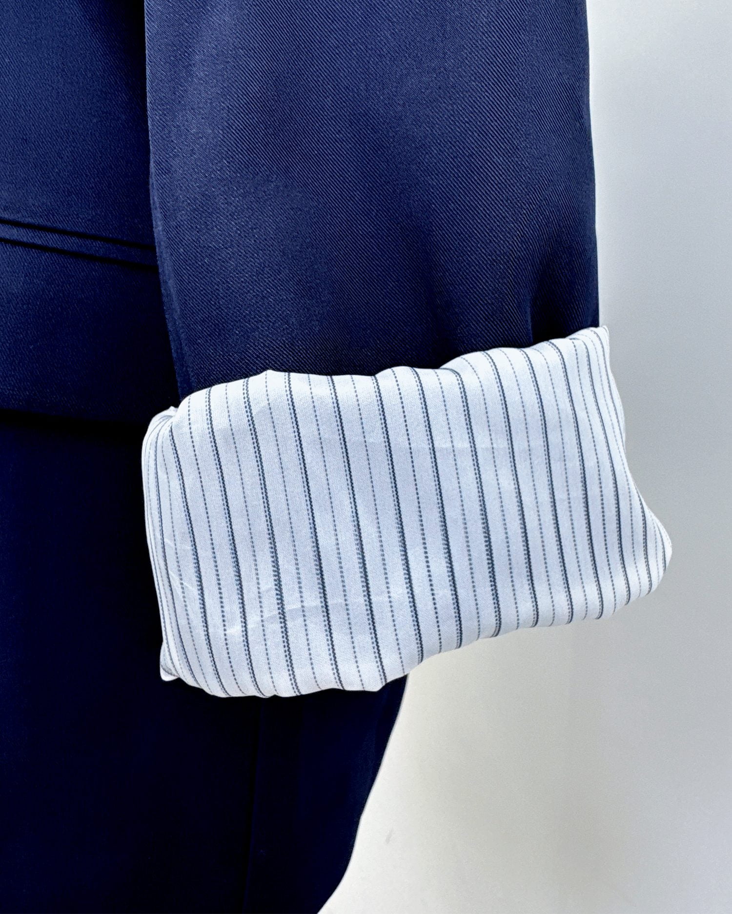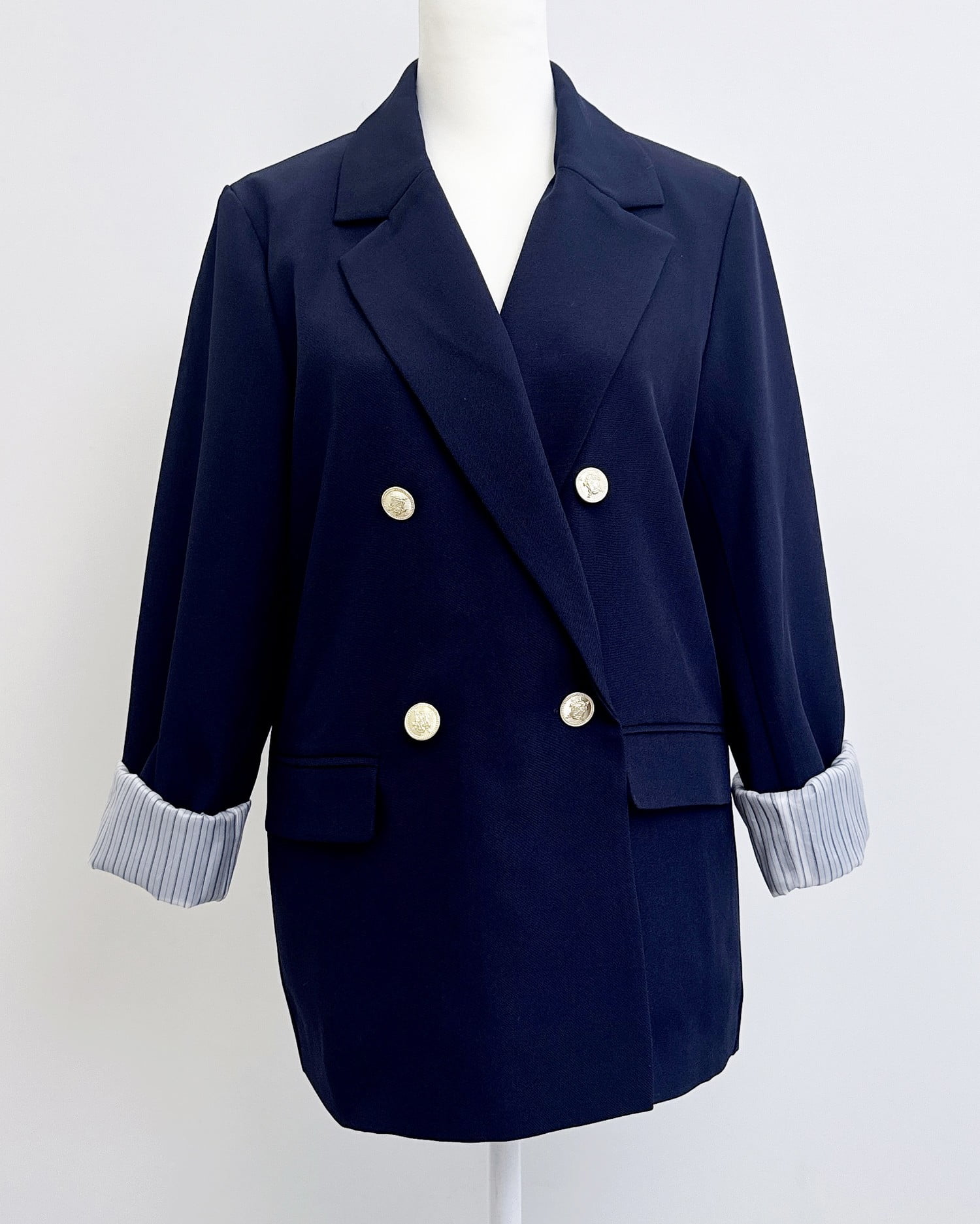 裏地はストライプになっているので、袖を折り返して着こなすのもおすすめです◎