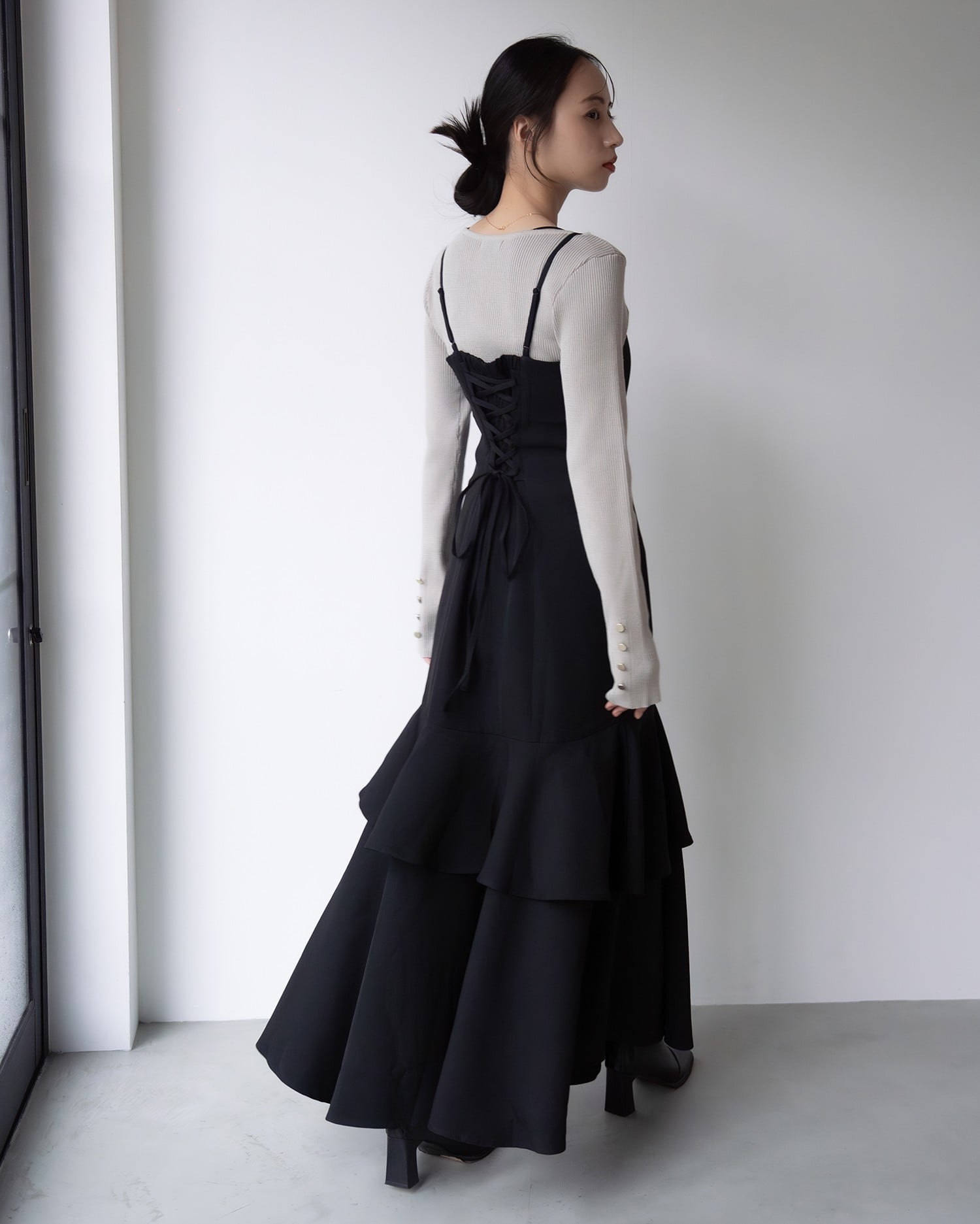バックはレースアップでアクセントをプラス。