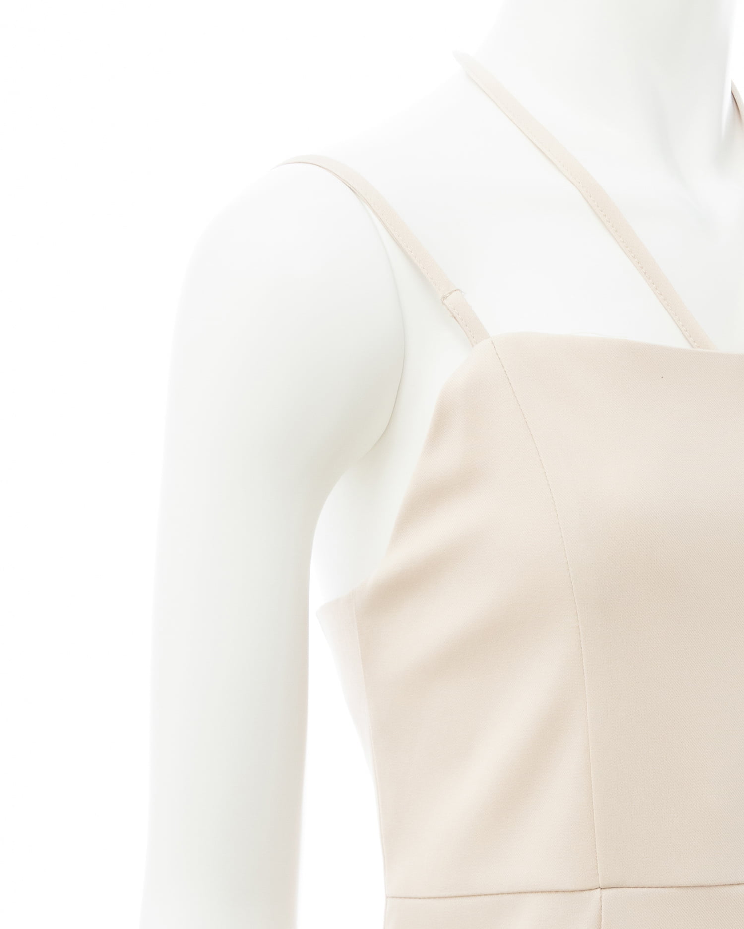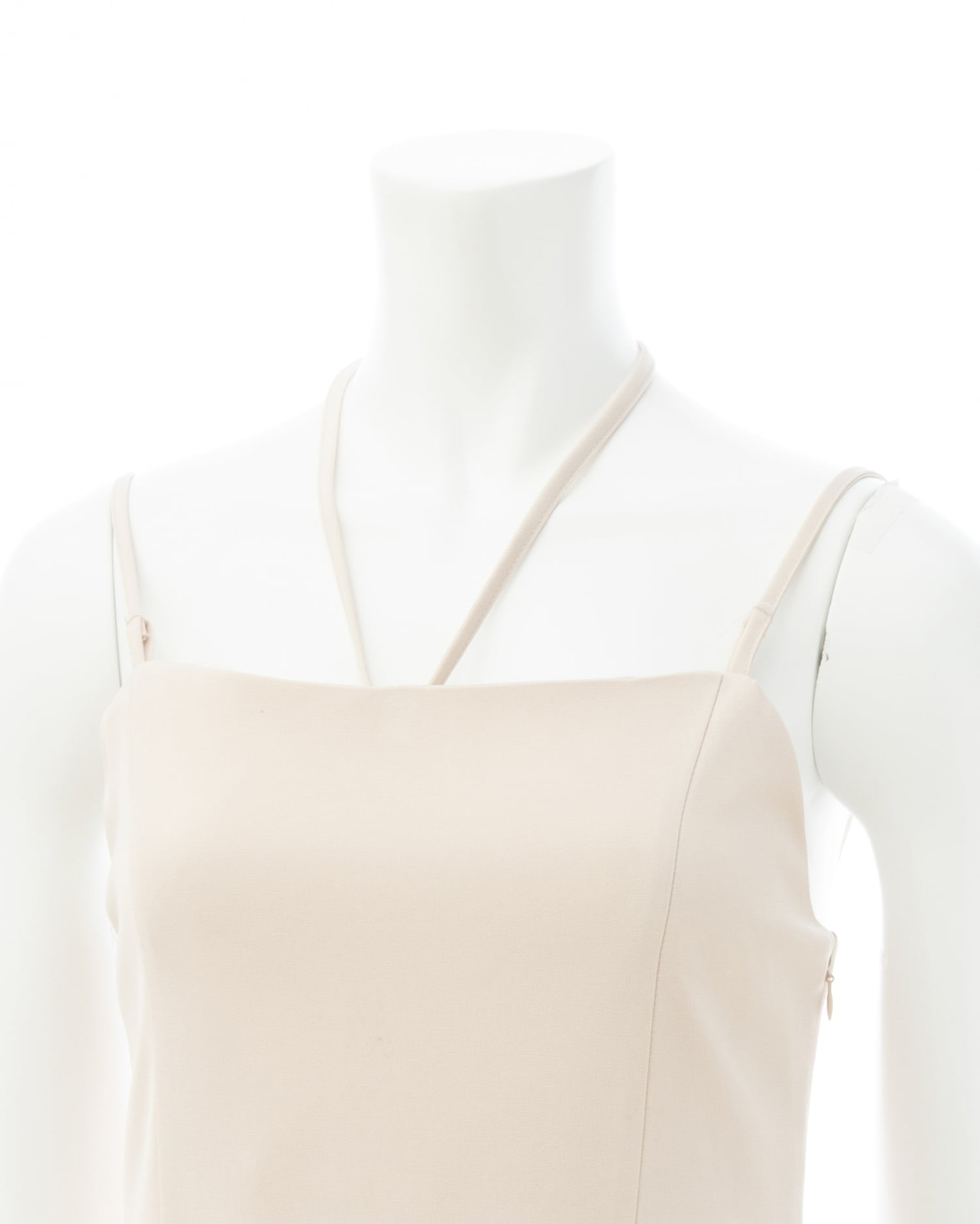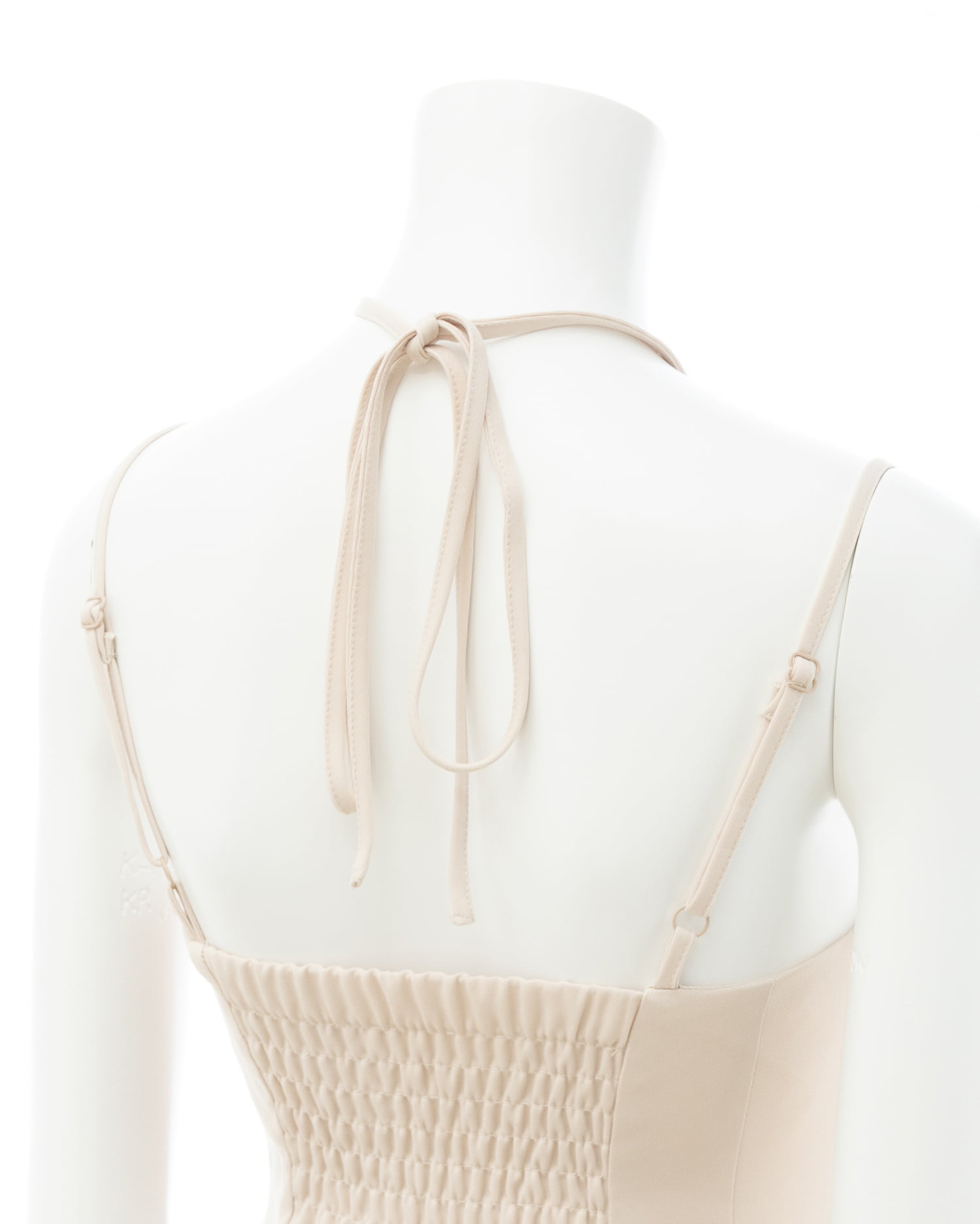 胸元中央のホルターネックストラップは取り外しが可能。