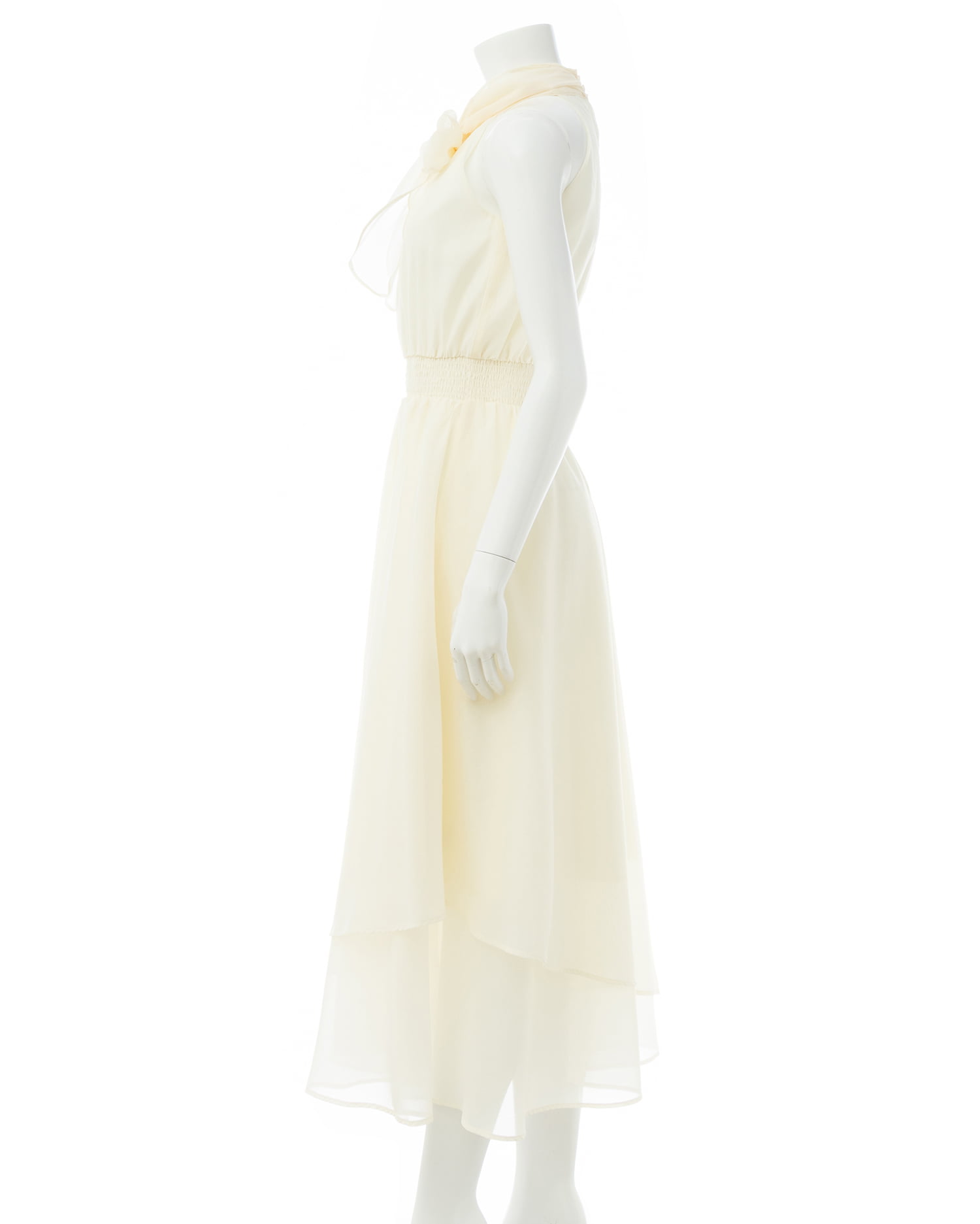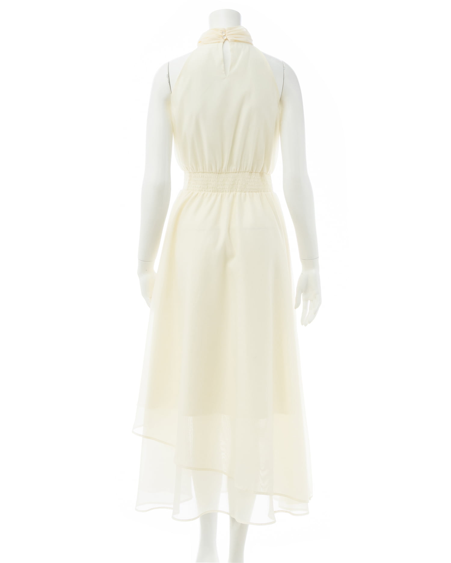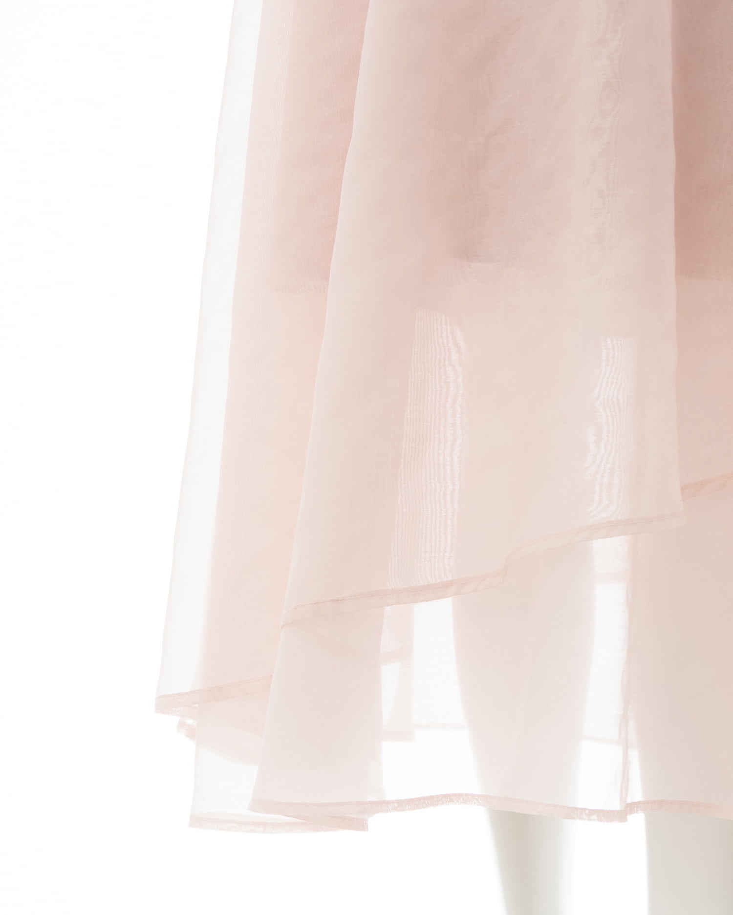 歩く度にふわりと広がるアシンメトリーの裾がエレガント。