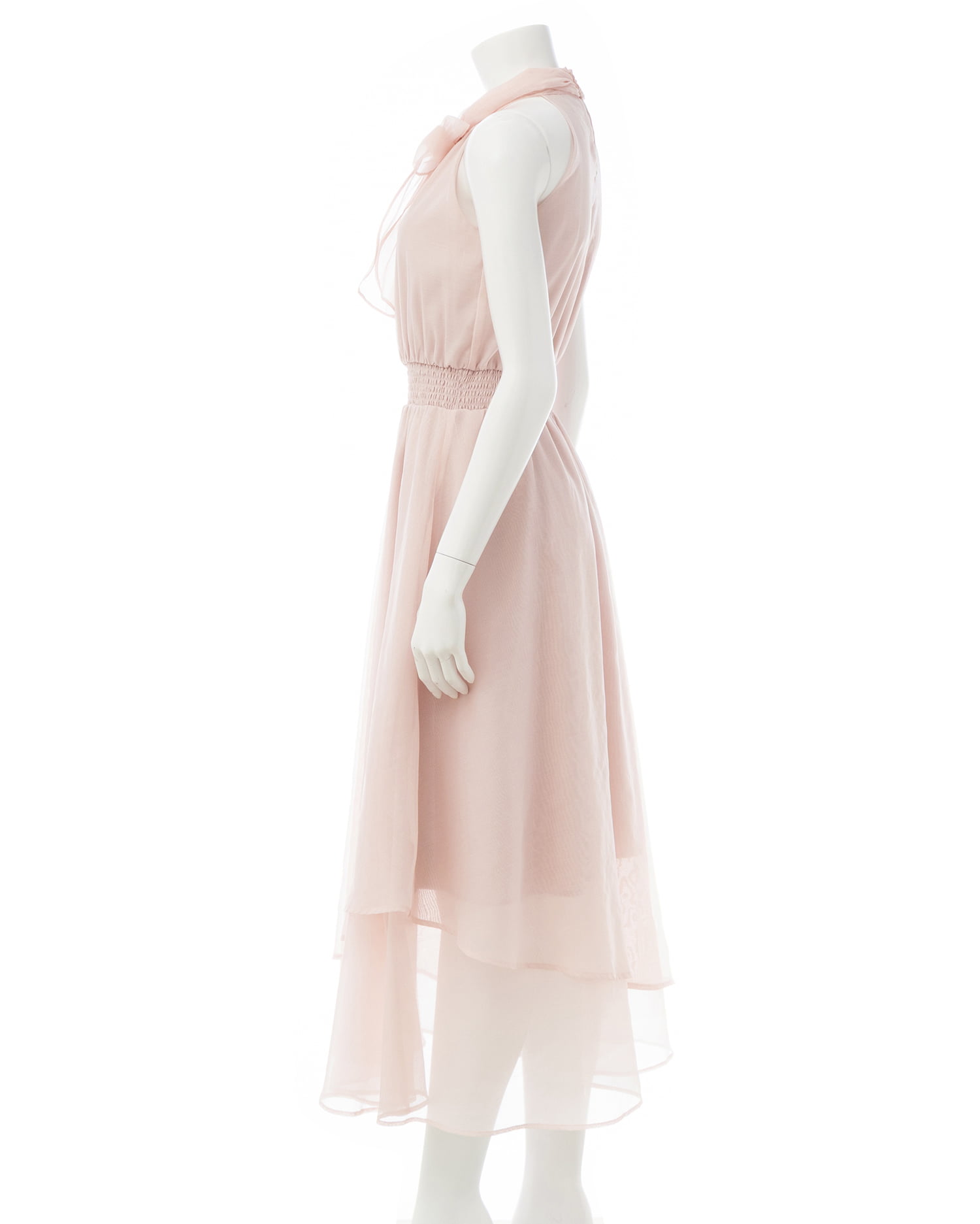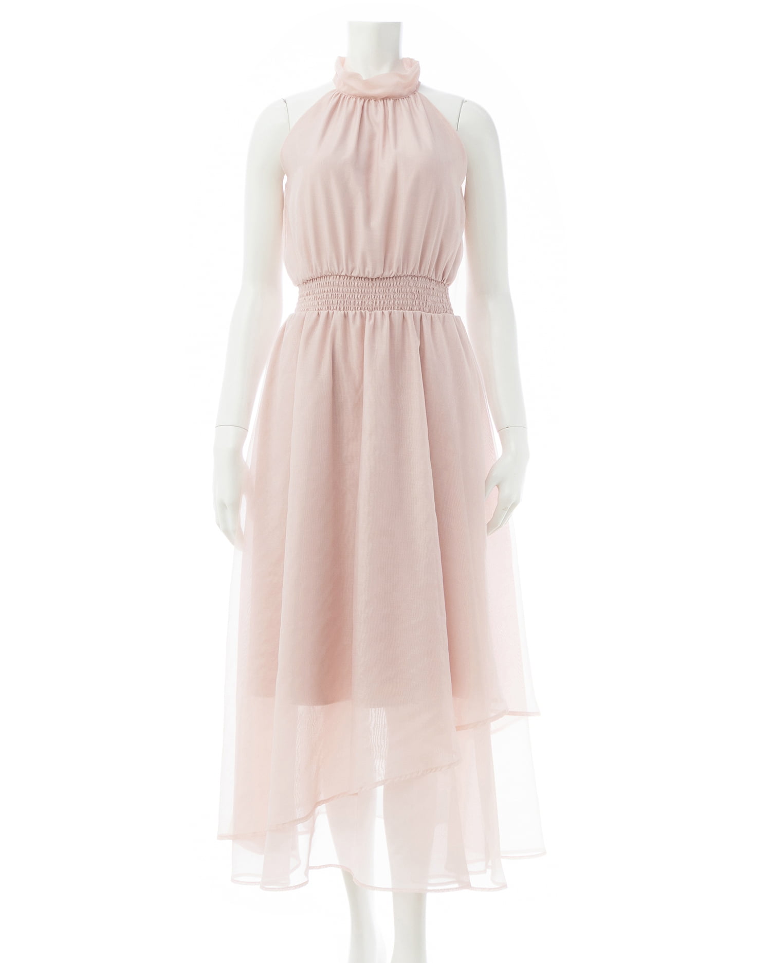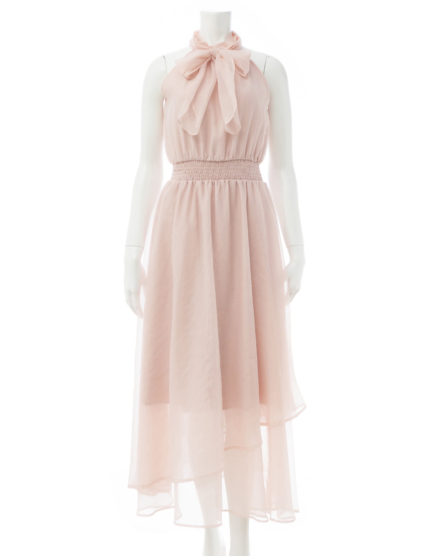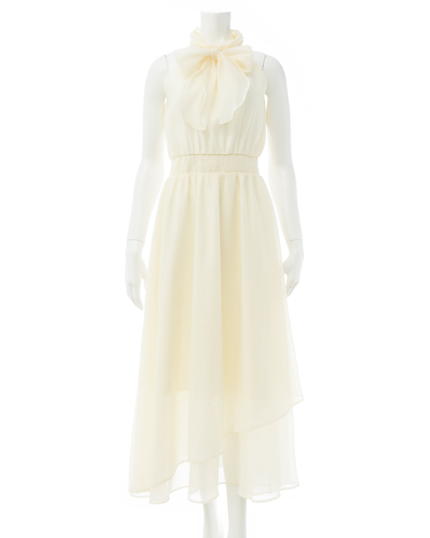 上半身をすっきり華奢に見せてくれるアメリカンスリーブのワンピース。