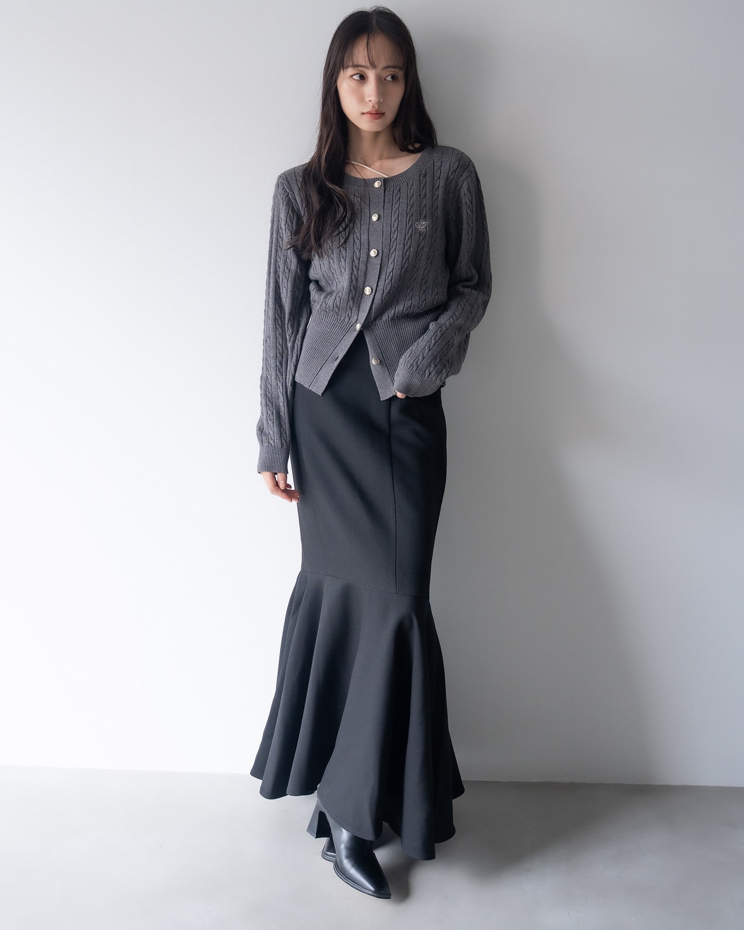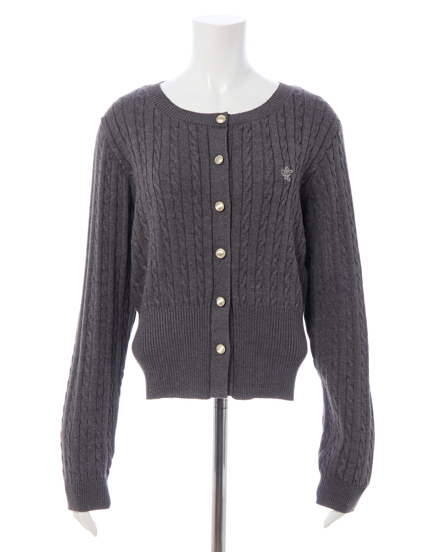 • INGNI(イング) 【プレミアムライン INGNI SOELA】胸刺繍金ボタンケーブルニットカーディガン チャコールグレー