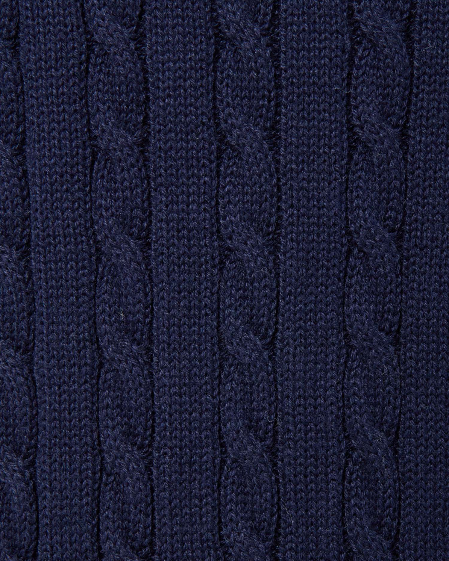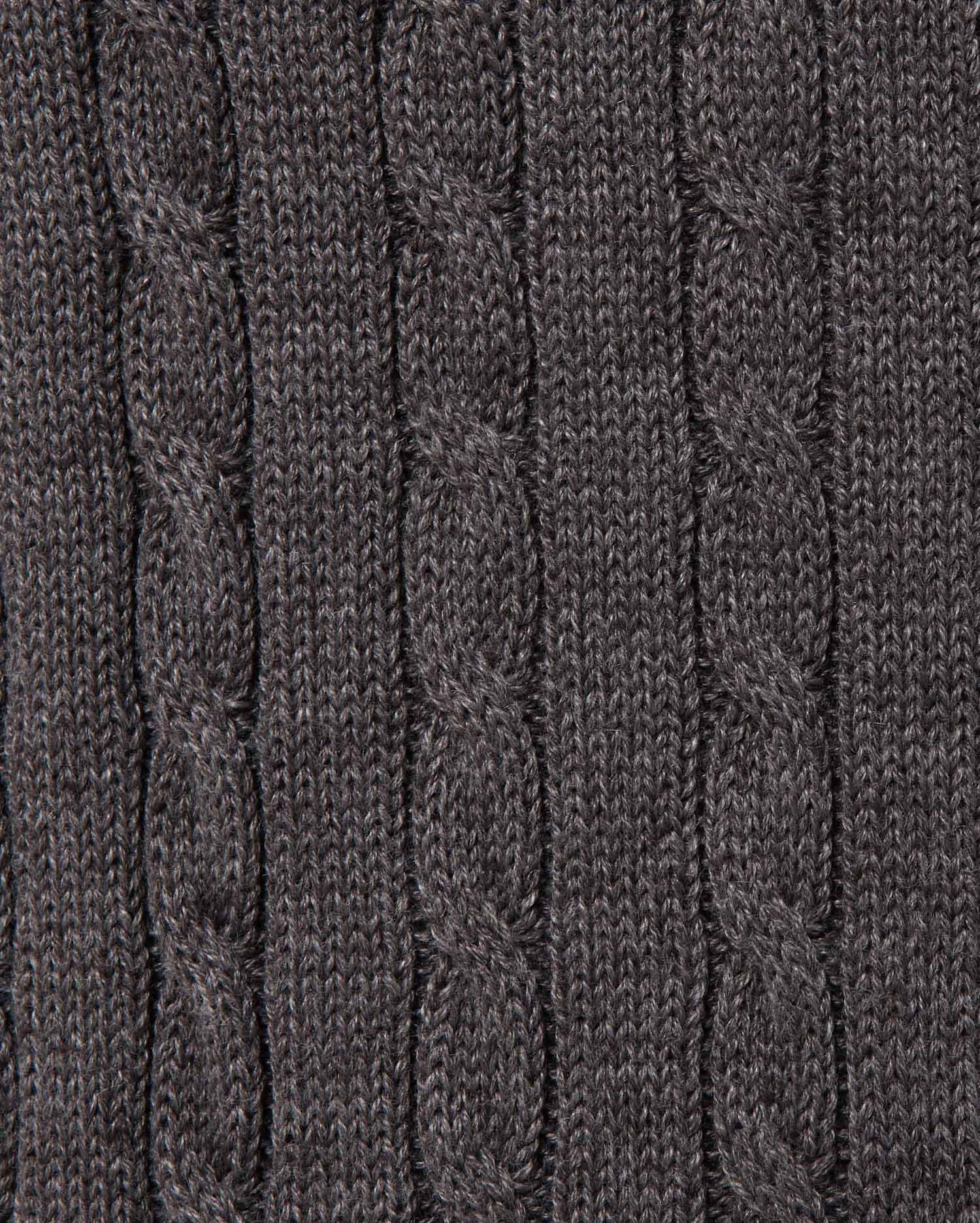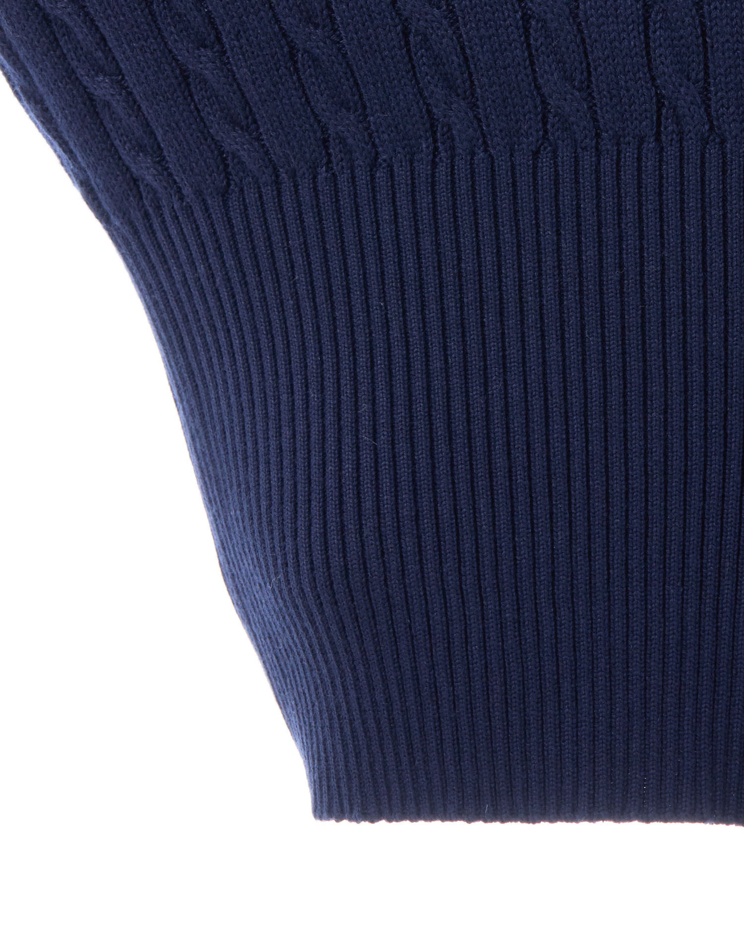 優等生風のスタイルが完成するケーブル編みのカーディガン。