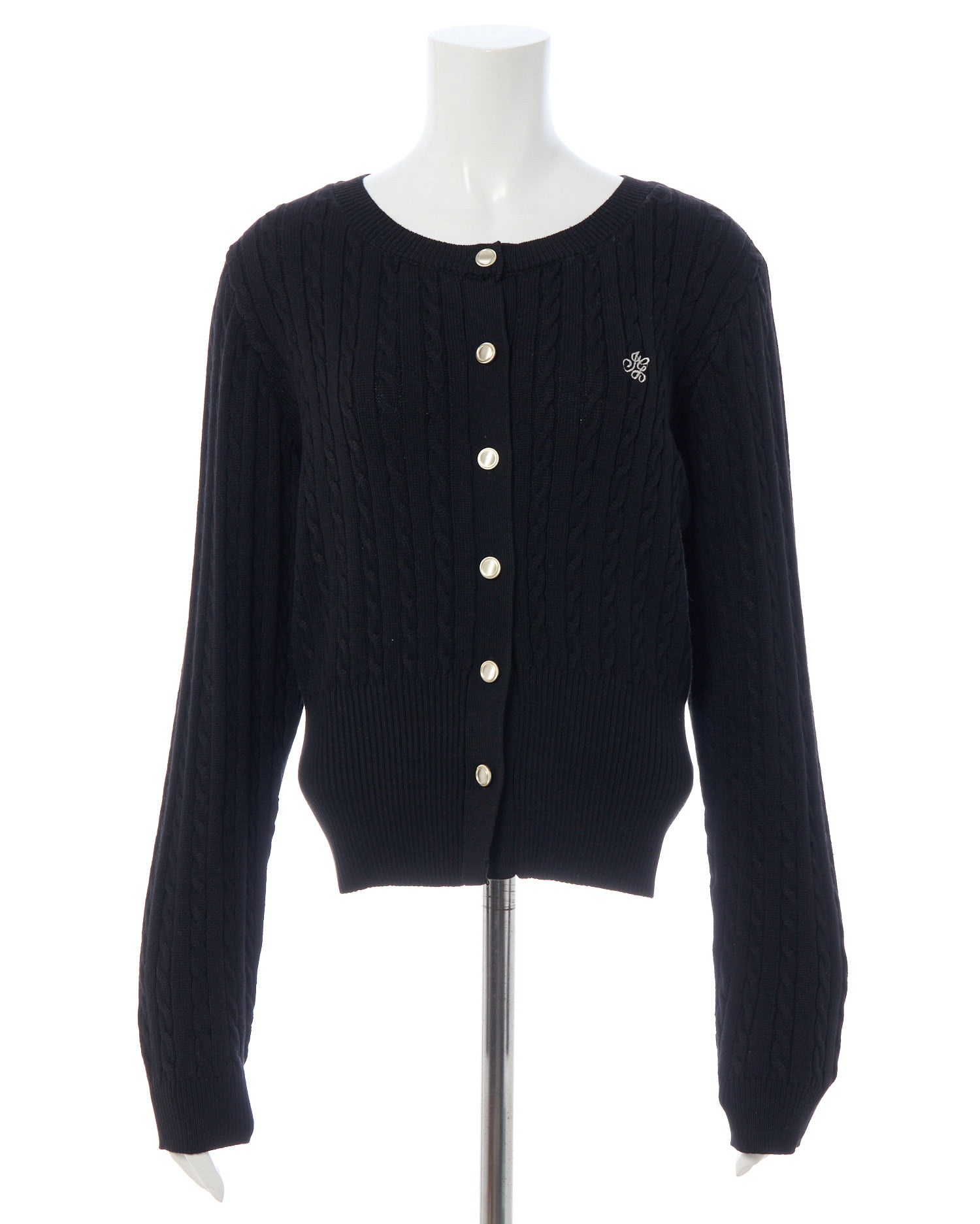 • INGNI(イング) 【プレミアムライン INGNI SOELA】胸刺繍金ボタンケーブルニットカーディガン クロ