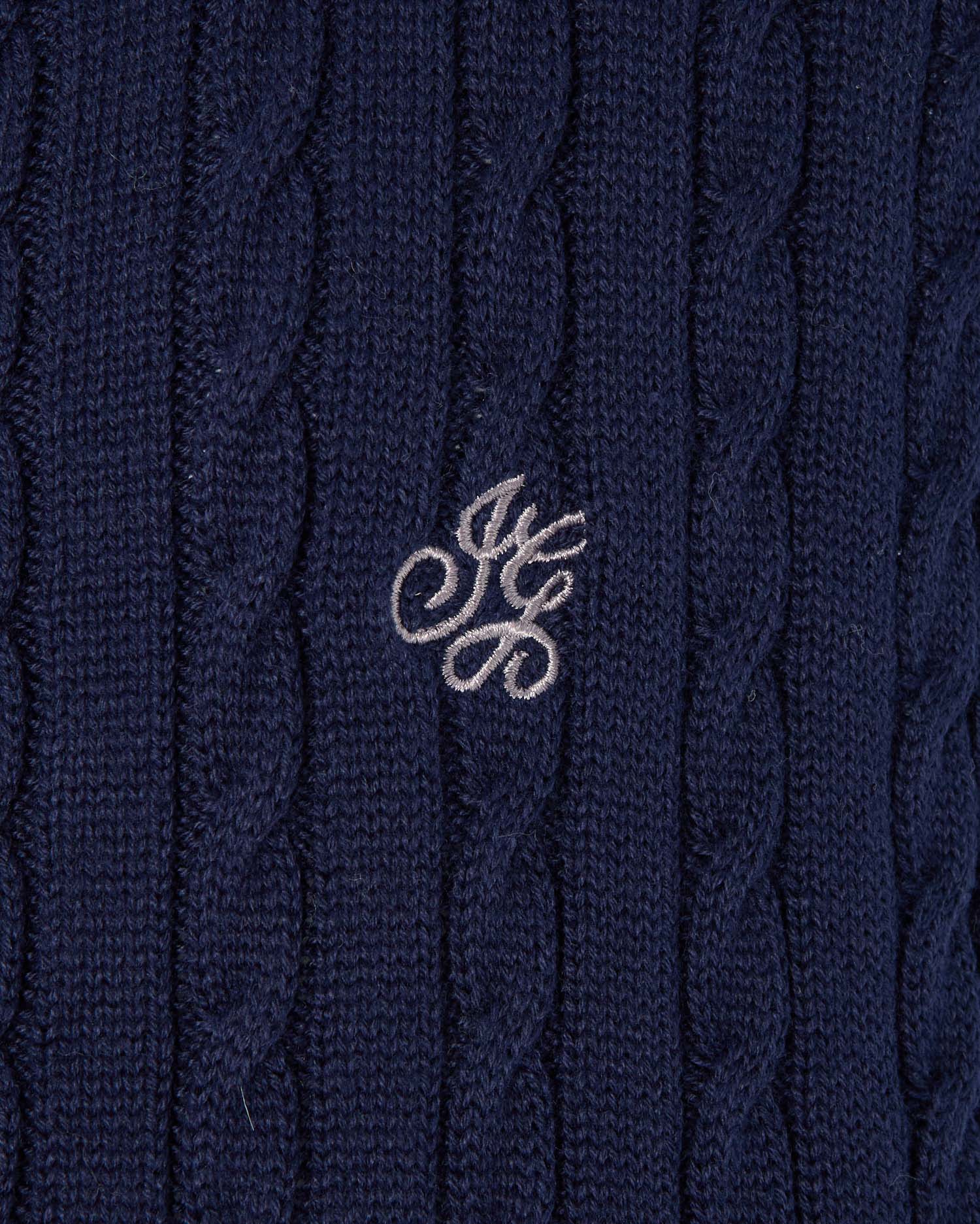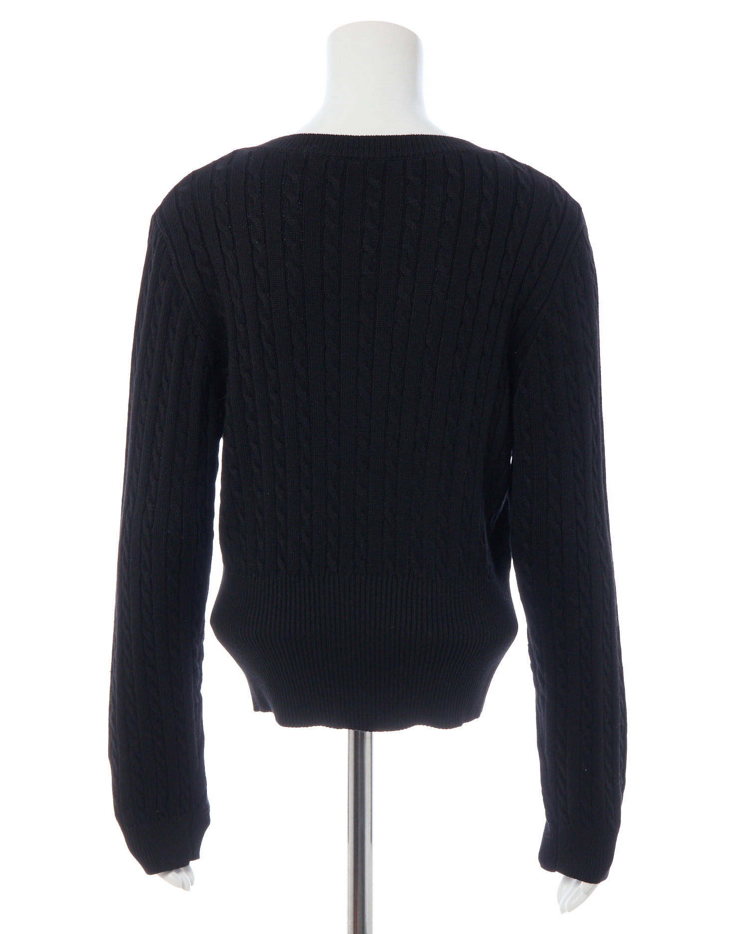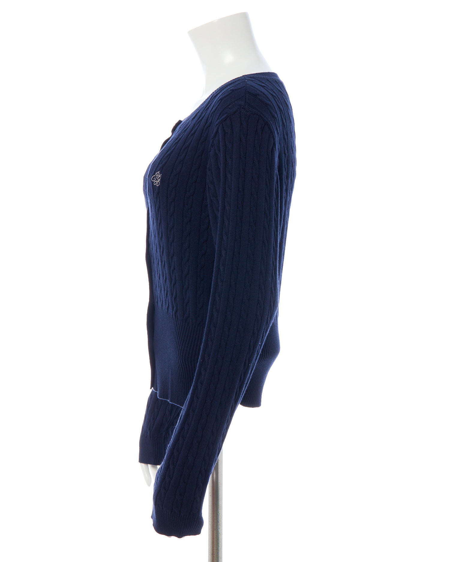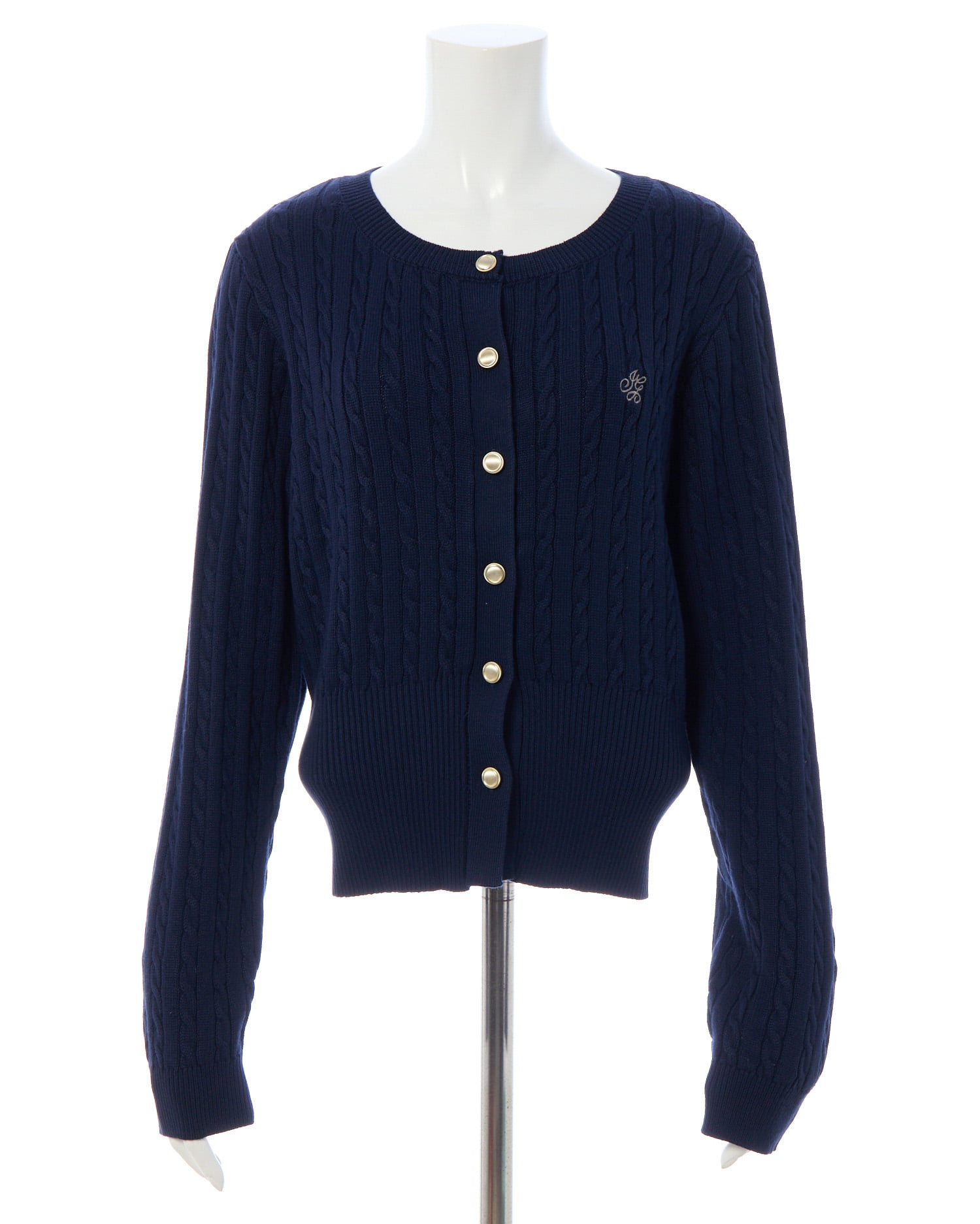 6999-600164 【プレミアムライン INGNI SOELA】胸刺繍金ボタンケーブルニットカーディガン