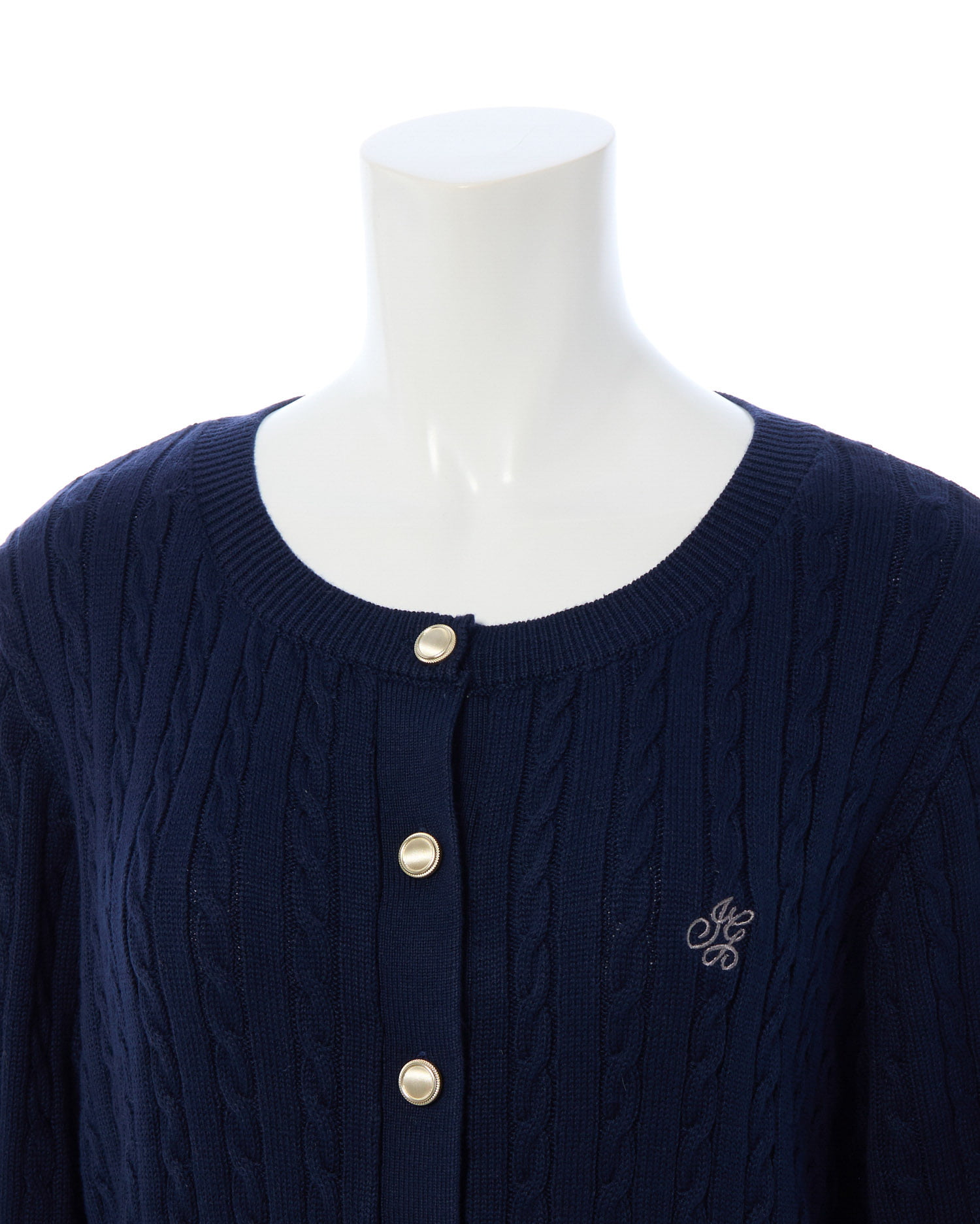 【プレミアムライン INGNI SOELA】胸刺繍金ボタンケーブルニットカーディガン