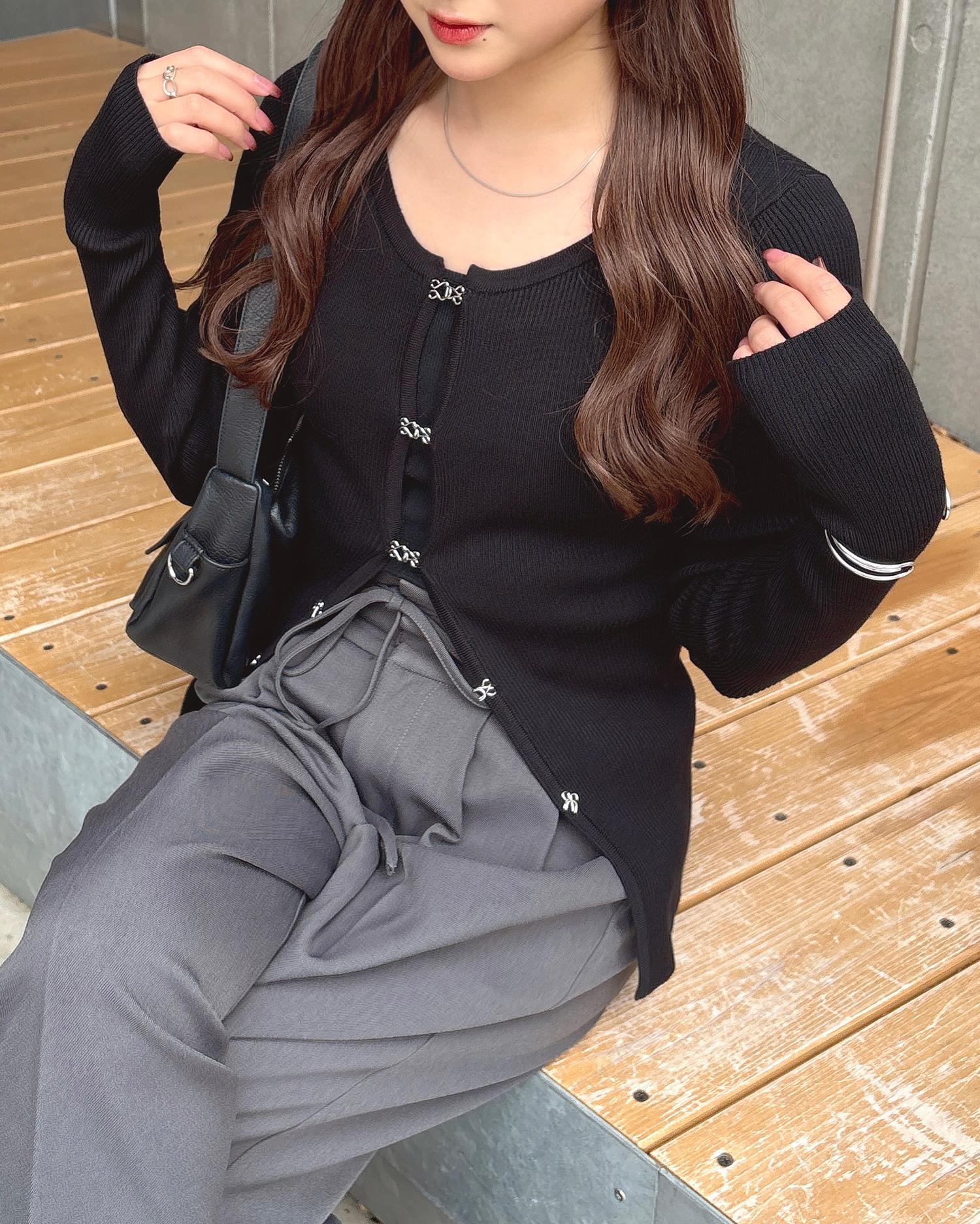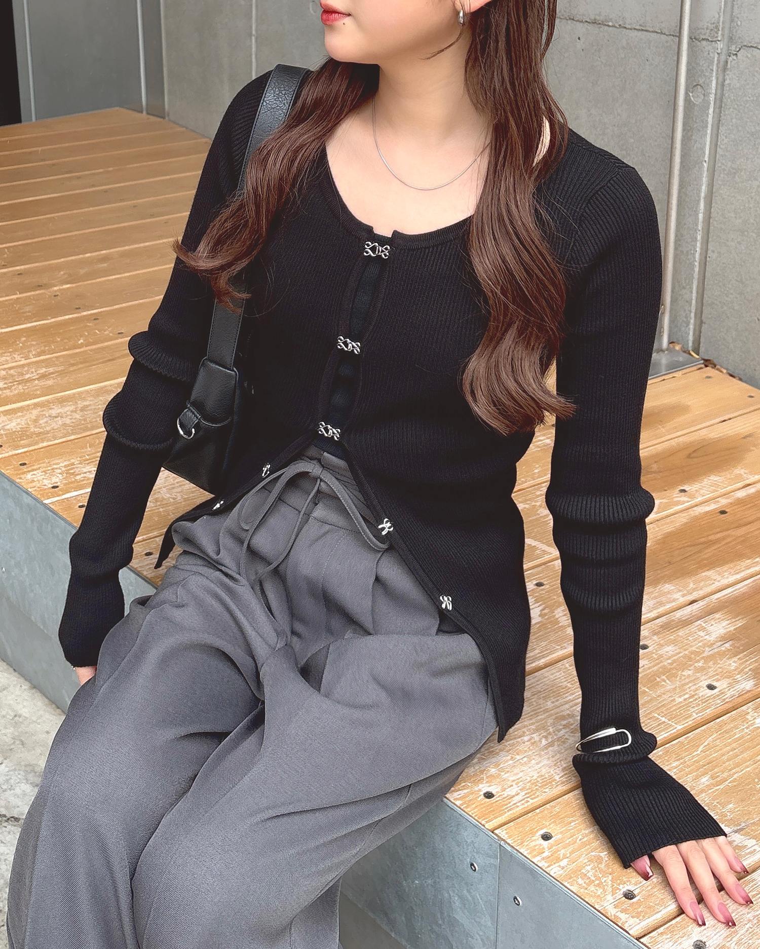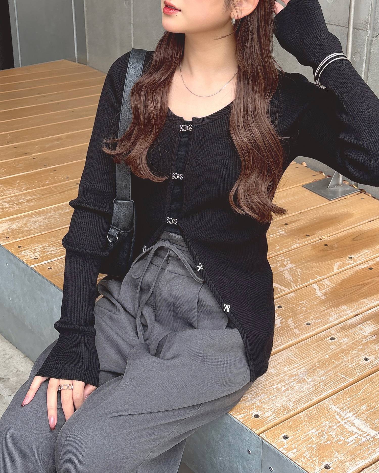 薄手のリブニットはジャケットやコートのインにもすっきり。
