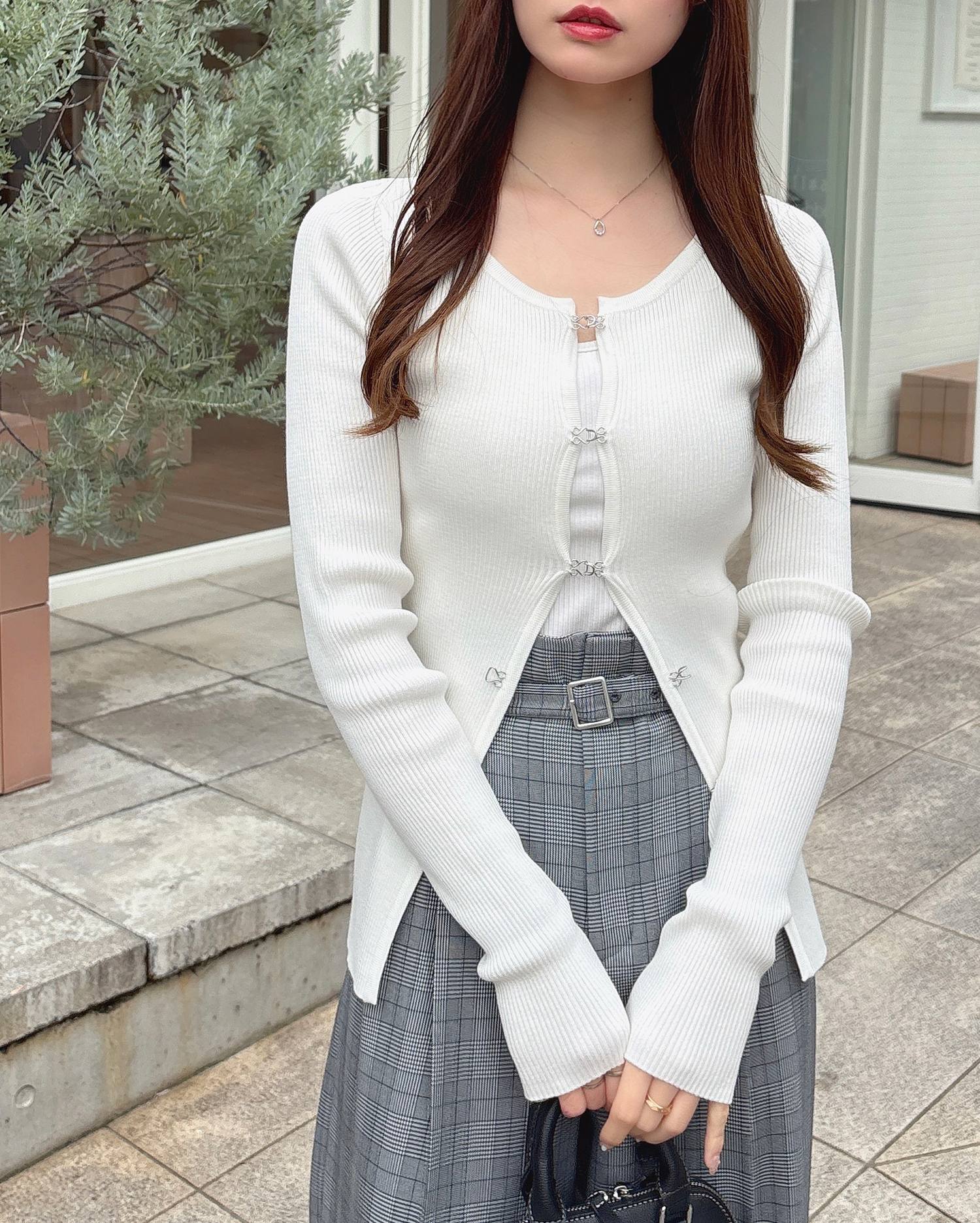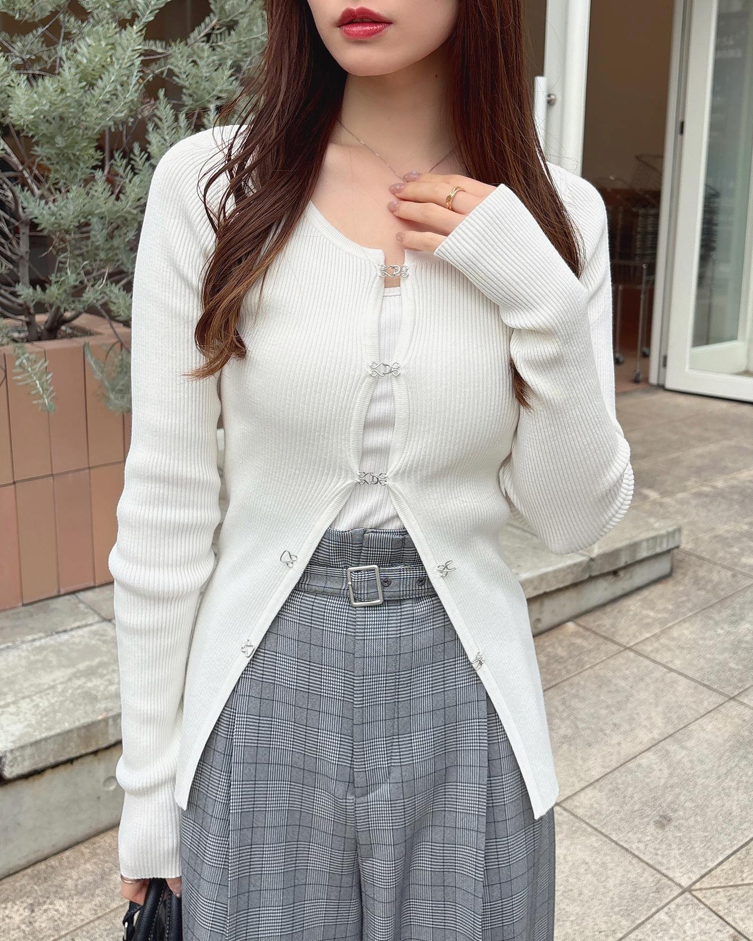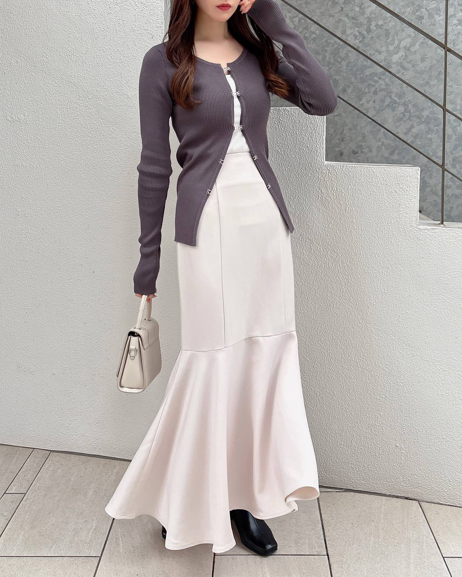 薄手のリブニットはジャケットやコートのインにもすっきり。