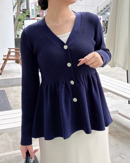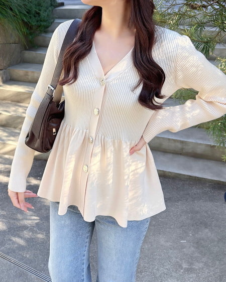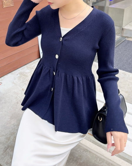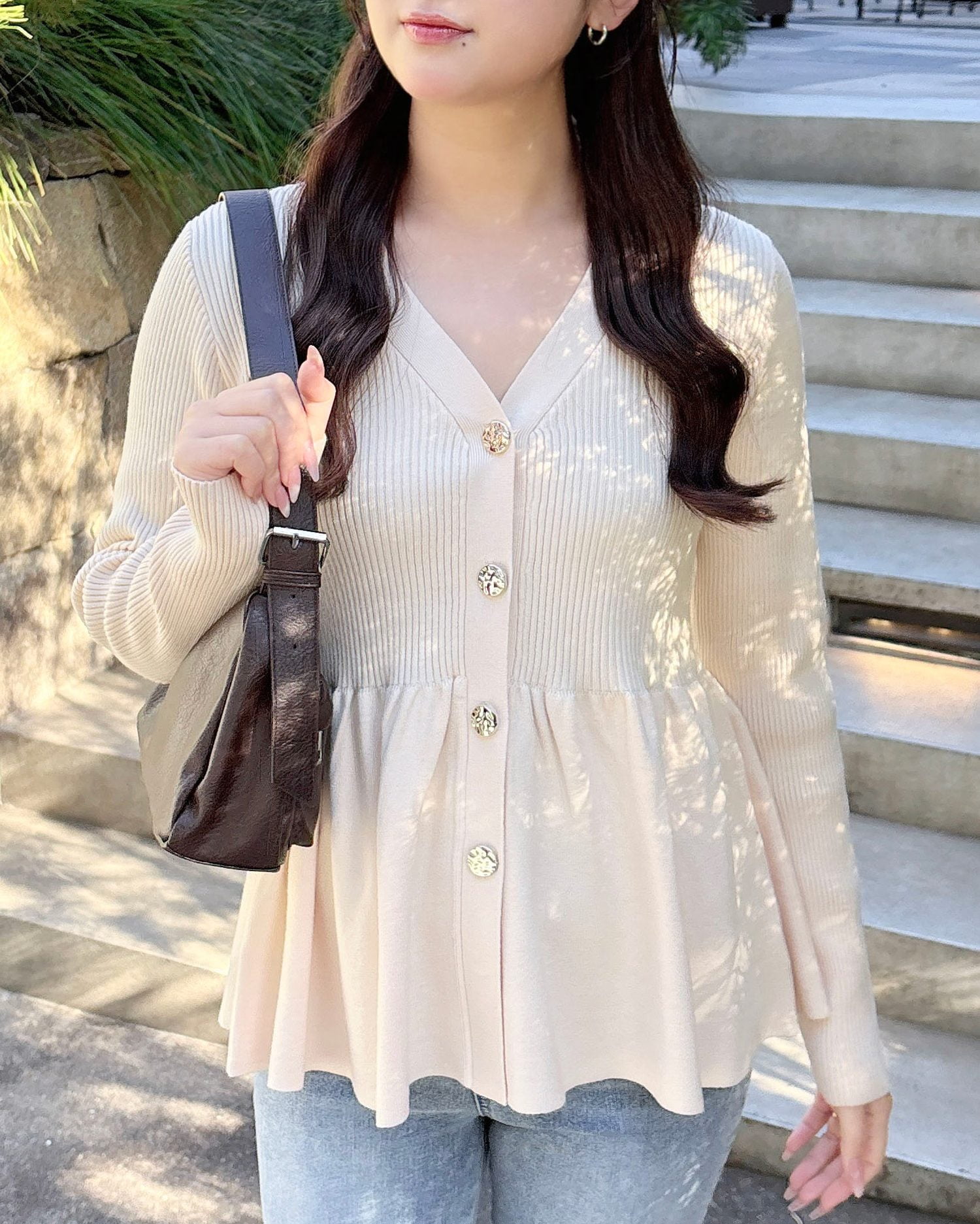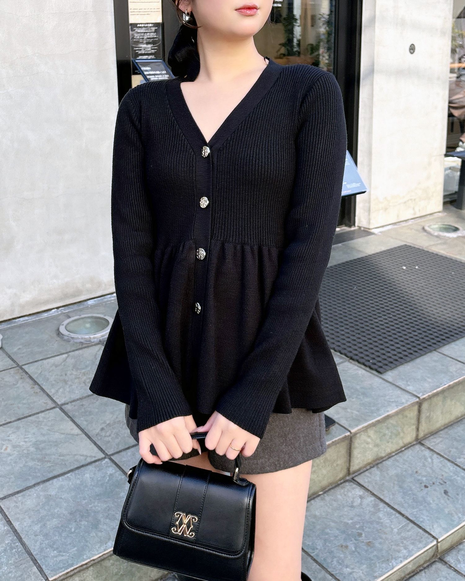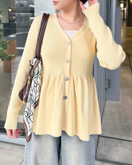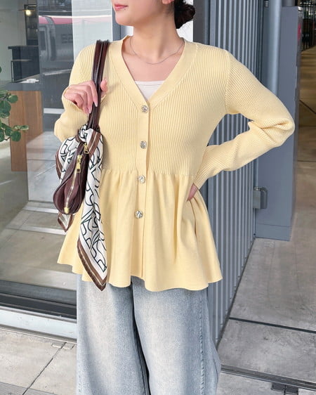 トレンドのペプラムデザインが魅力的なニットカーディガン。