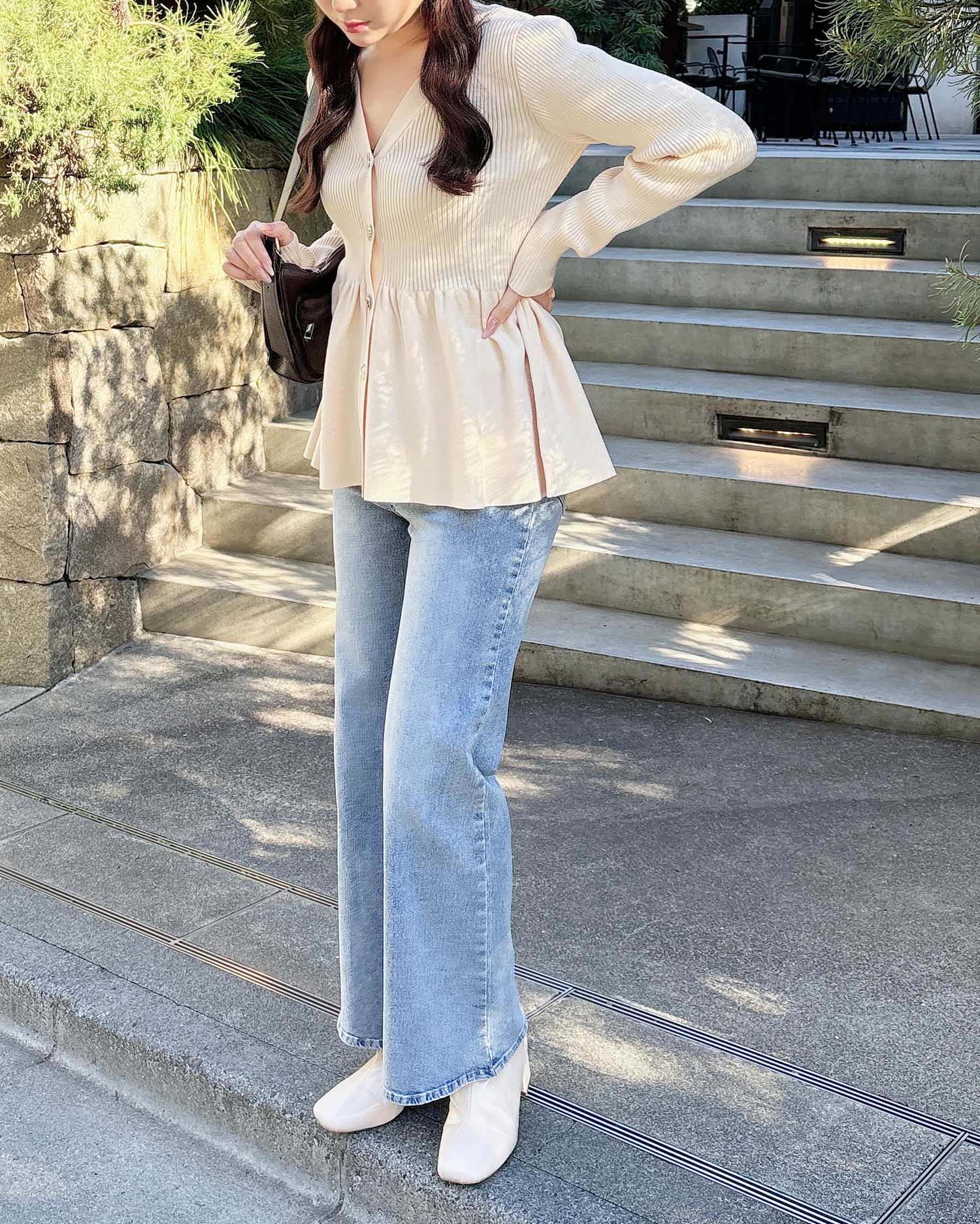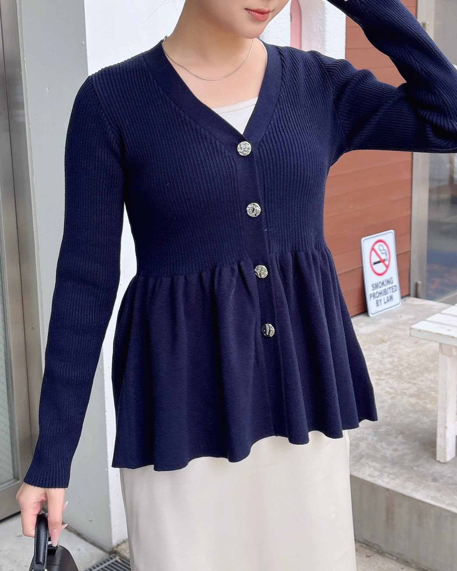 【着るだけでこなれ感抜群のペプラムニットカーディガン】