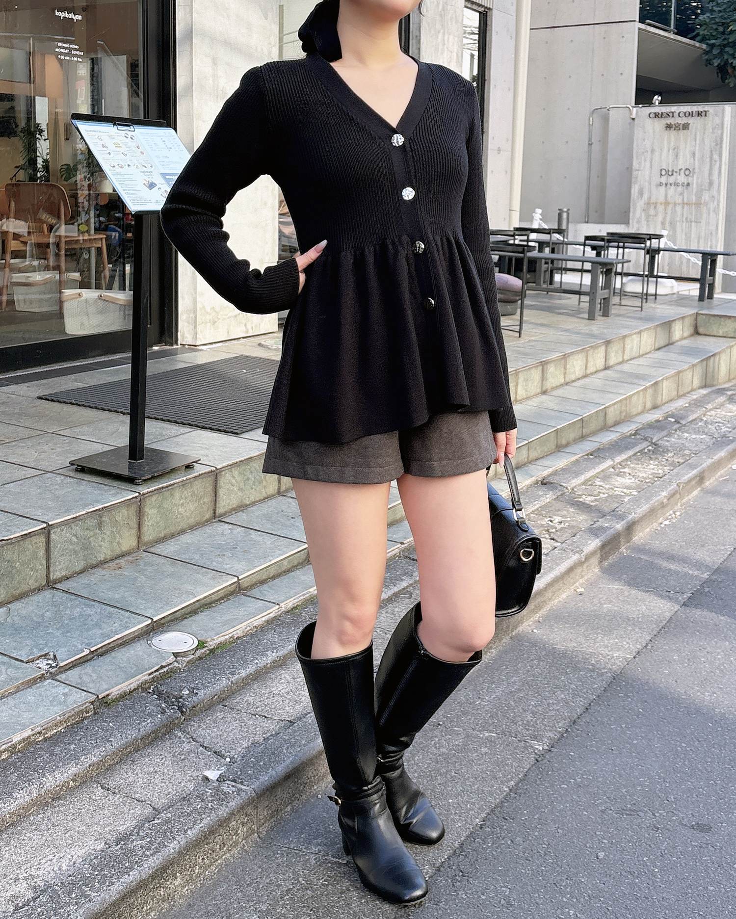 ショートパンツ×ロングブーツでトレンド感溢れるスタイリングも◎
