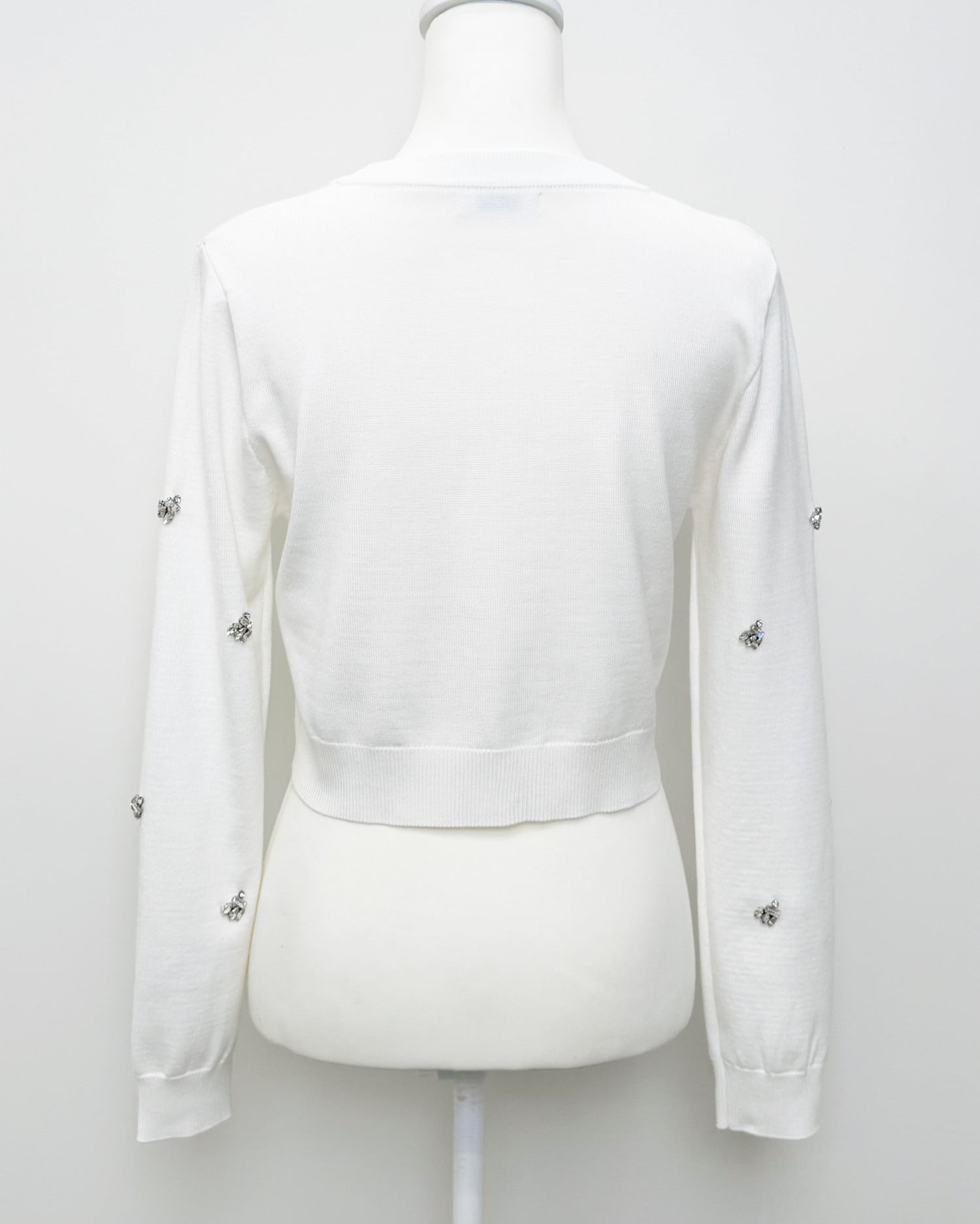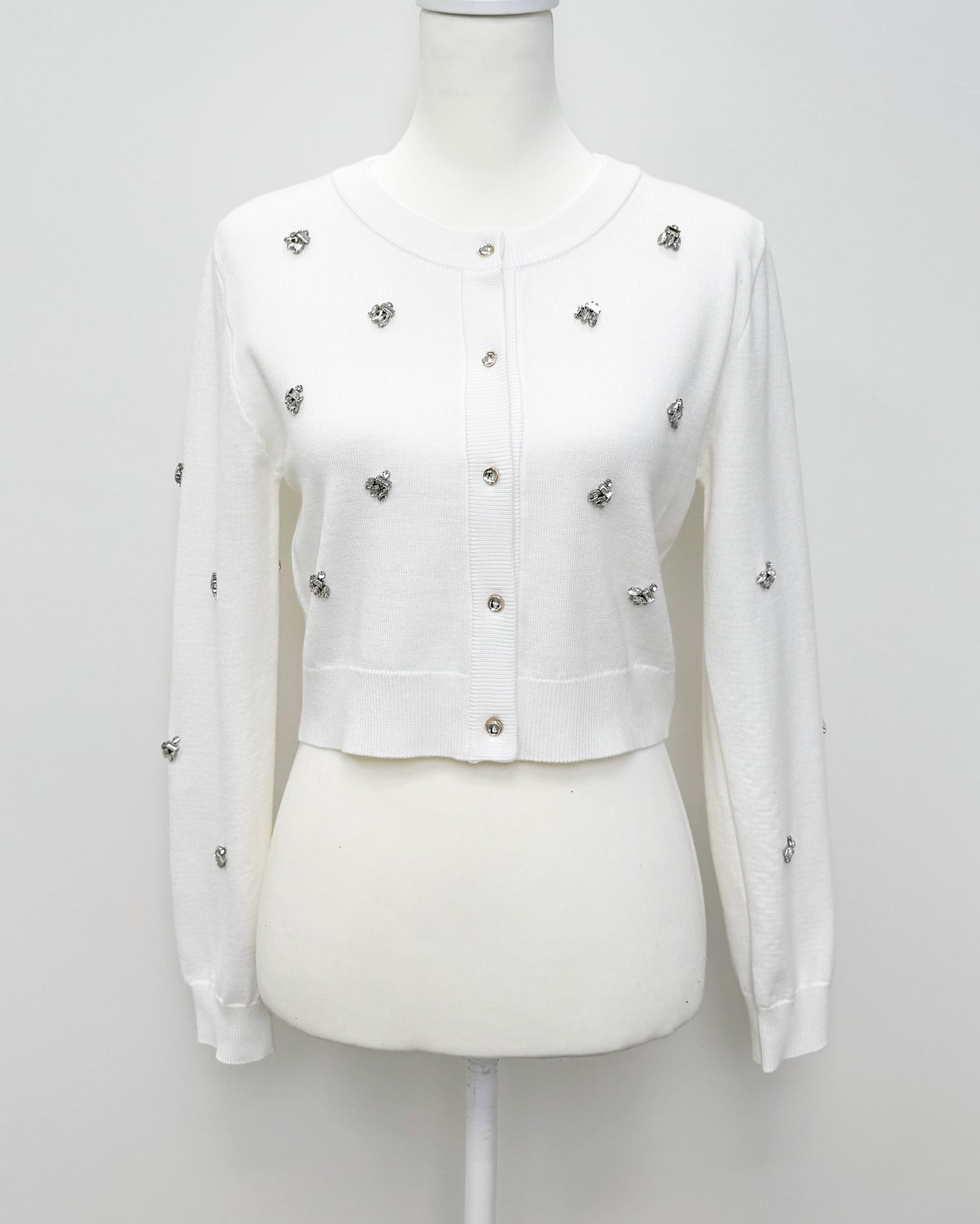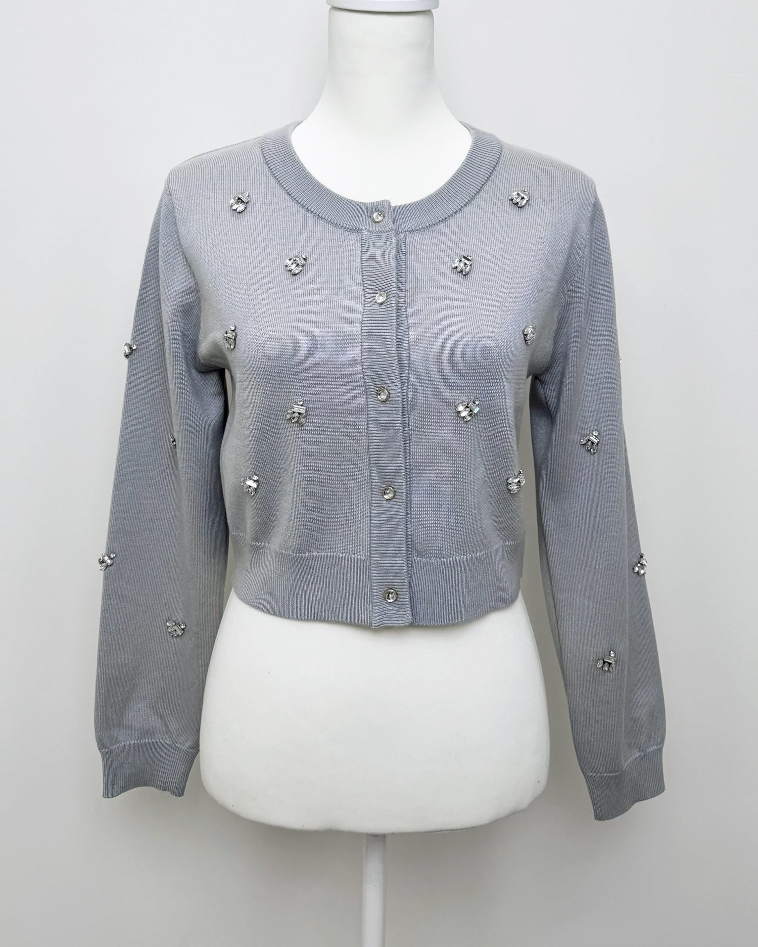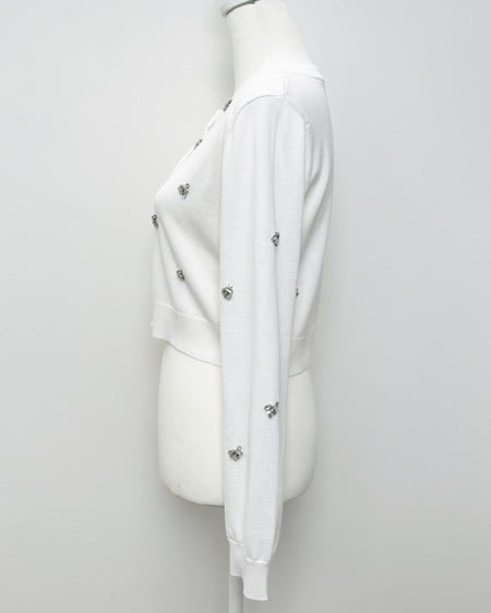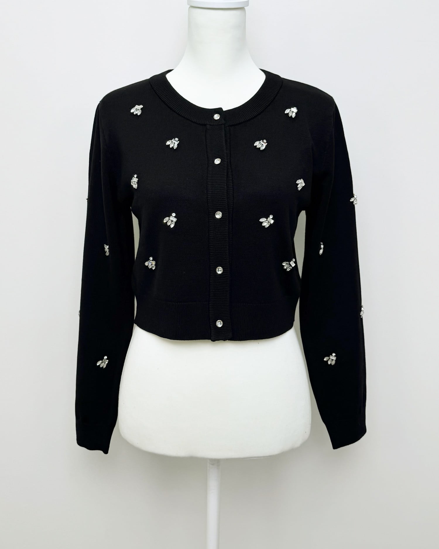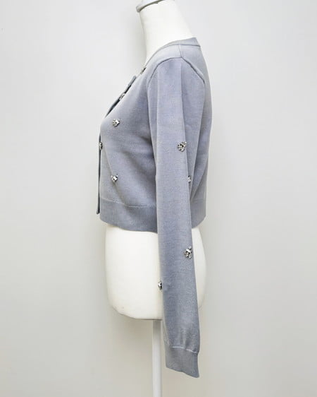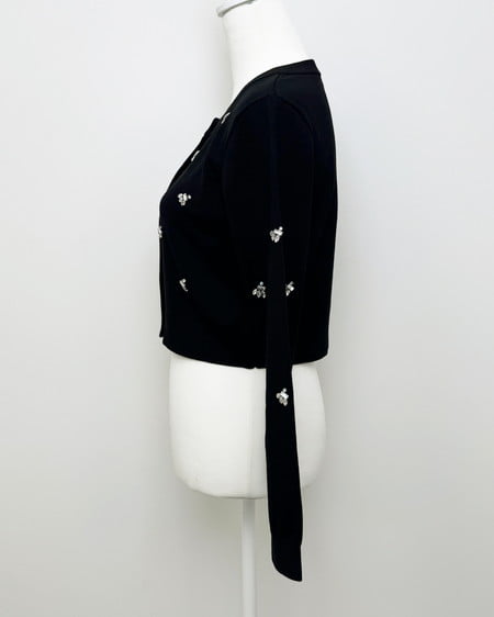 散りばめられたビジューの輝きが印象的なカーディガン。