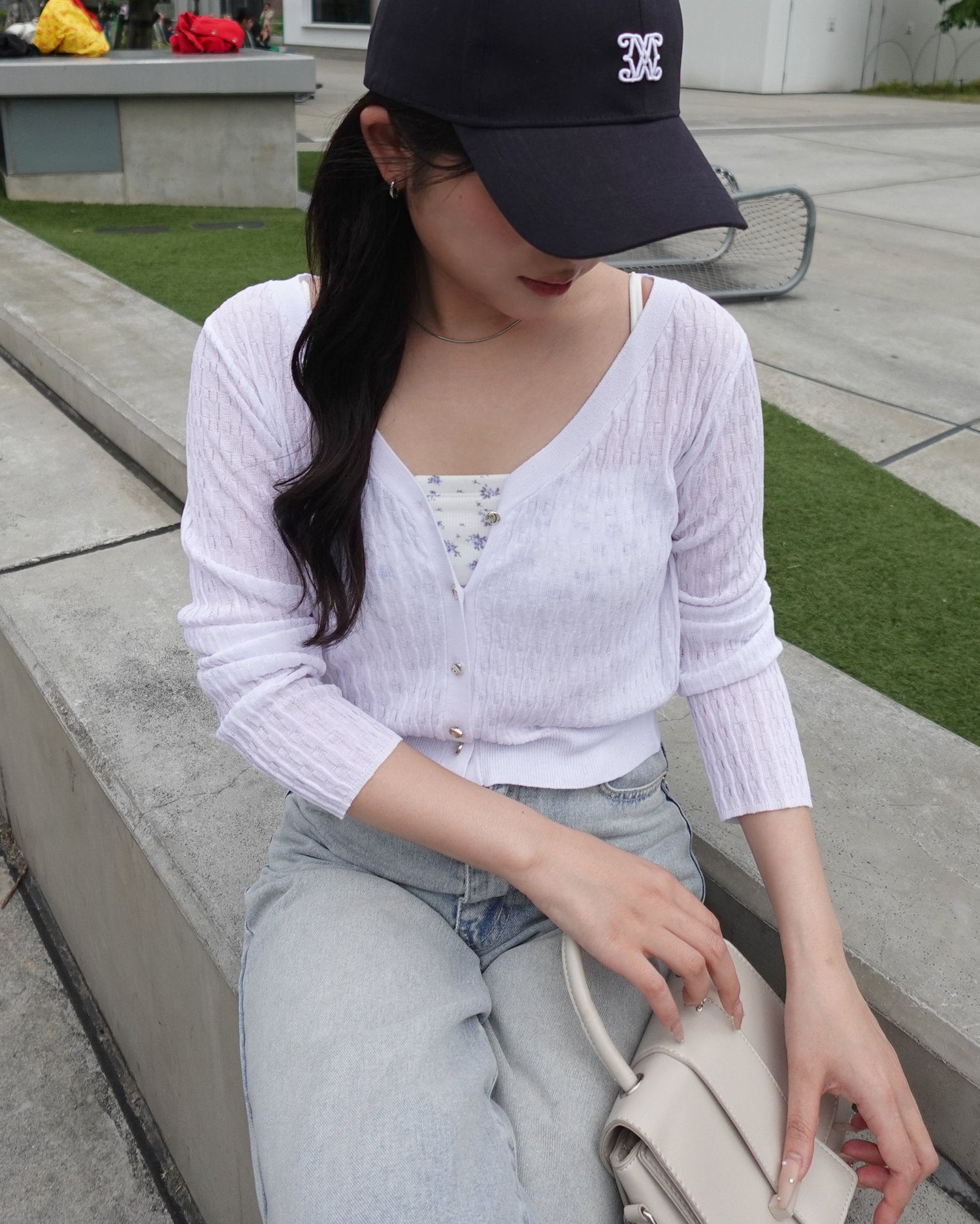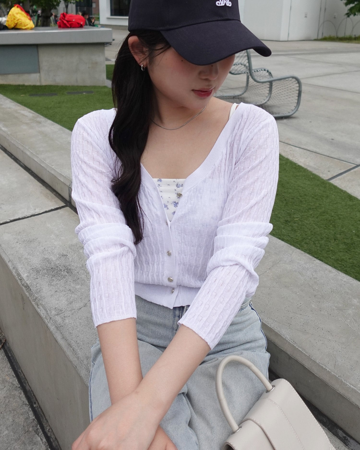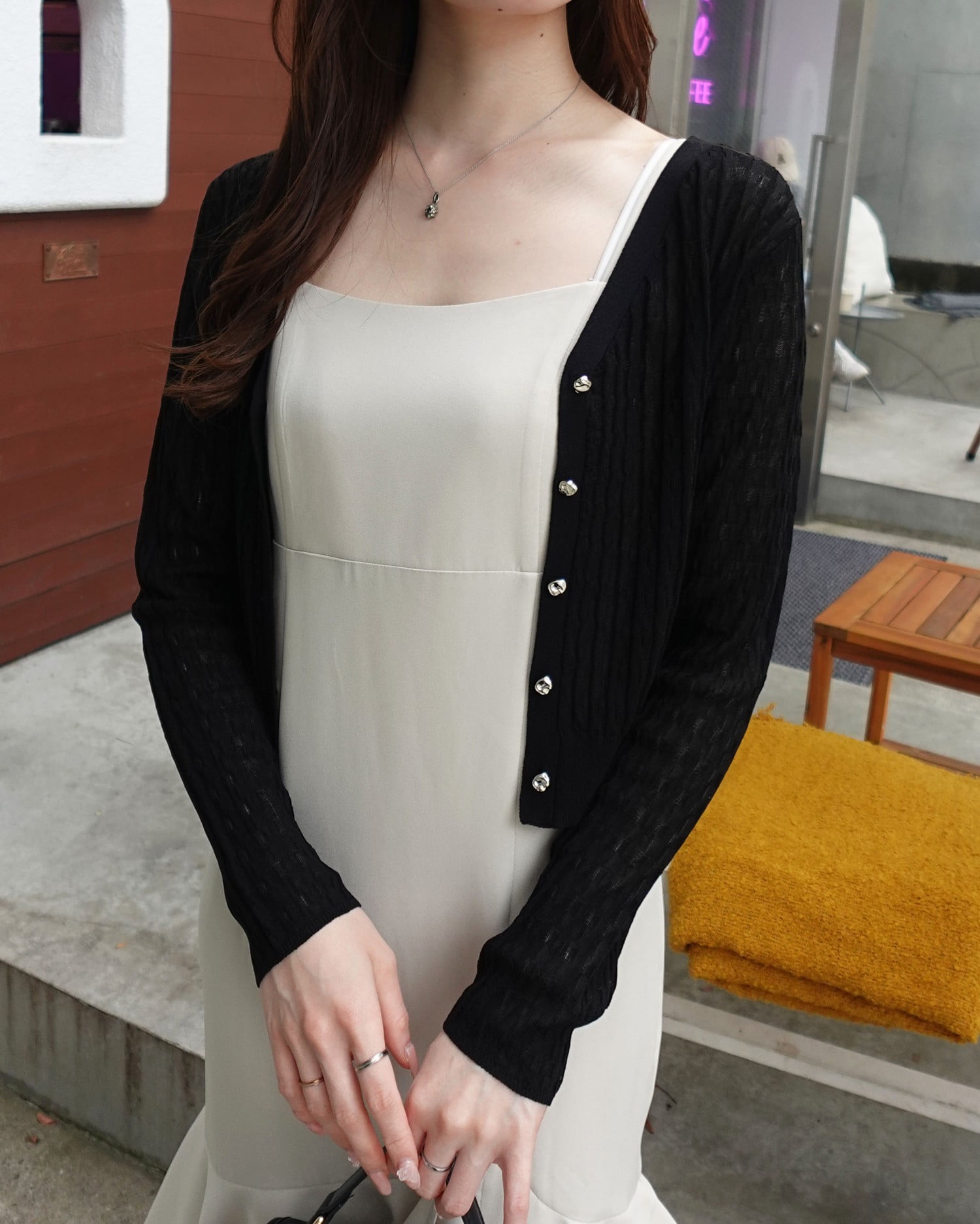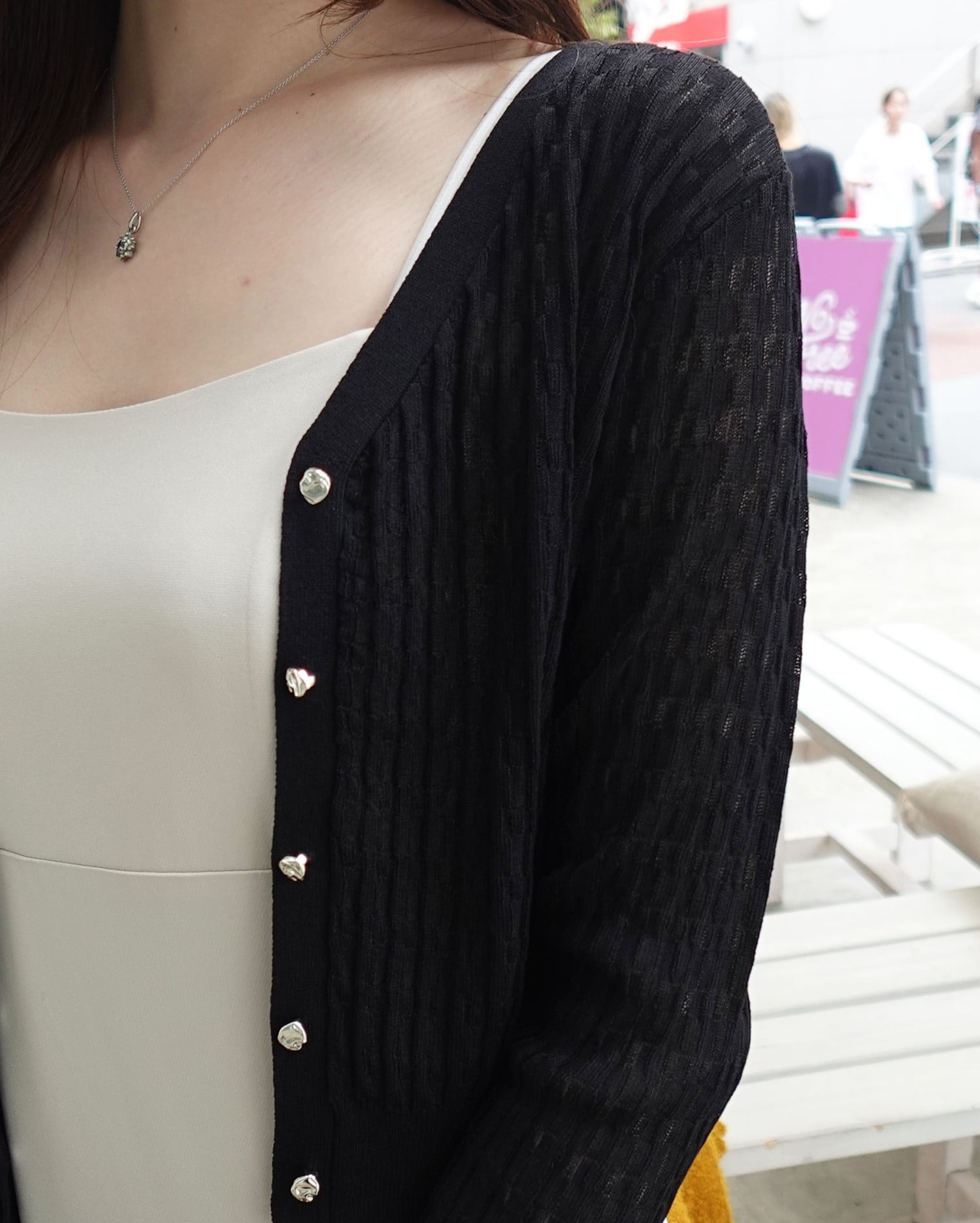 【上品な透け感が嬉しい、大人のシアーリブカーディガン】