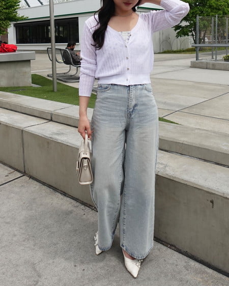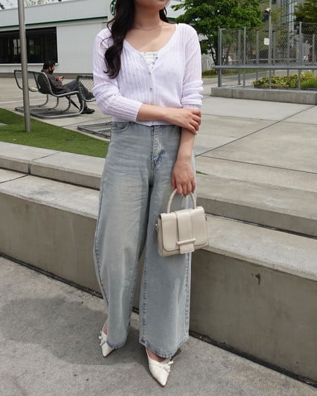 ボタンを留めてデニムやスラックスと合わせれば、すっきり大人コーデが完成。