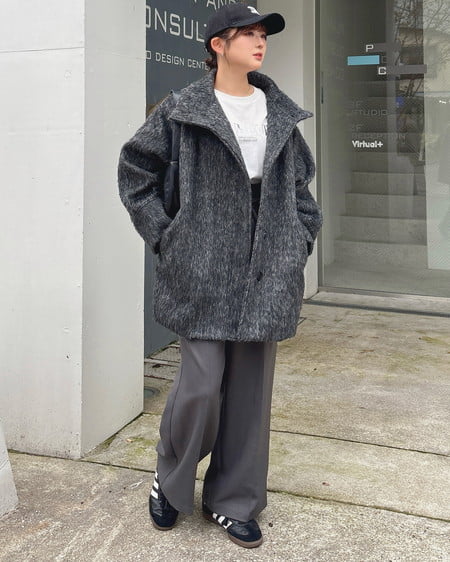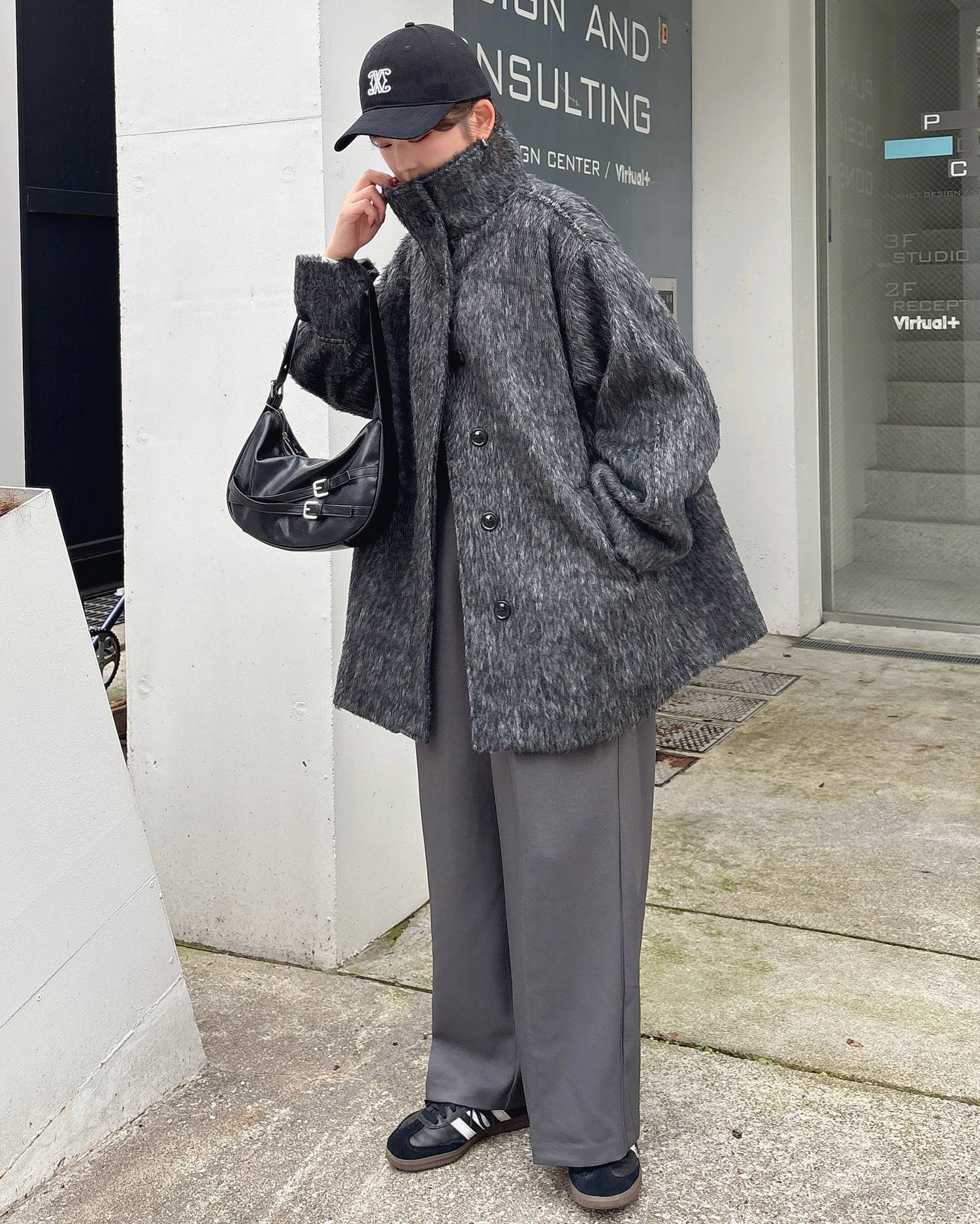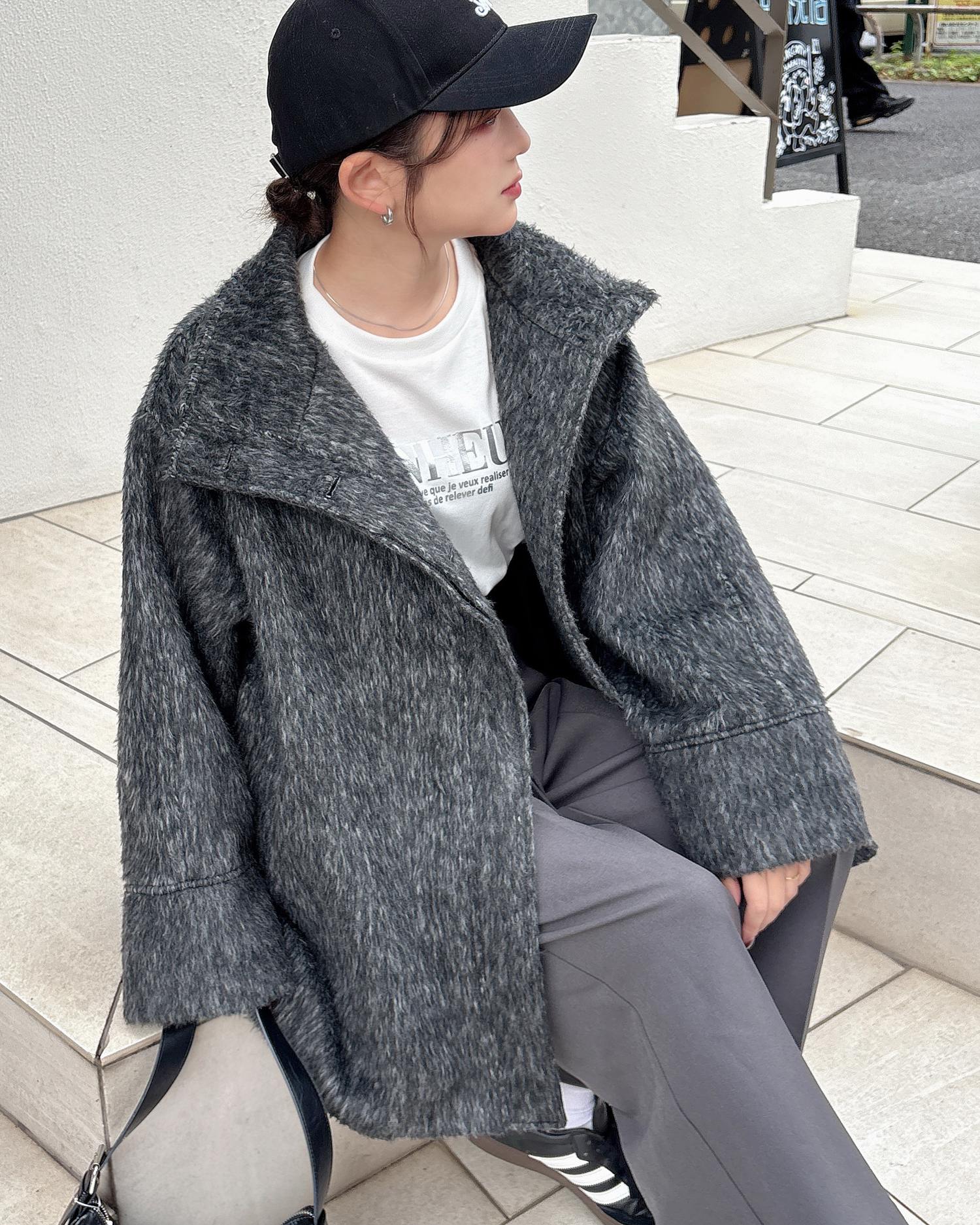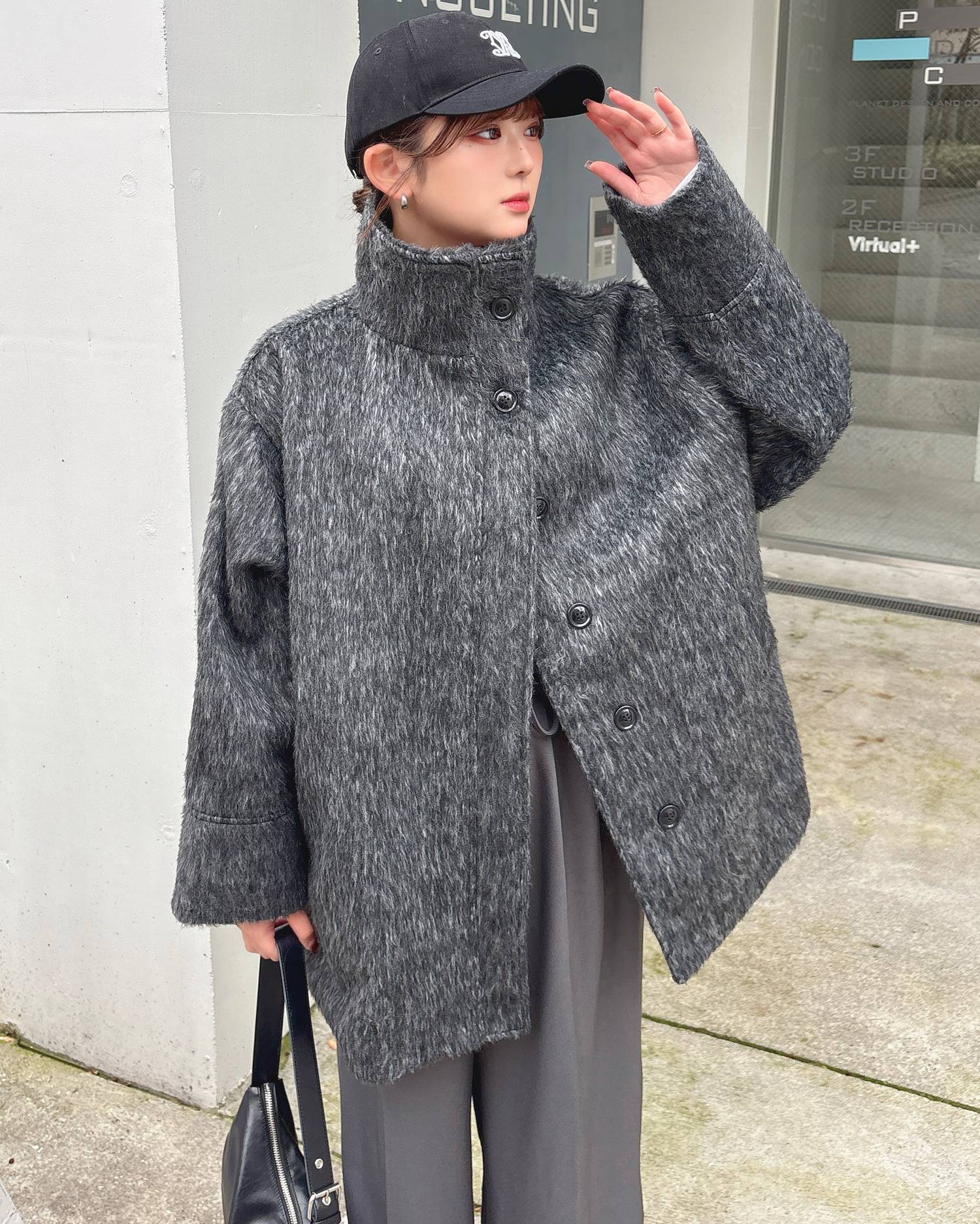 スタンドカラーにした際の丸みのあるシルエットがかわいさを引き立たせます。