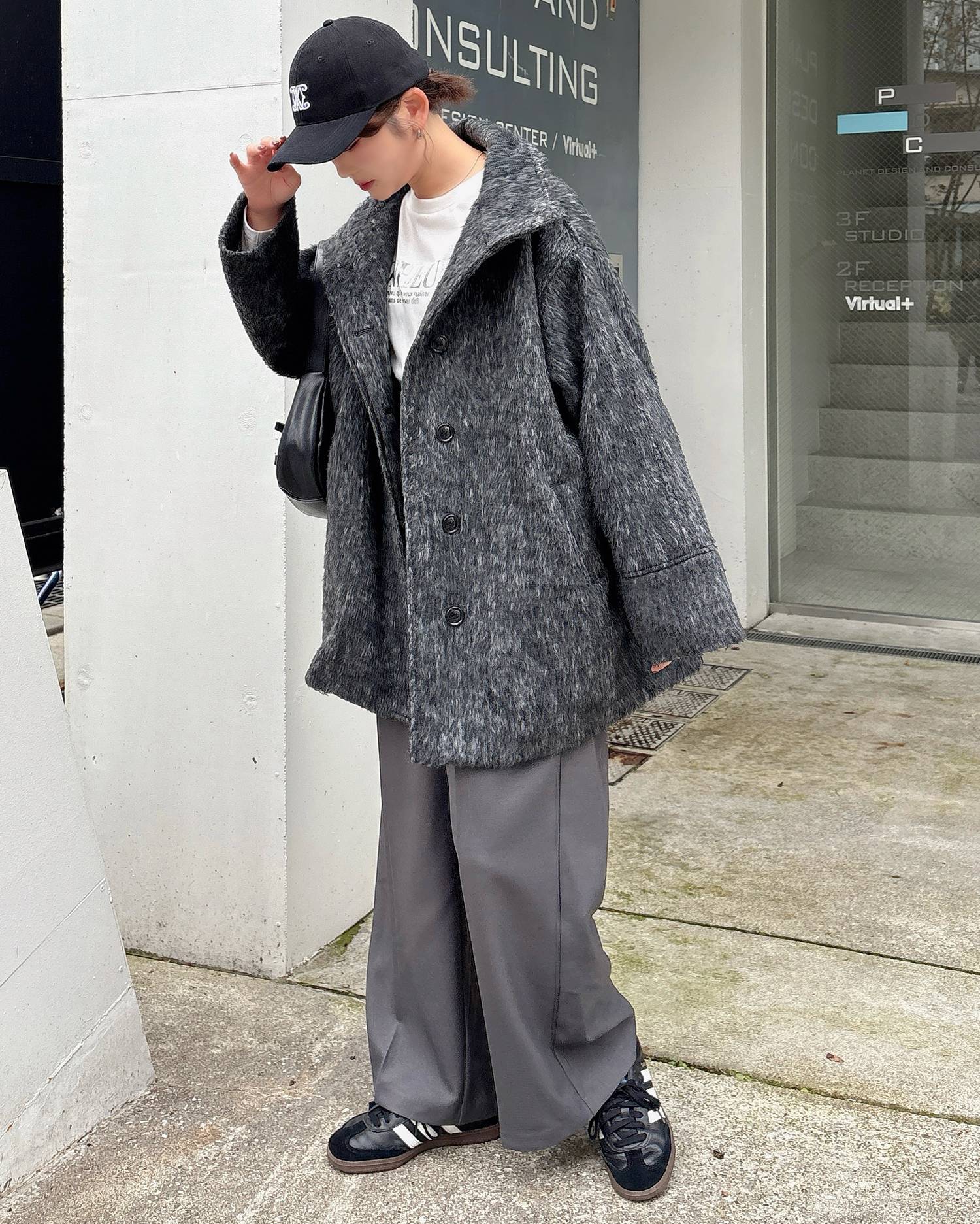 シンプルなコーディネートに羽織るだけで、モードなコーディネートに◎
