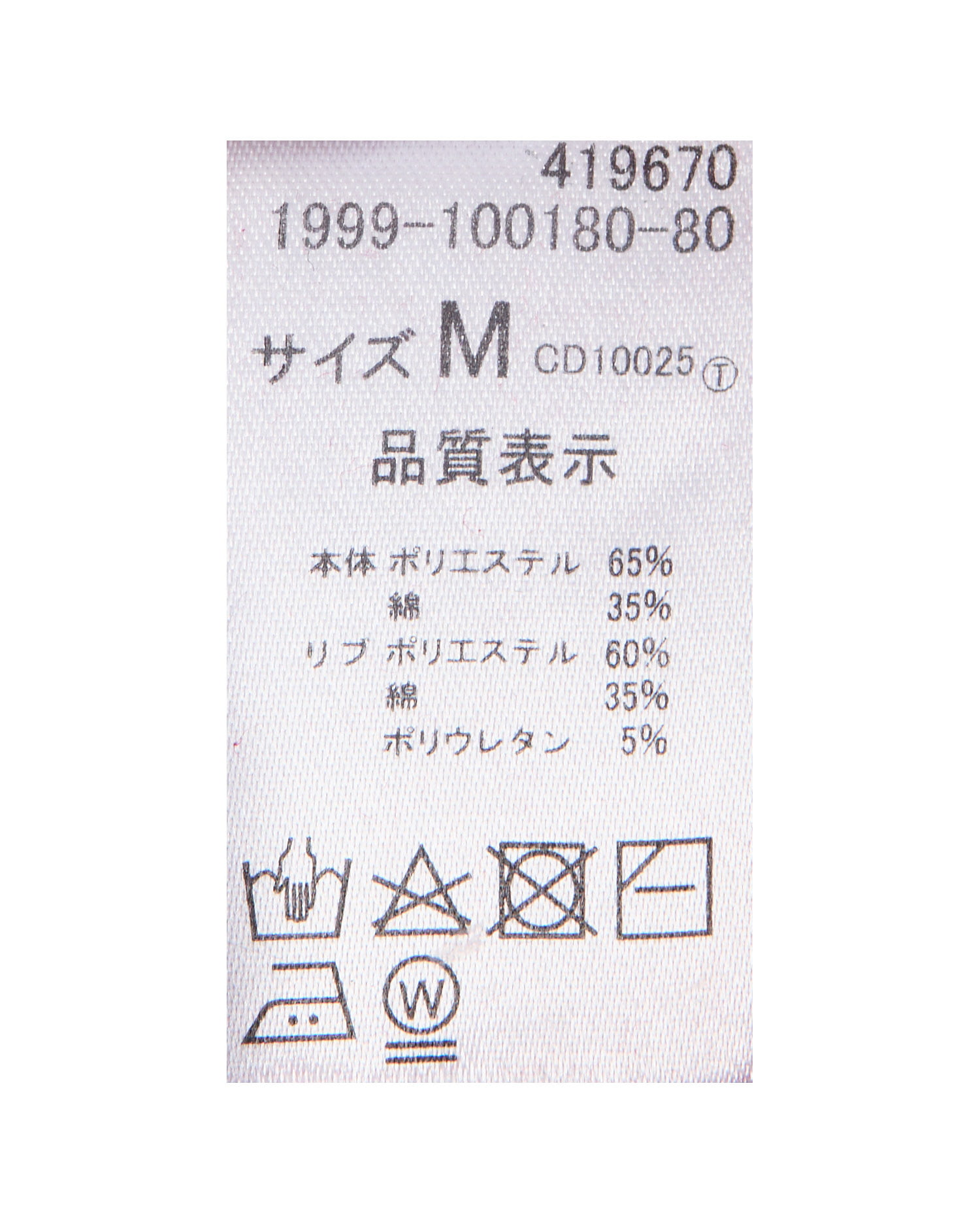 原産国 中国 本体 ポリエステル65% 本体 綿35% リブ ポリエステル60% リブ 綿35% リブ ポリウレタン5%