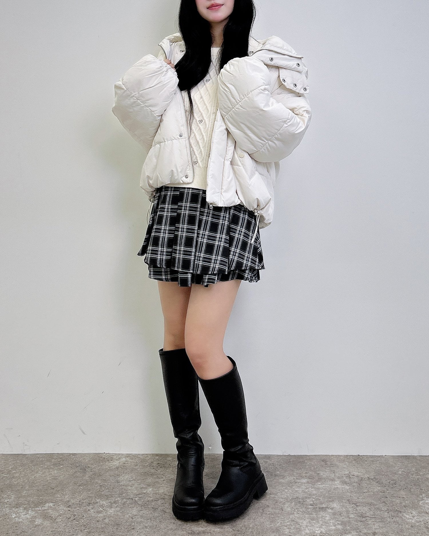 ミニ丈×ロングブーツ合わせで冬らしいガーリーコーデも、