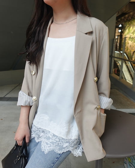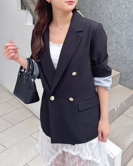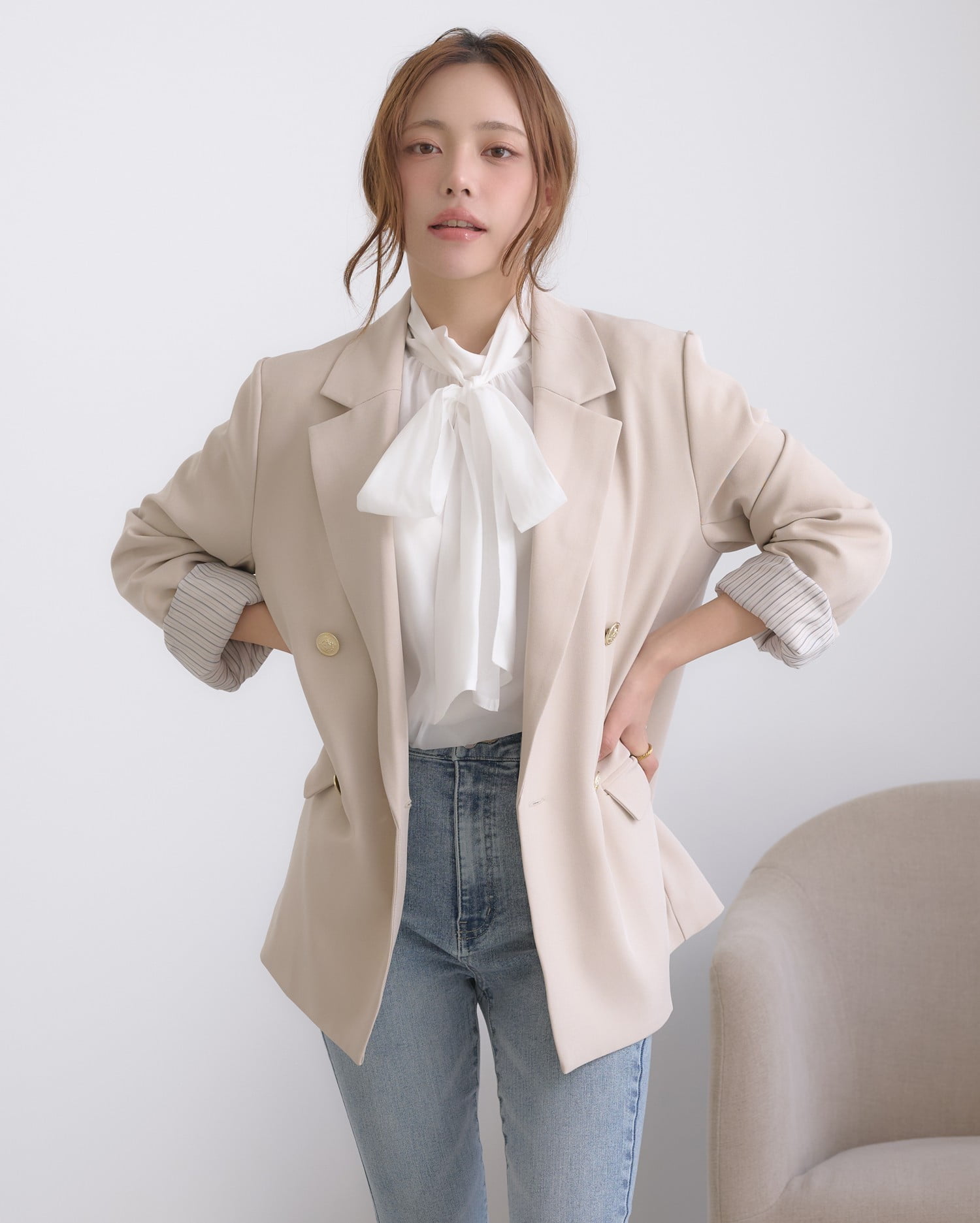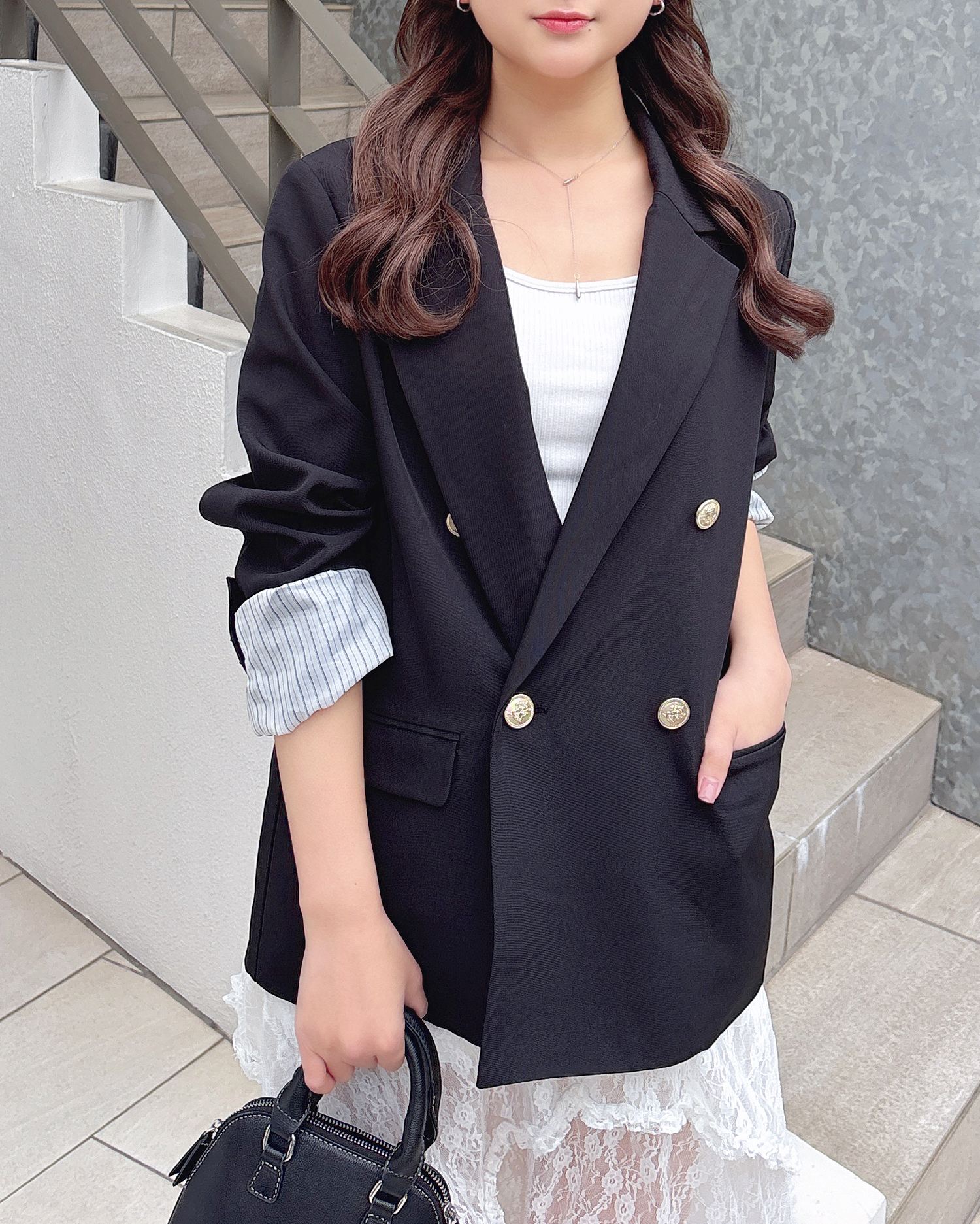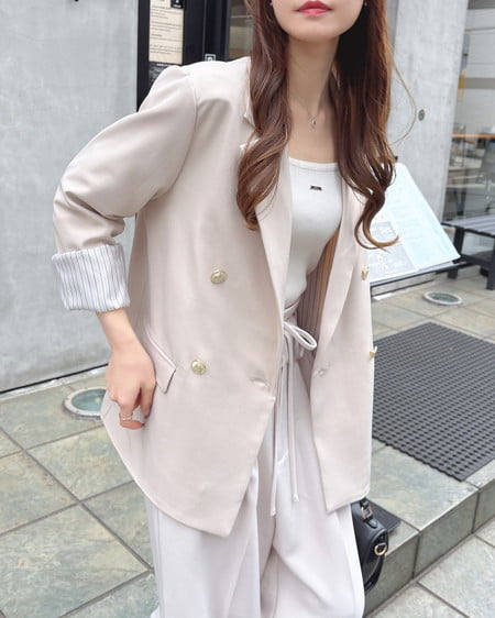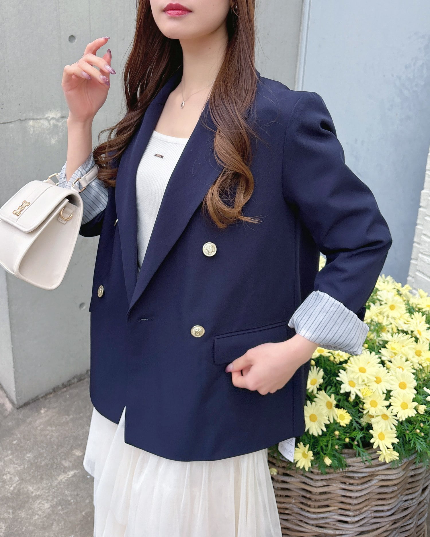 上品な雰囲気を演出してくれる、金ボタンをあしらったテーラードジャケット。