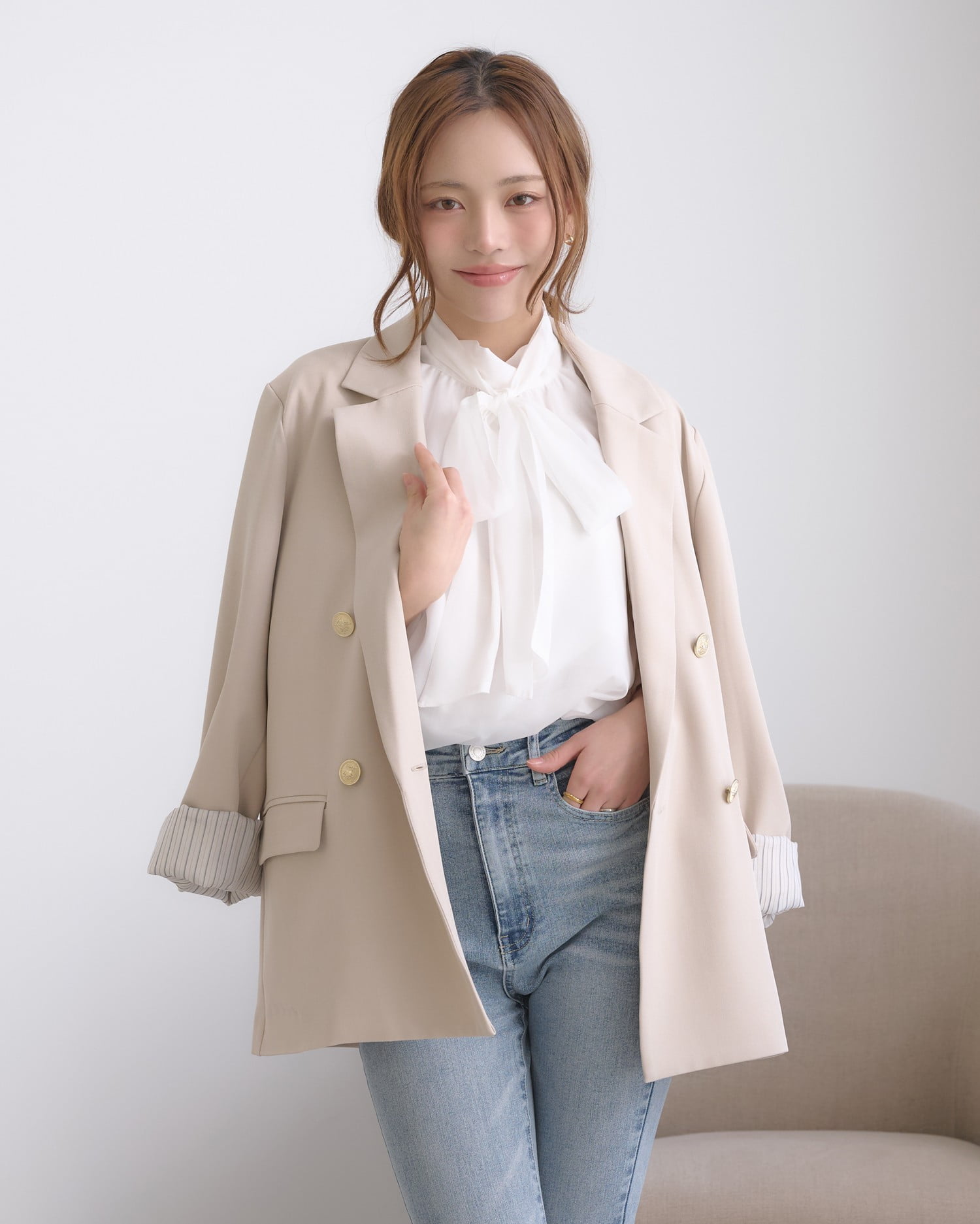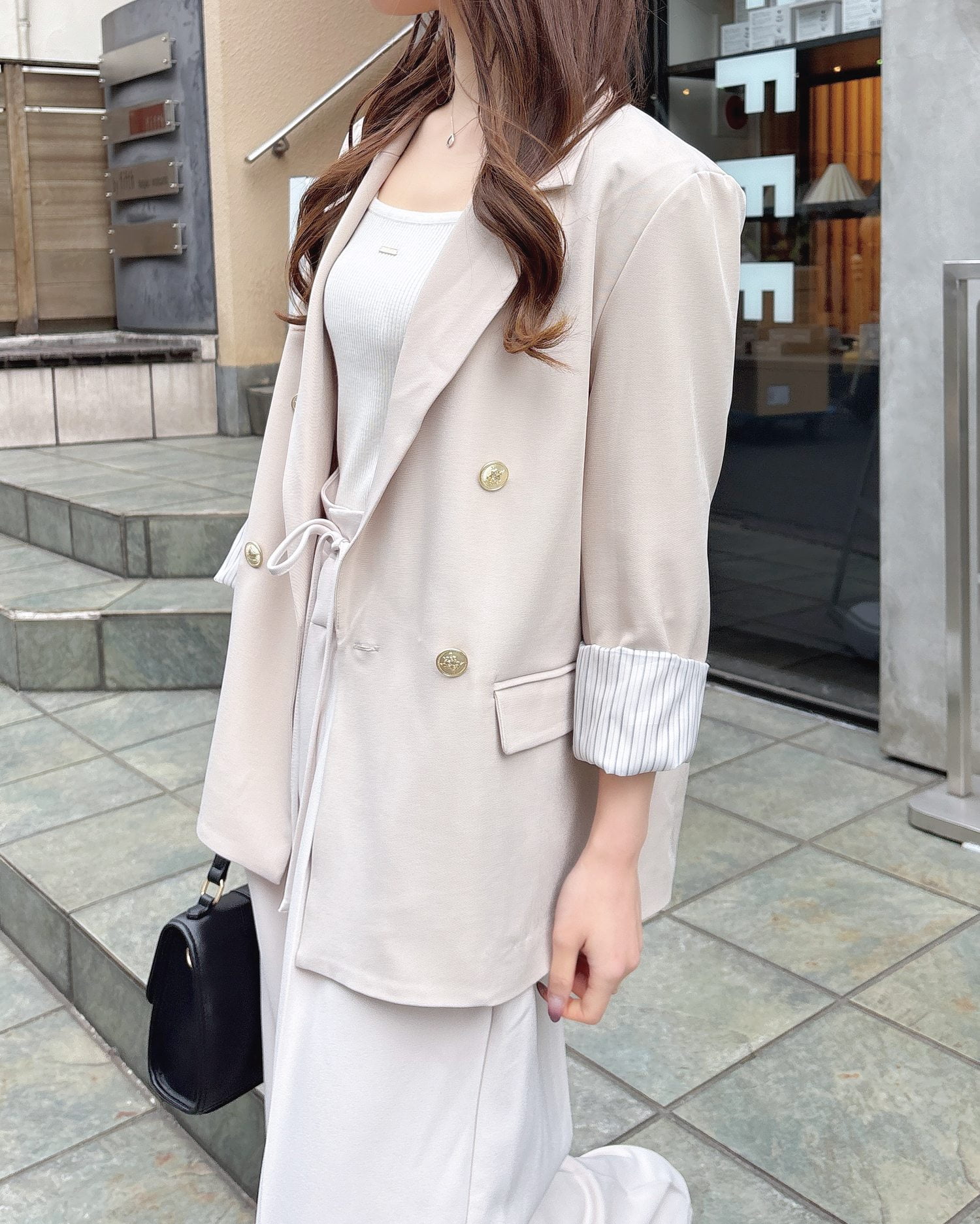 裏地はストライプになっているので、袖を折り返して着こなすのもおすすめです◎