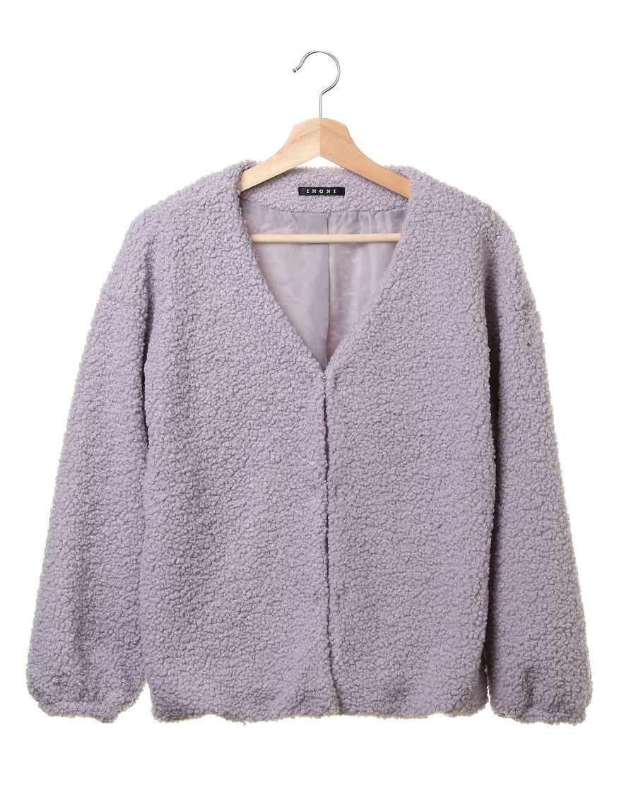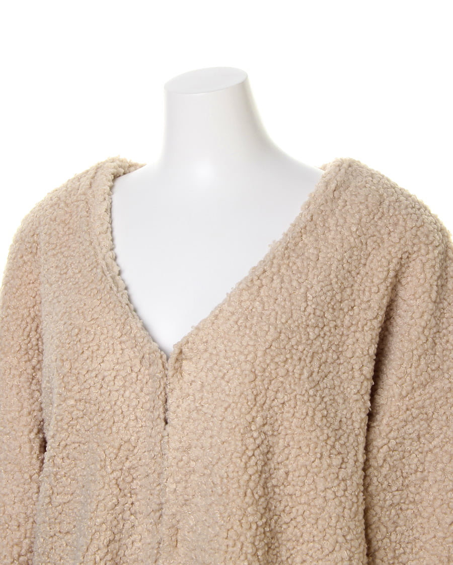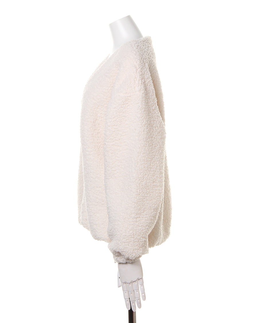 思わず触りたくなるような、ふわもこのボア素材のカーデ。見た目も暖かく、シーズンムードをあおる主役級アイテム。シンプルなコーデにプラスすれば、旬のコーデにスタイルアップします。コンパクトに設定した丈感は、ボリュームあるボトムスとも好バランスに。ボタンレスでフックタイプのフロントも魅力的。滑らかな裏地付きなのも魅力的です。